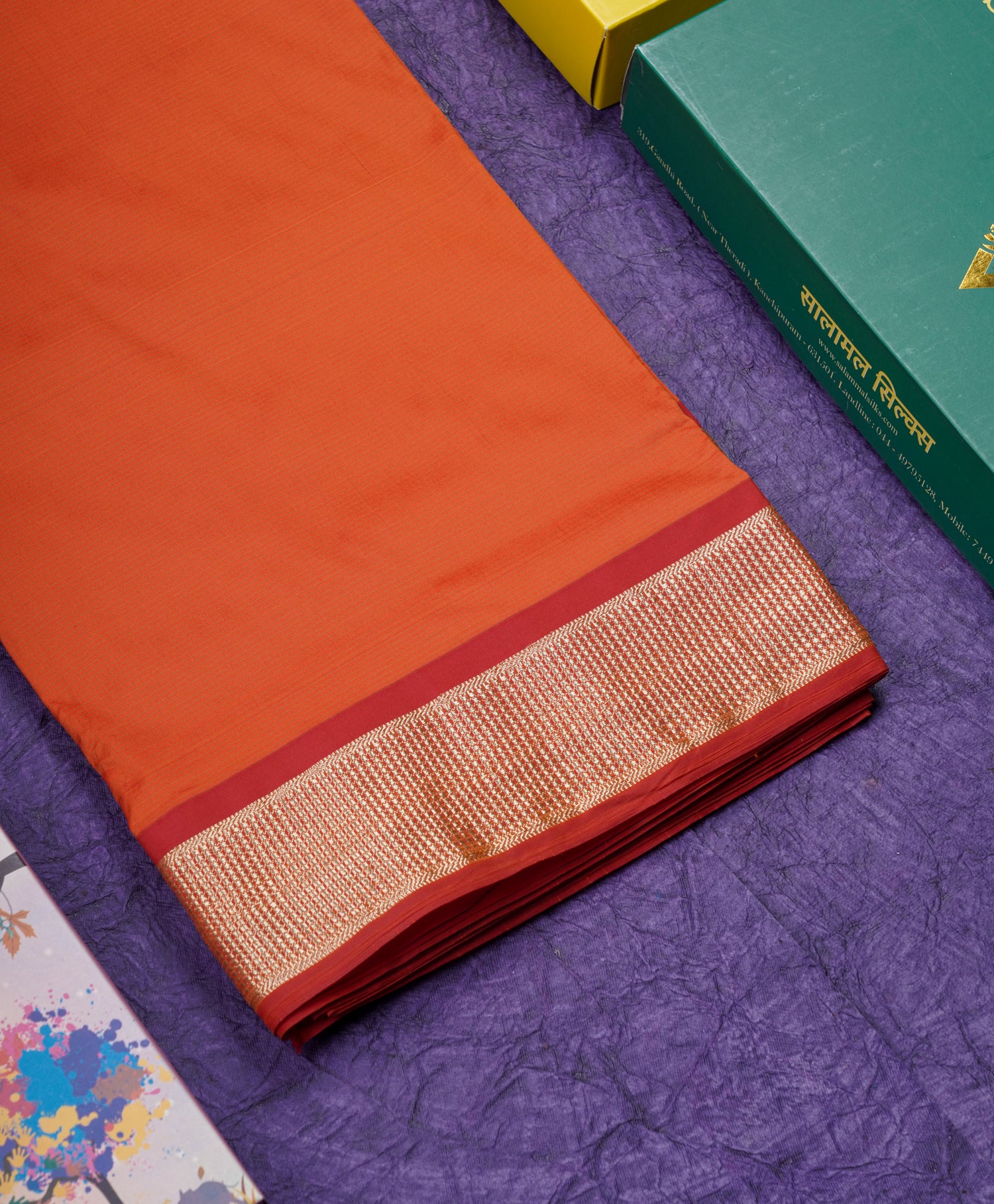 Pure Zari Reddish Orange Kanjivaram Pure Silk Saree