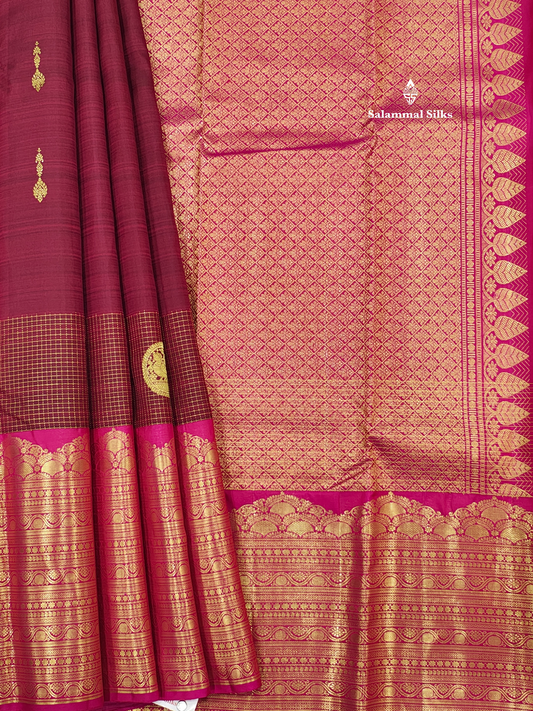 Paalum Pazham Zari Checks With Butta Pure Kanjivaram Silk Saree With Contrast Maroon Traditional Border