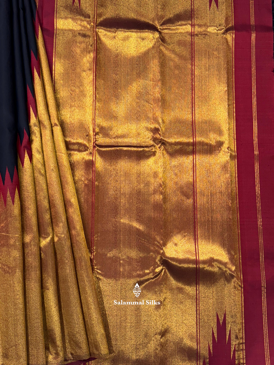 Beautiful Dual Tone Golden Yellow Pure Kanjivaram Silk Saree With Contrast Magent Traditional Border