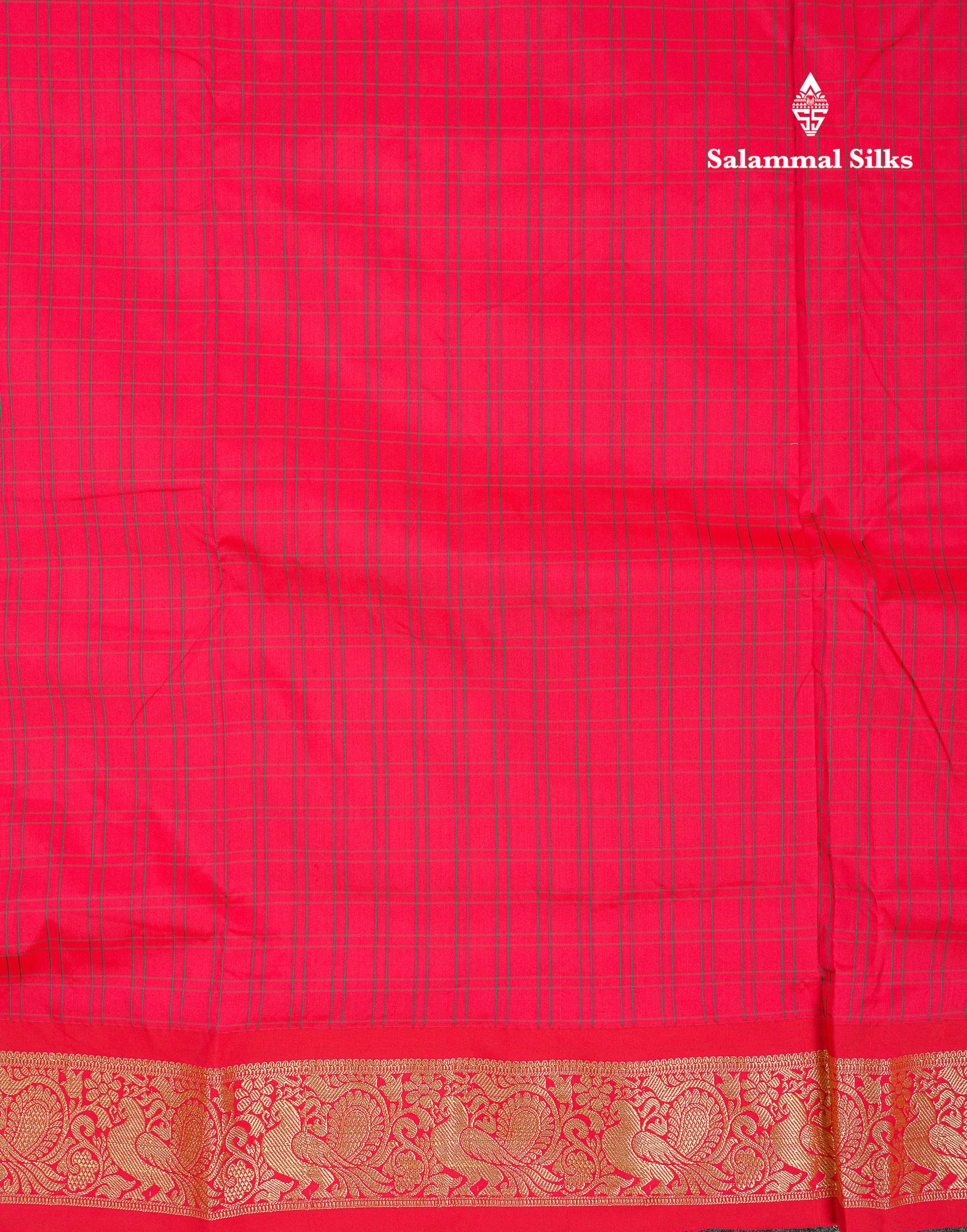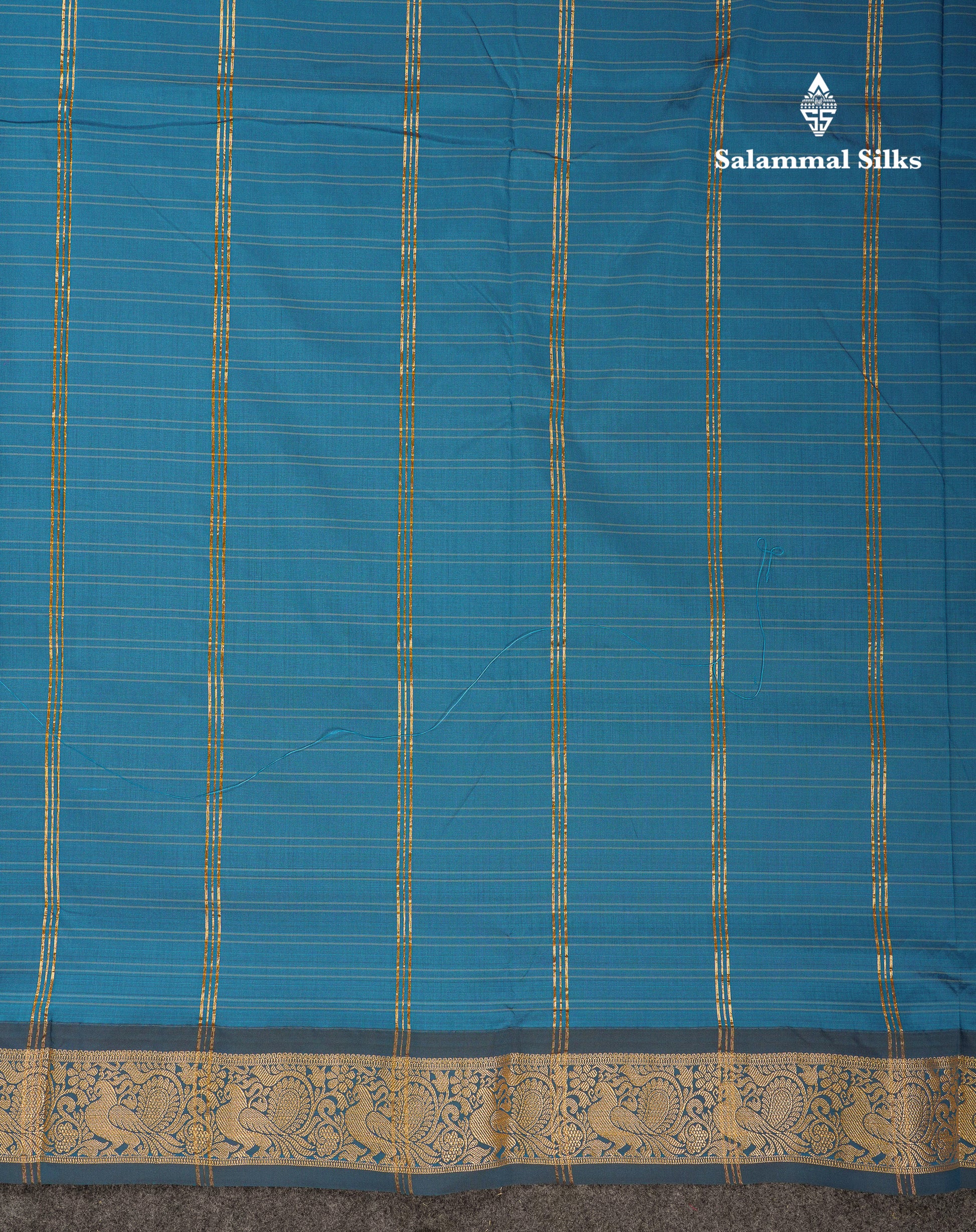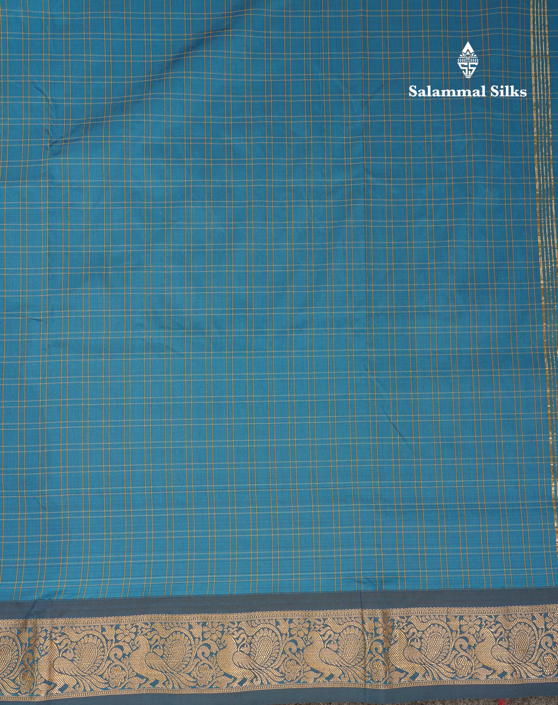 10 Yards Art Silk Saree Peacock Blue Checks with Traditional Border