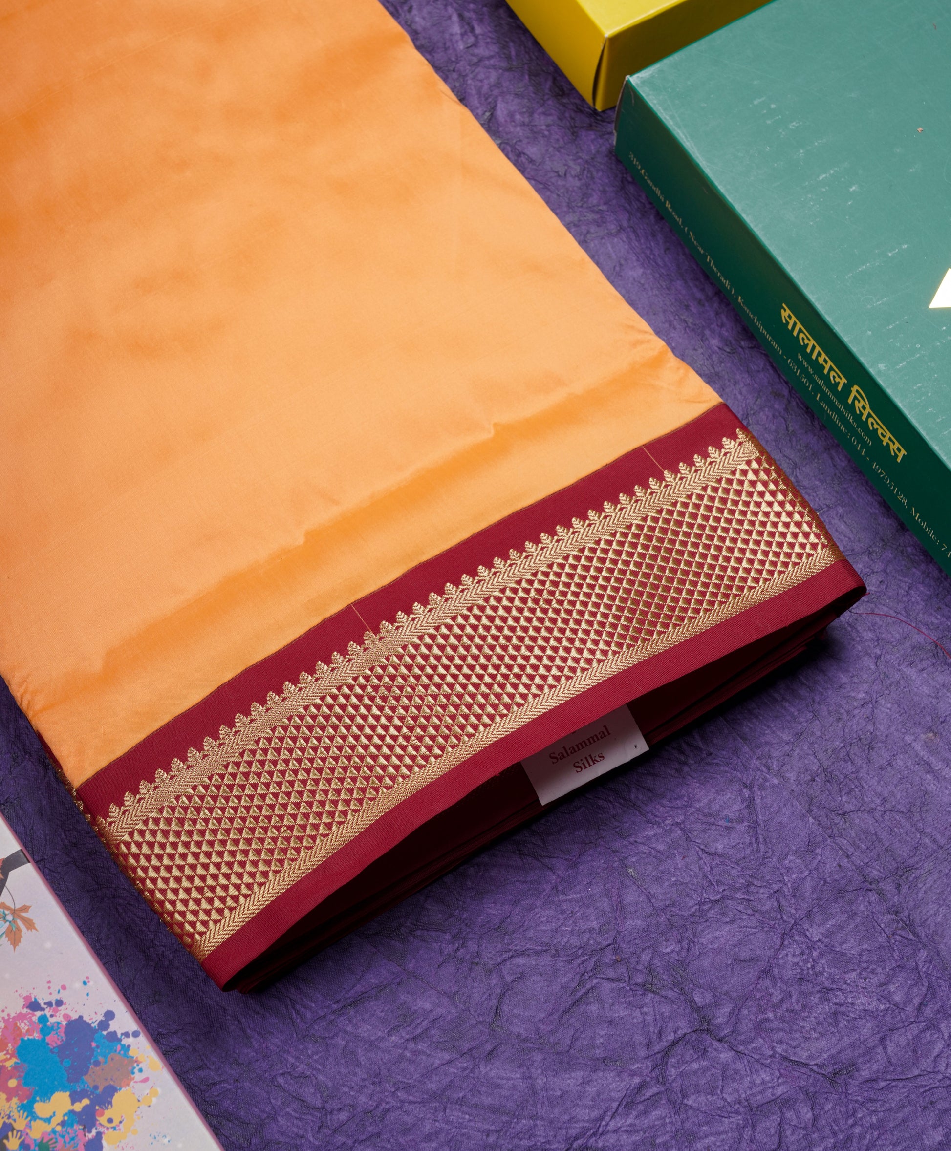 Salammal is known for its handloom sarees. In some sarees, there is cross-weaving between the body and the pallu, which is a sign of pure handloom sarees. This can be seen in Kanchipuram embossed sarees.