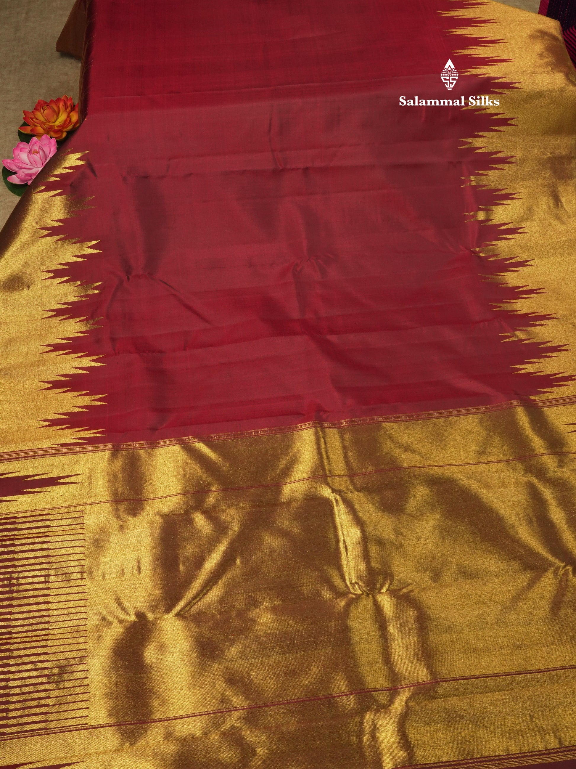 8 Kol Maroon Pure Kanjivaram Silk Saree with Traditional Temple Border