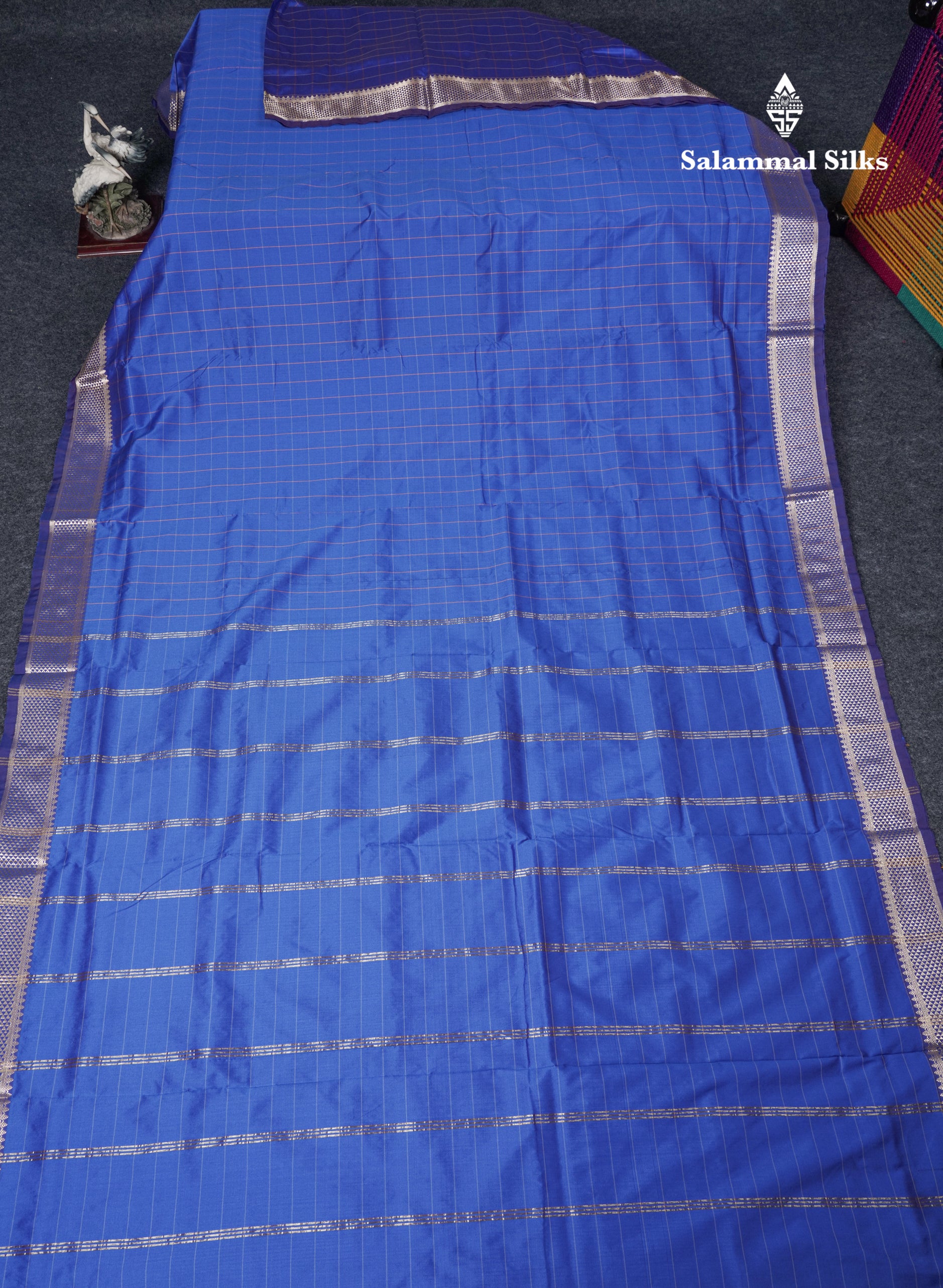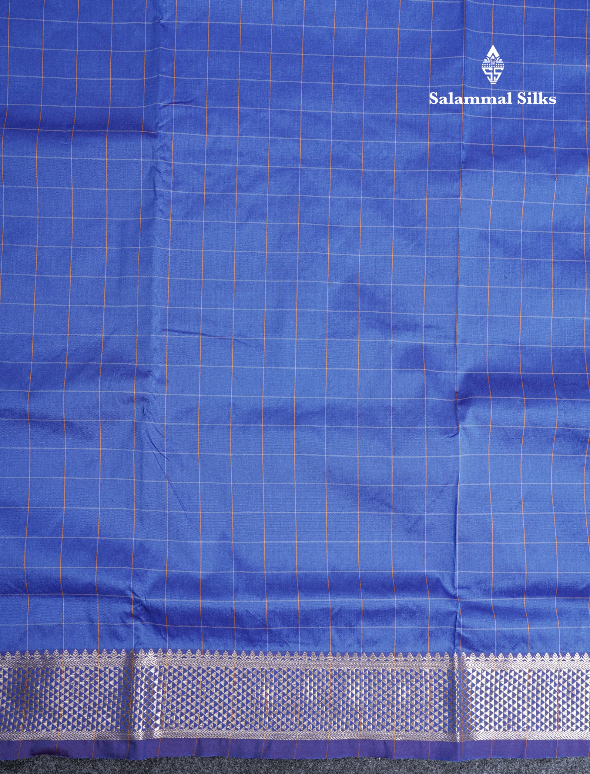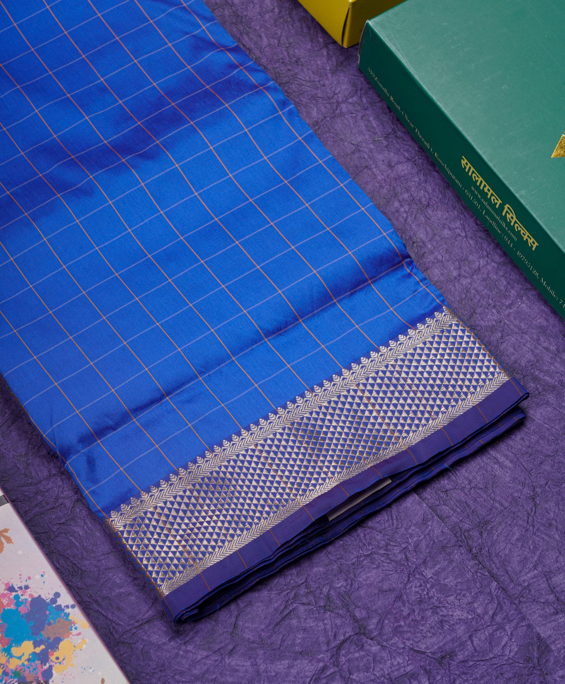 9.5 Yards Semi Silk Saree Royal Blue Checks With Traditional Self Border