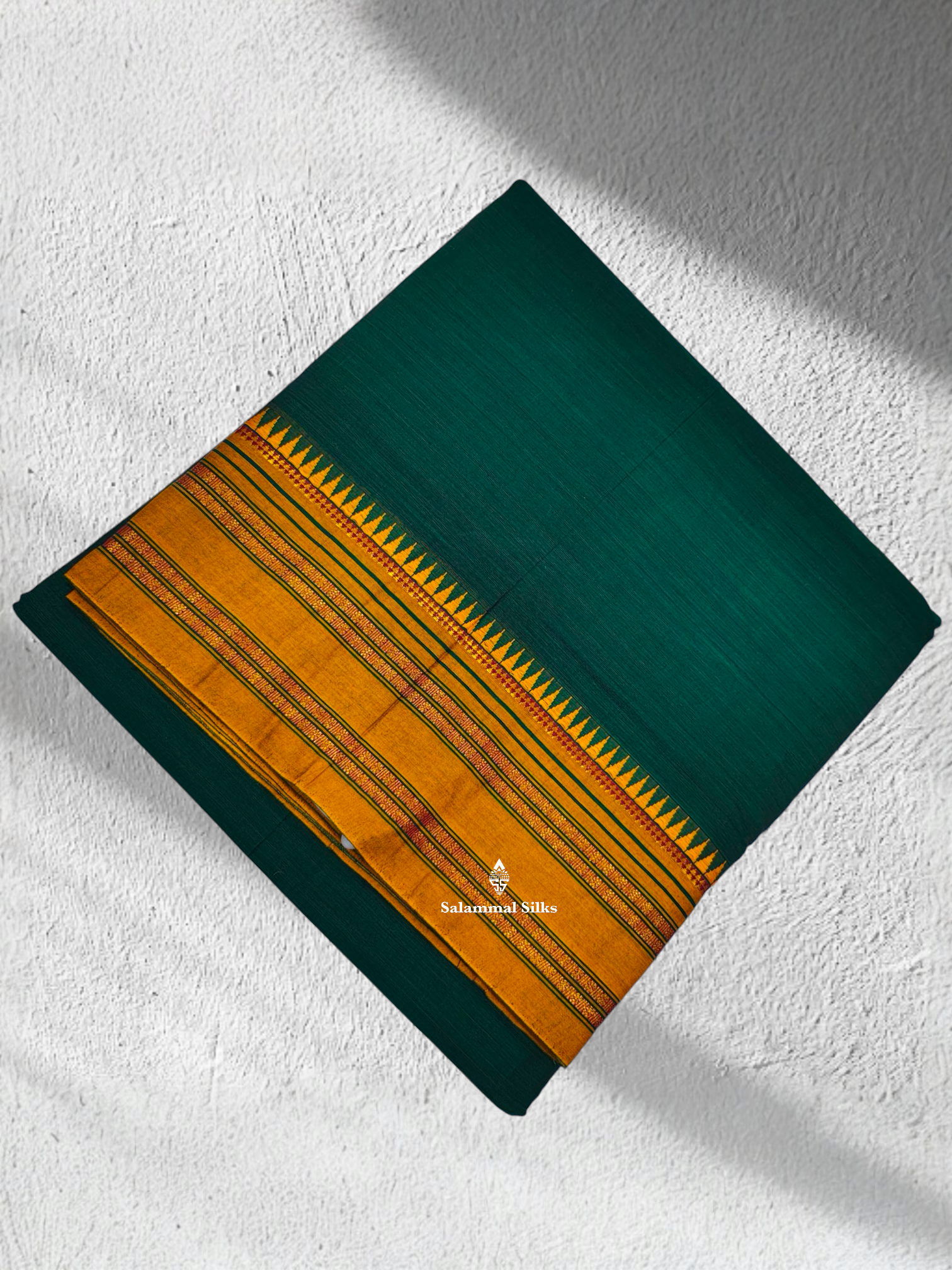 Salammal is known for its handloom sarees. In some sarees, there is cross-weaving between the body and the pallu, which is a sign of pure handloom sarees. This can be seen in Kanchipuram embossed sarees.