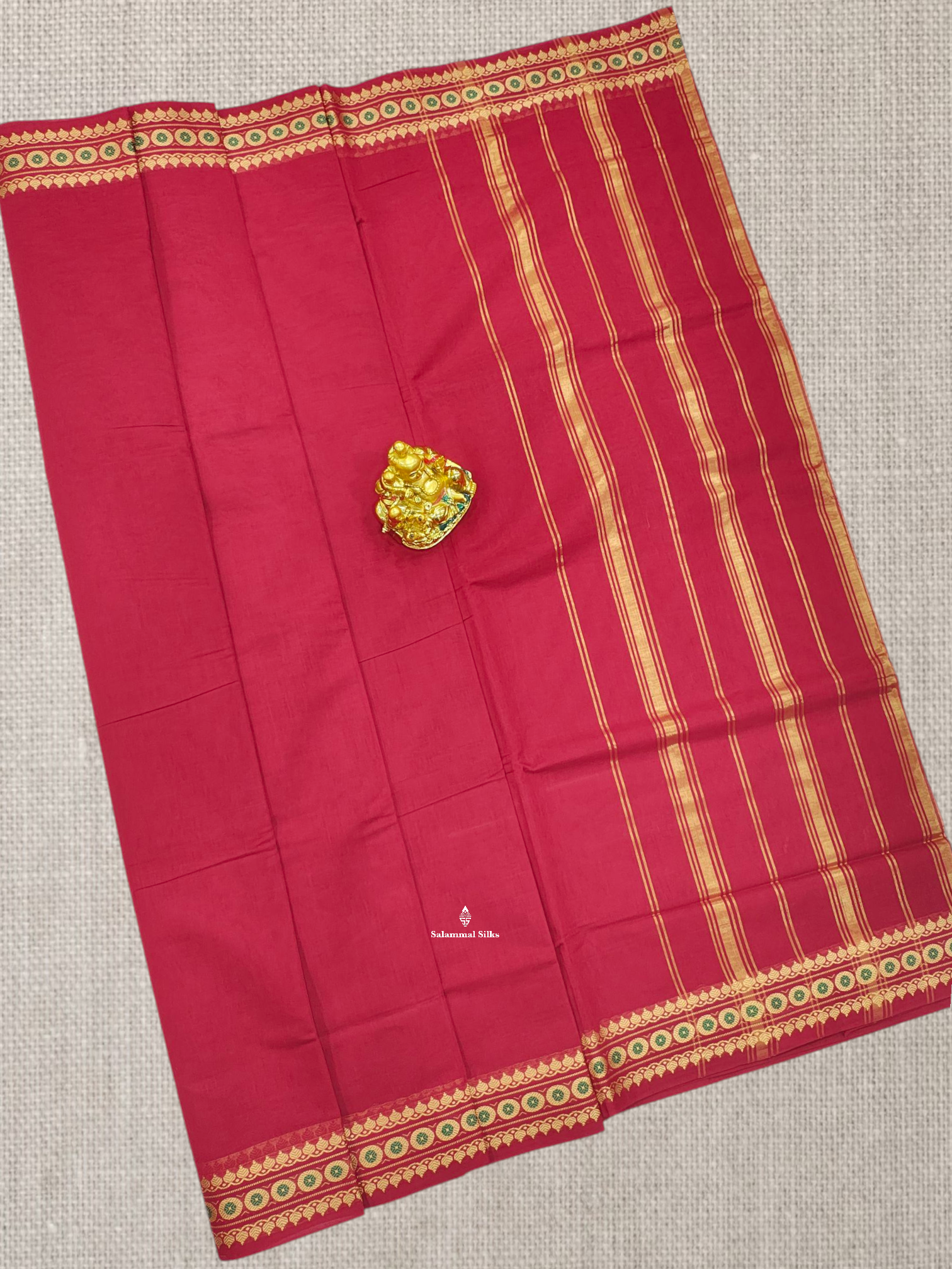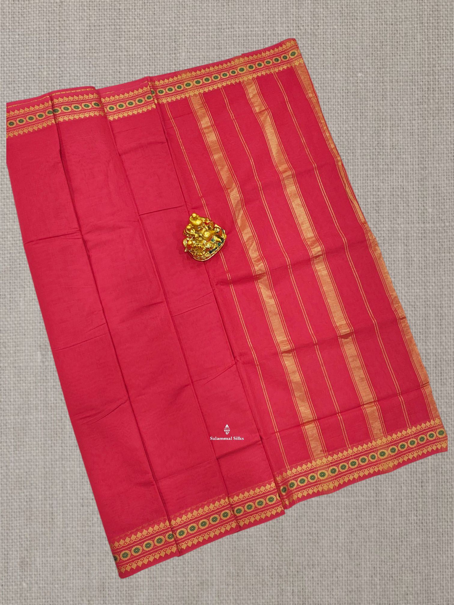 Salammal is known for its handloom sarees. In some sarees, there is cross-weaving between the body and the pallu, which is a sign of pure handloom sarees. This can be seen in Kanchipuram embossed sarees.