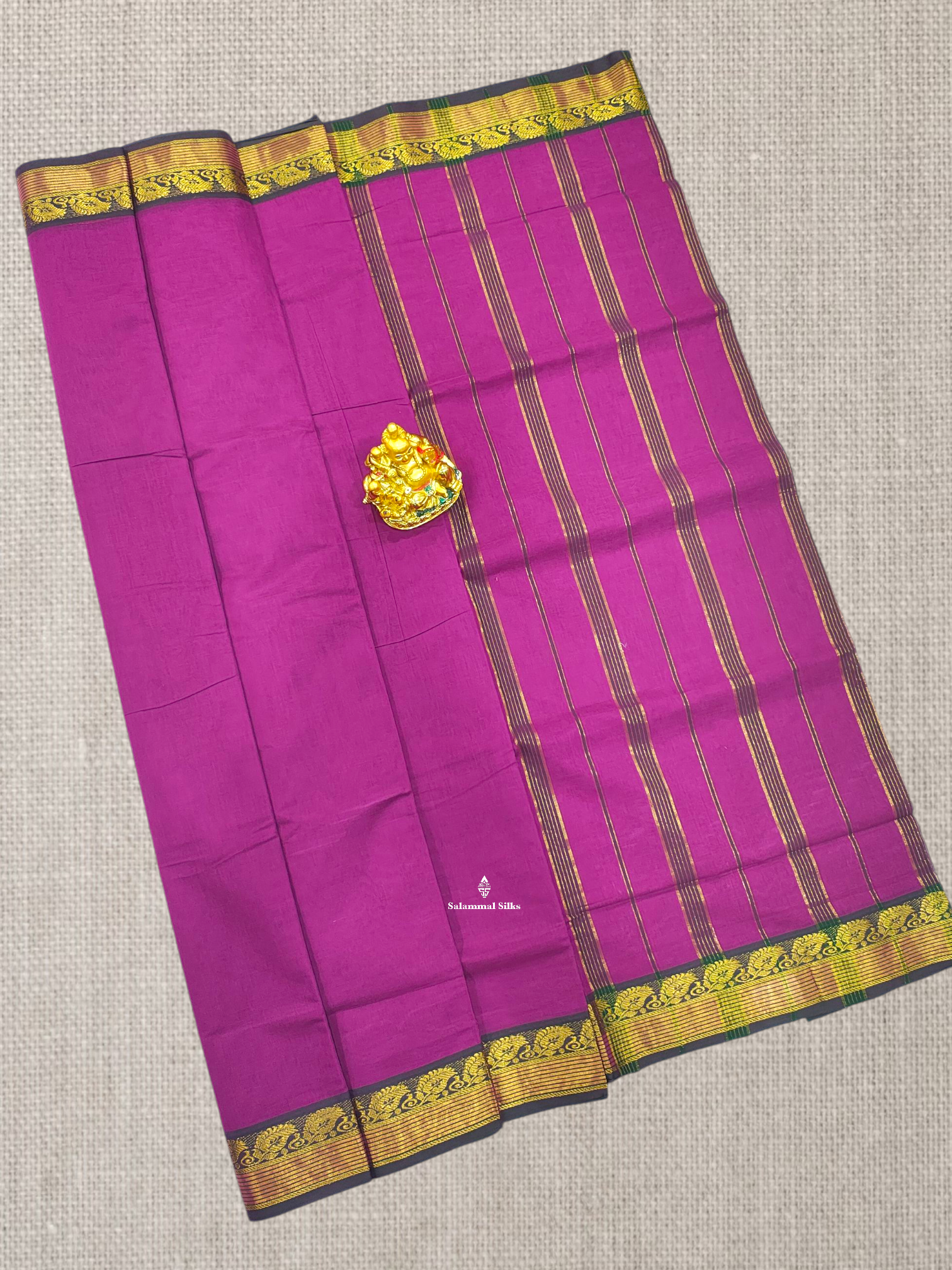 9 Yards Beautiful Magenta Plain Pure Cotton Saree With Green Border