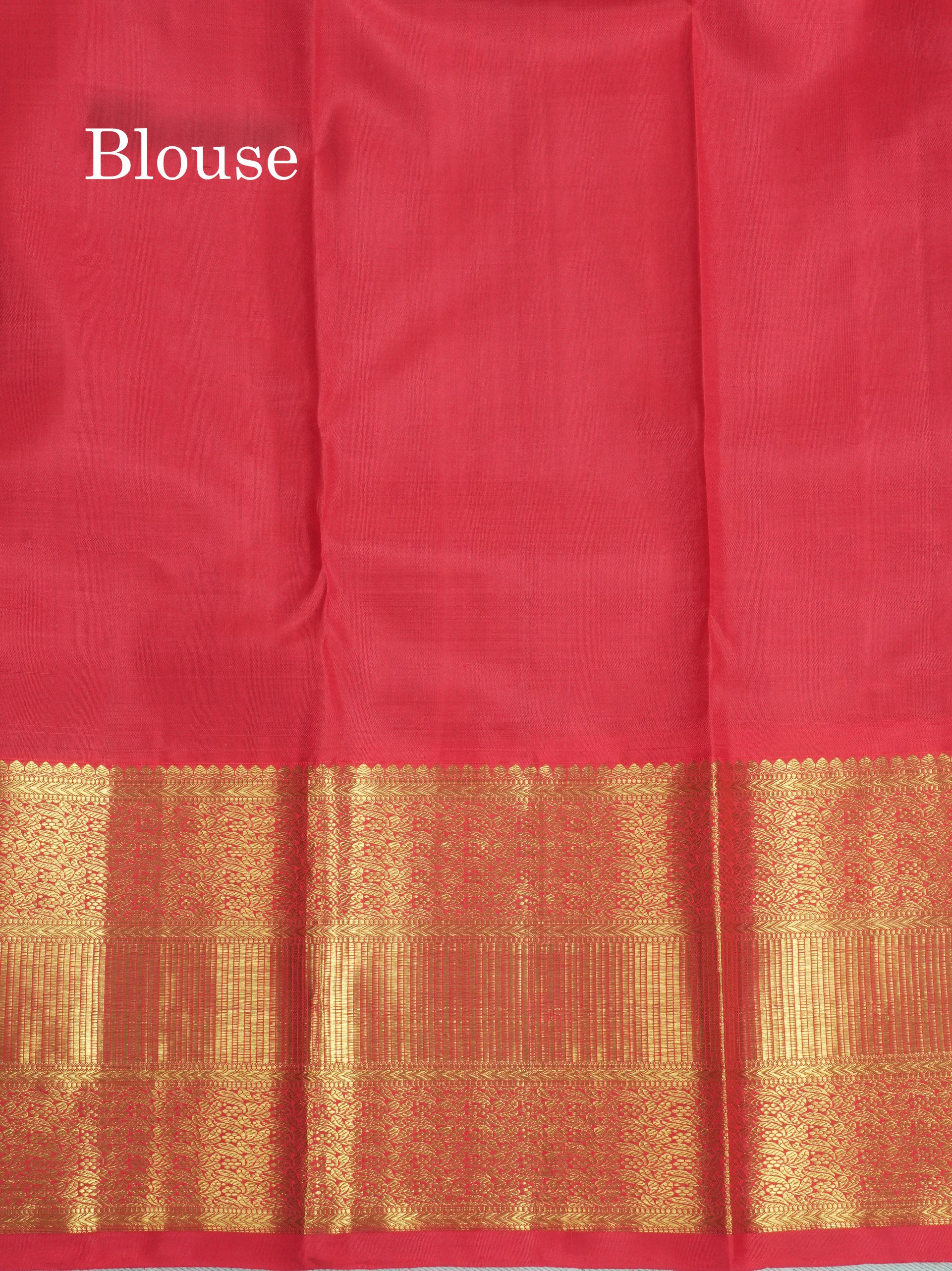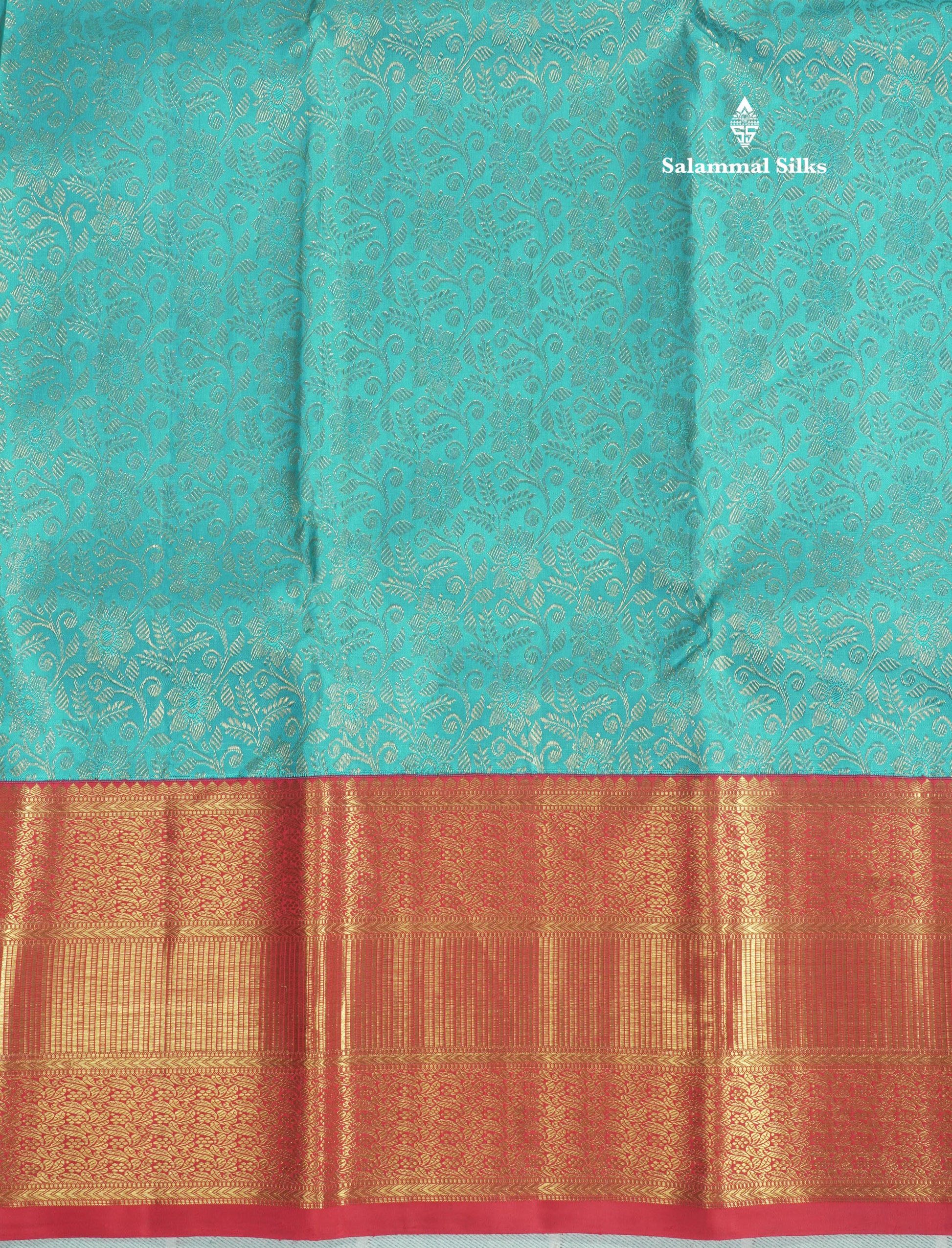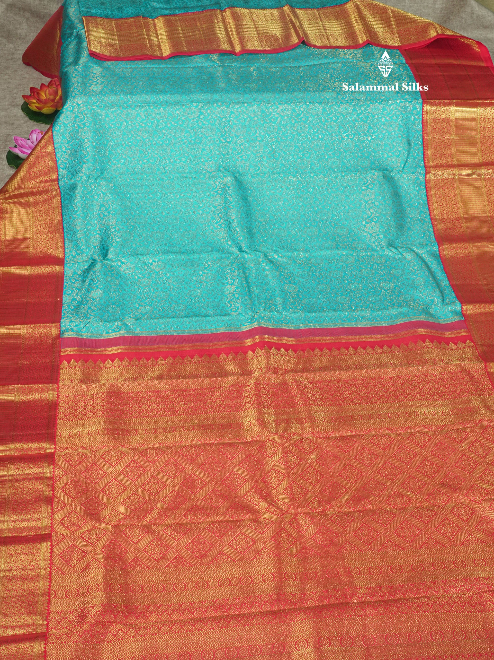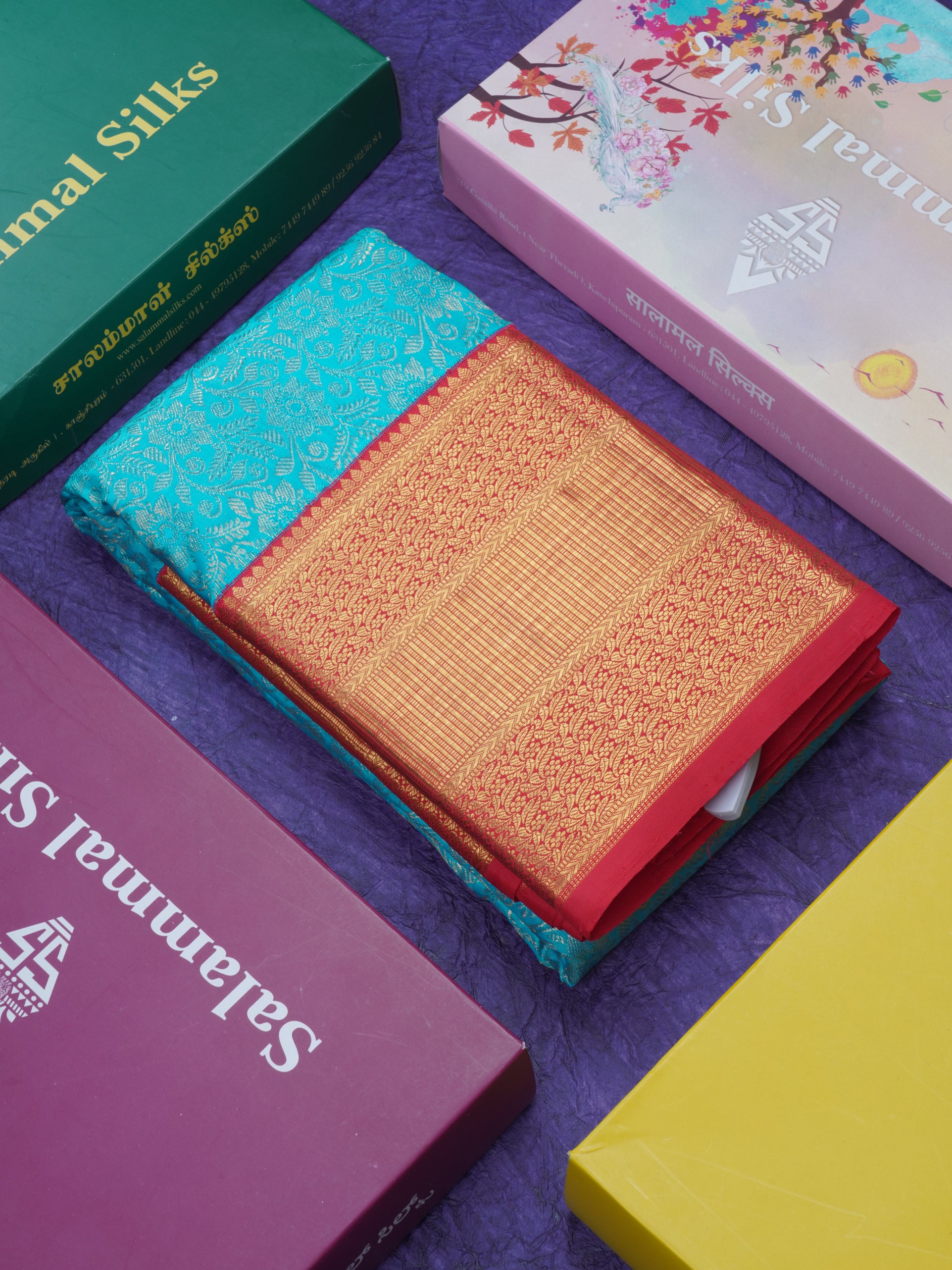 Korvai Anandha Blue Bridal Pure Kanjivaram Silk Saree With Contrast Red Border