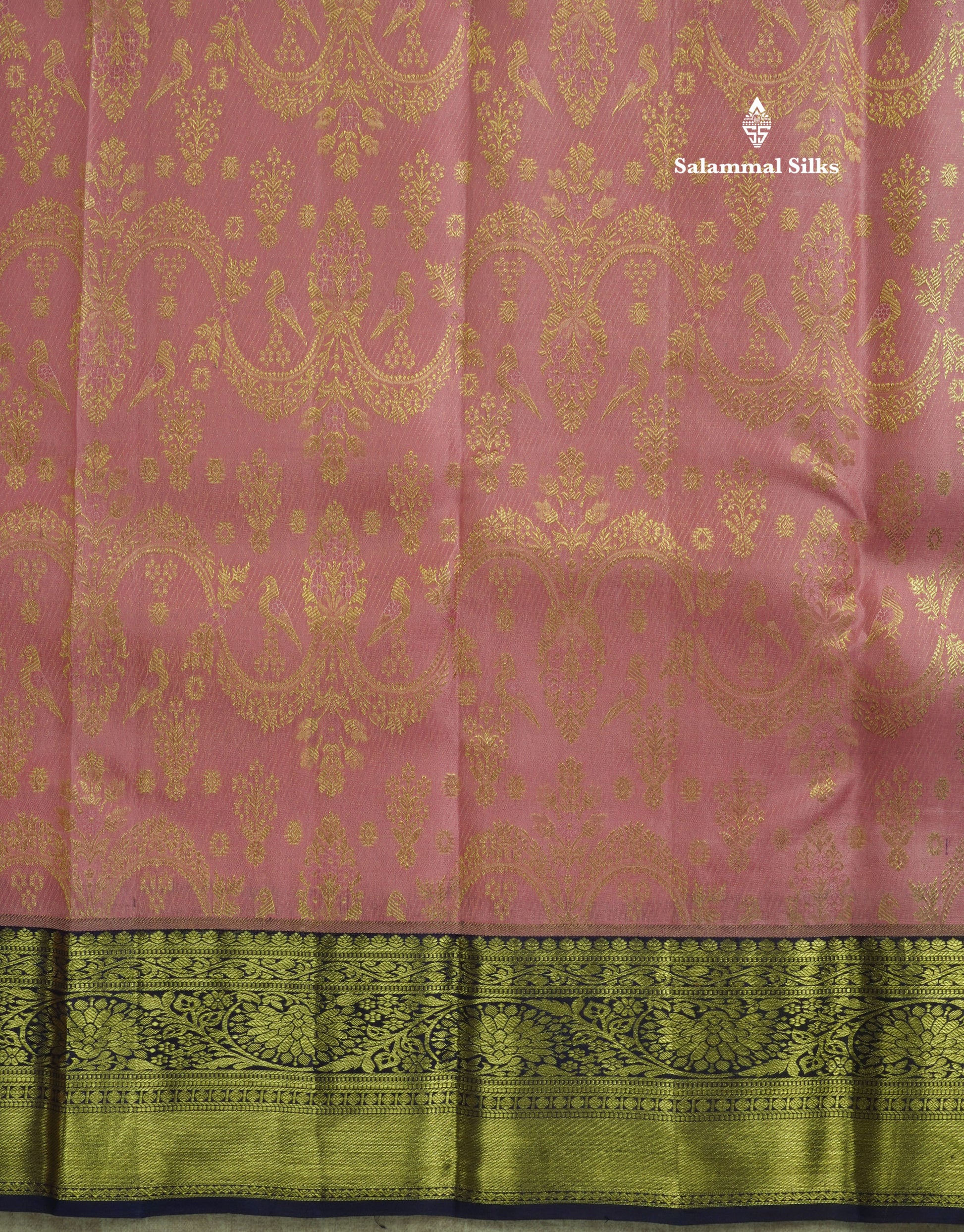Baby Pink Bridal Pure Kanjivaram Silk Saree With Navy Blue Border