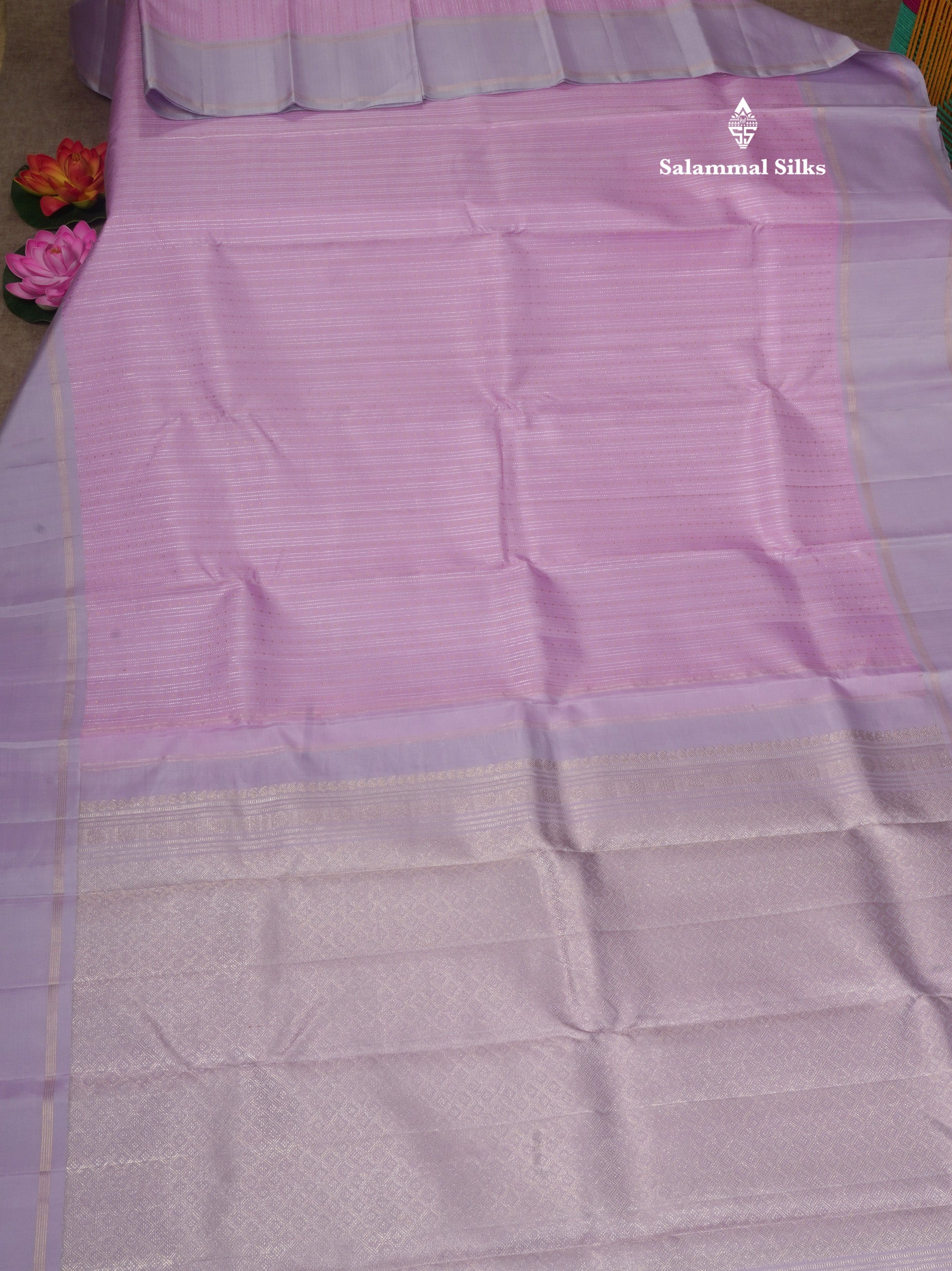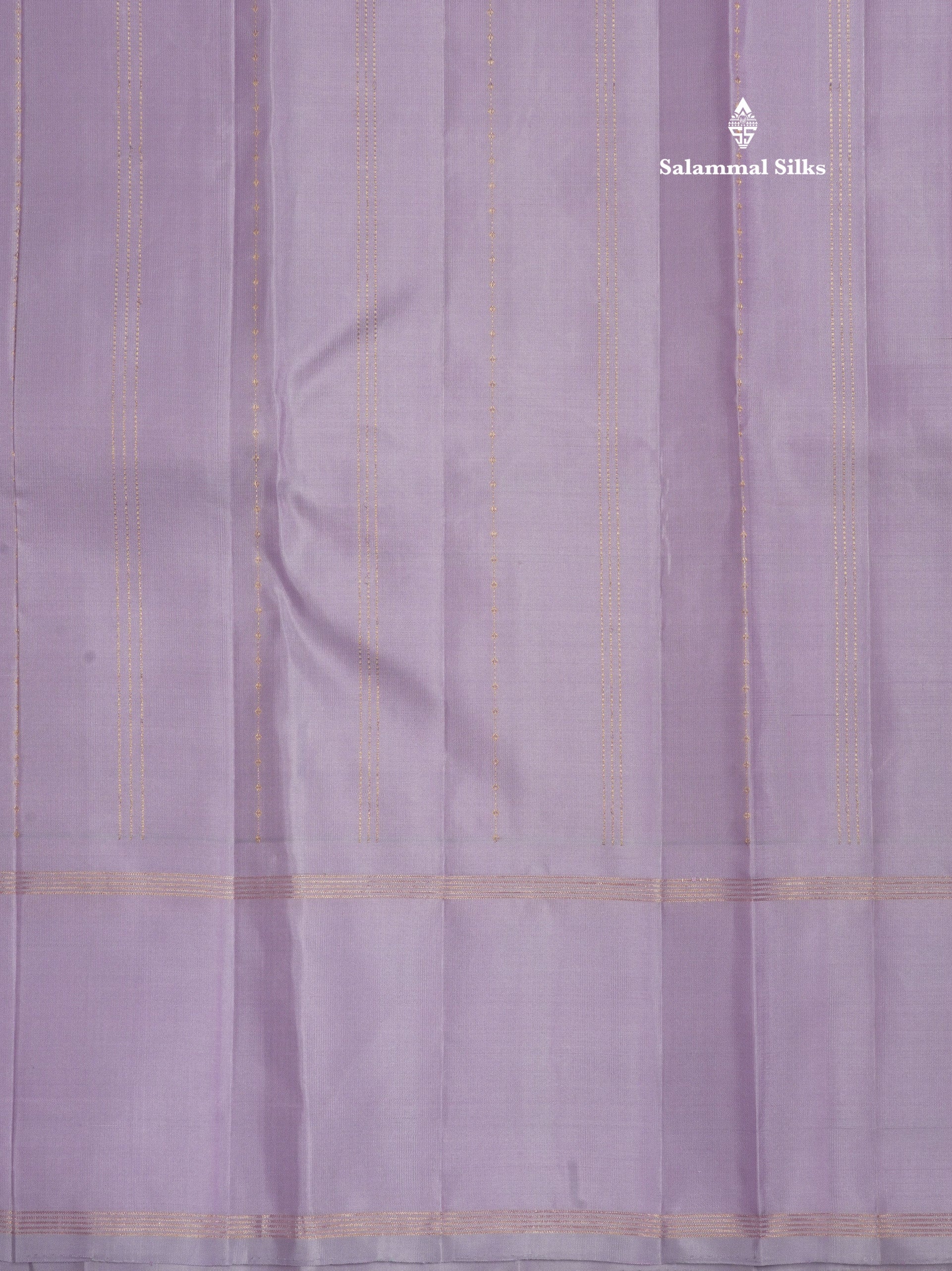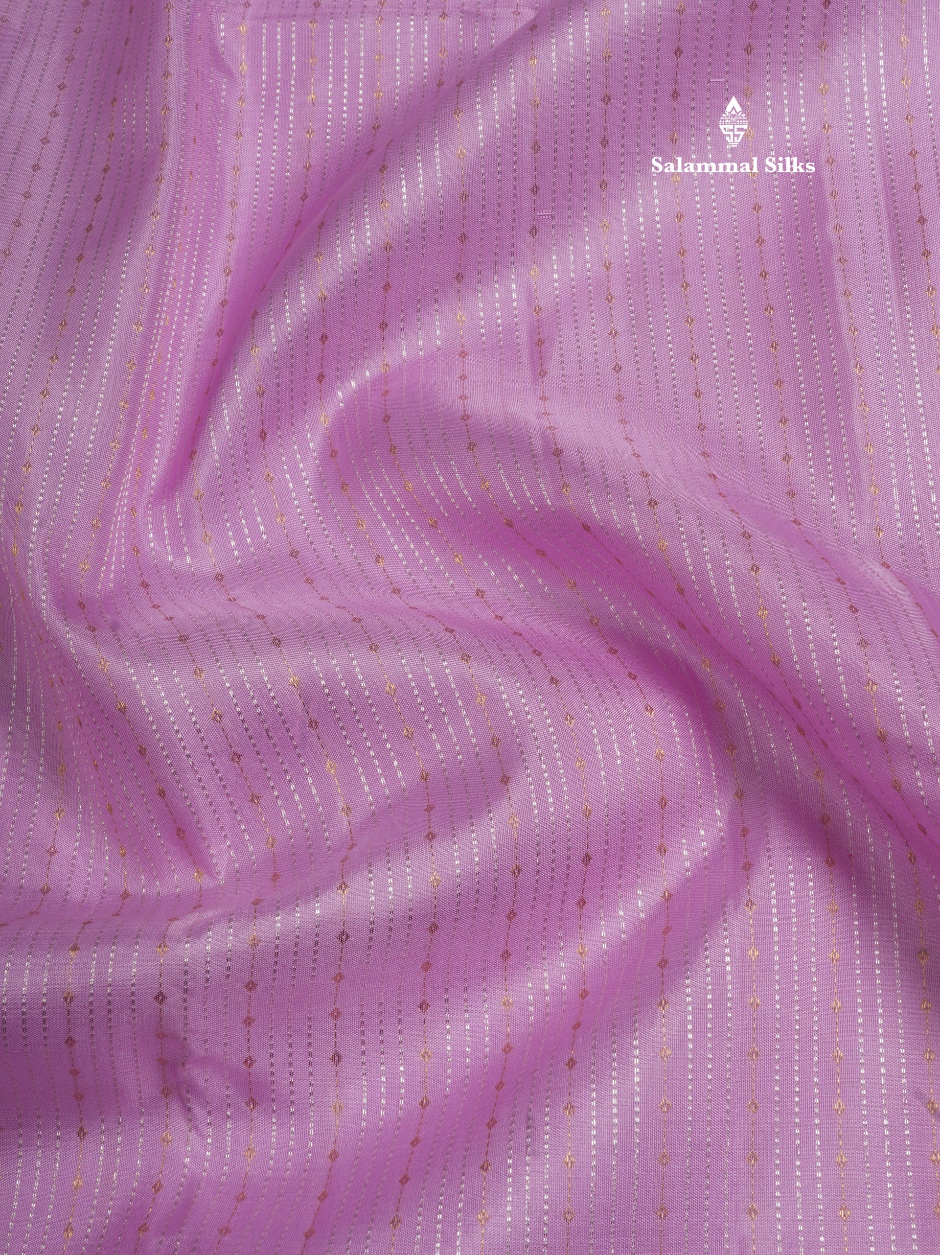 Baby Pink Fancy Gold Silver Zari Lines Pure Kanjivaram Silk Saree With Light Lavander Border