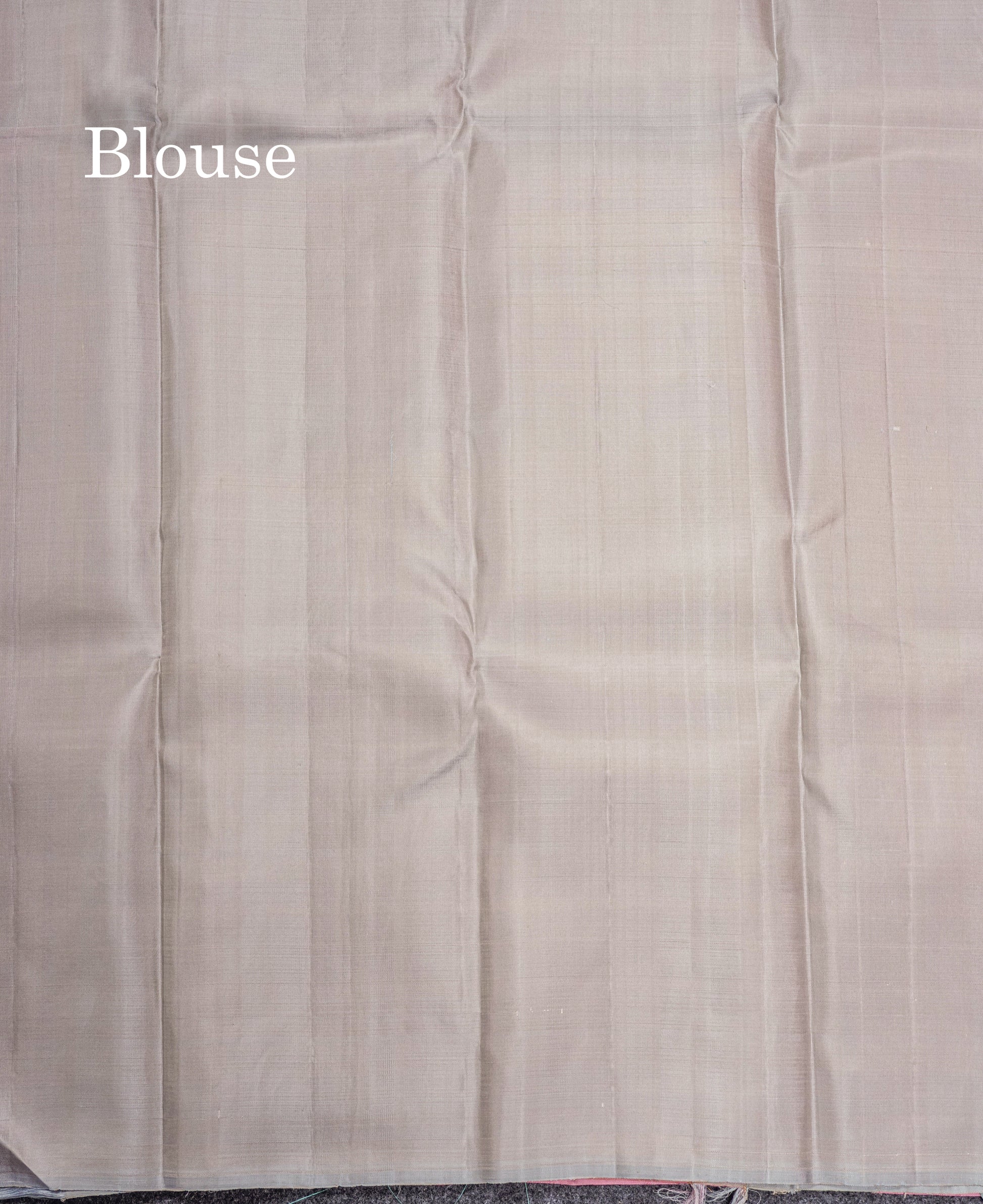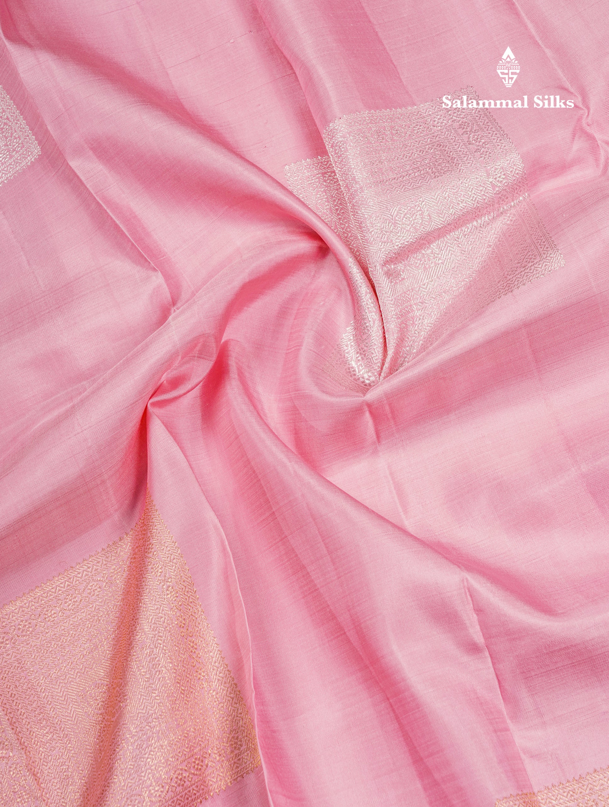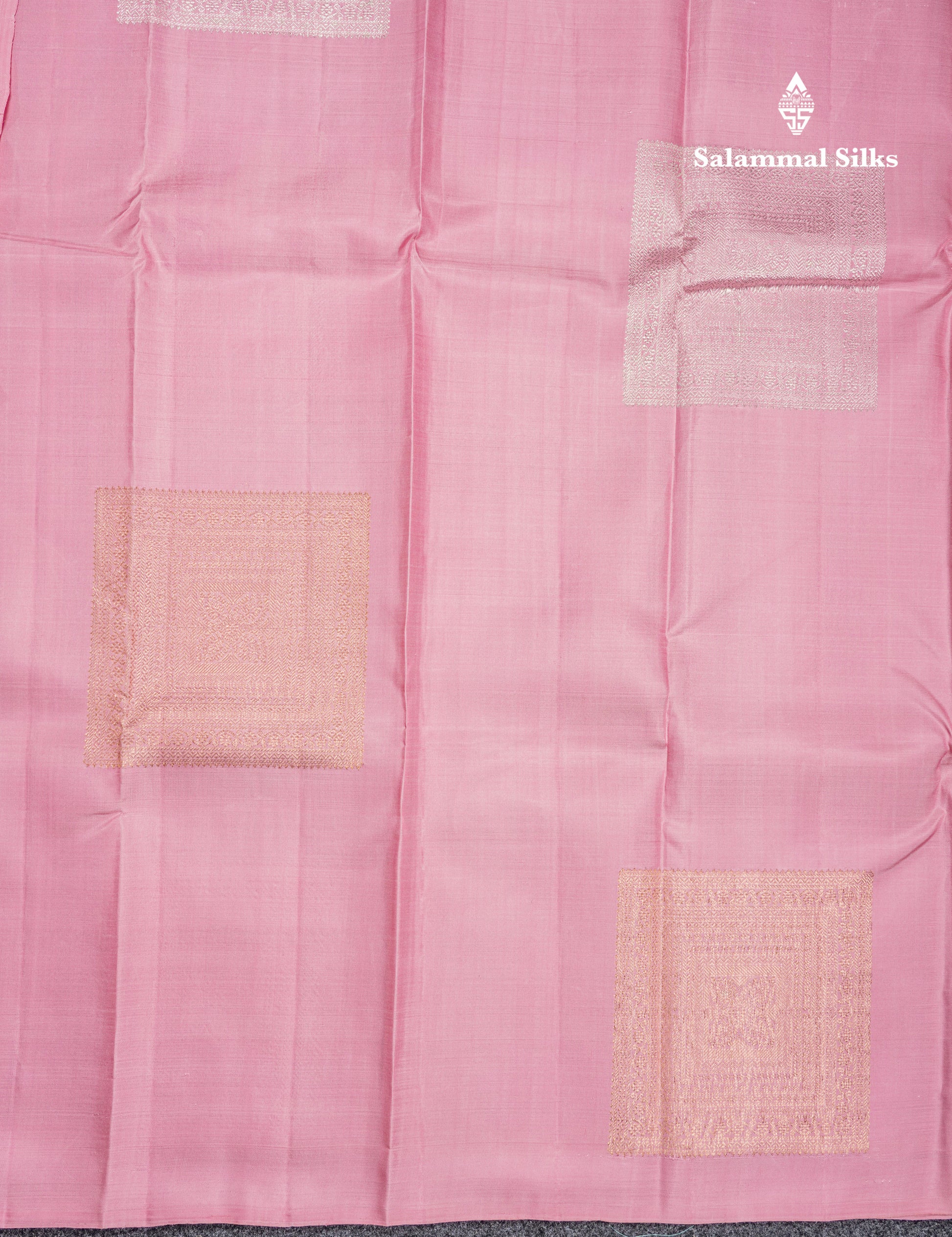Baby Pink Fancy Pure Kanjivaram Silk Saree With Contrast Blueish Grey Blouse