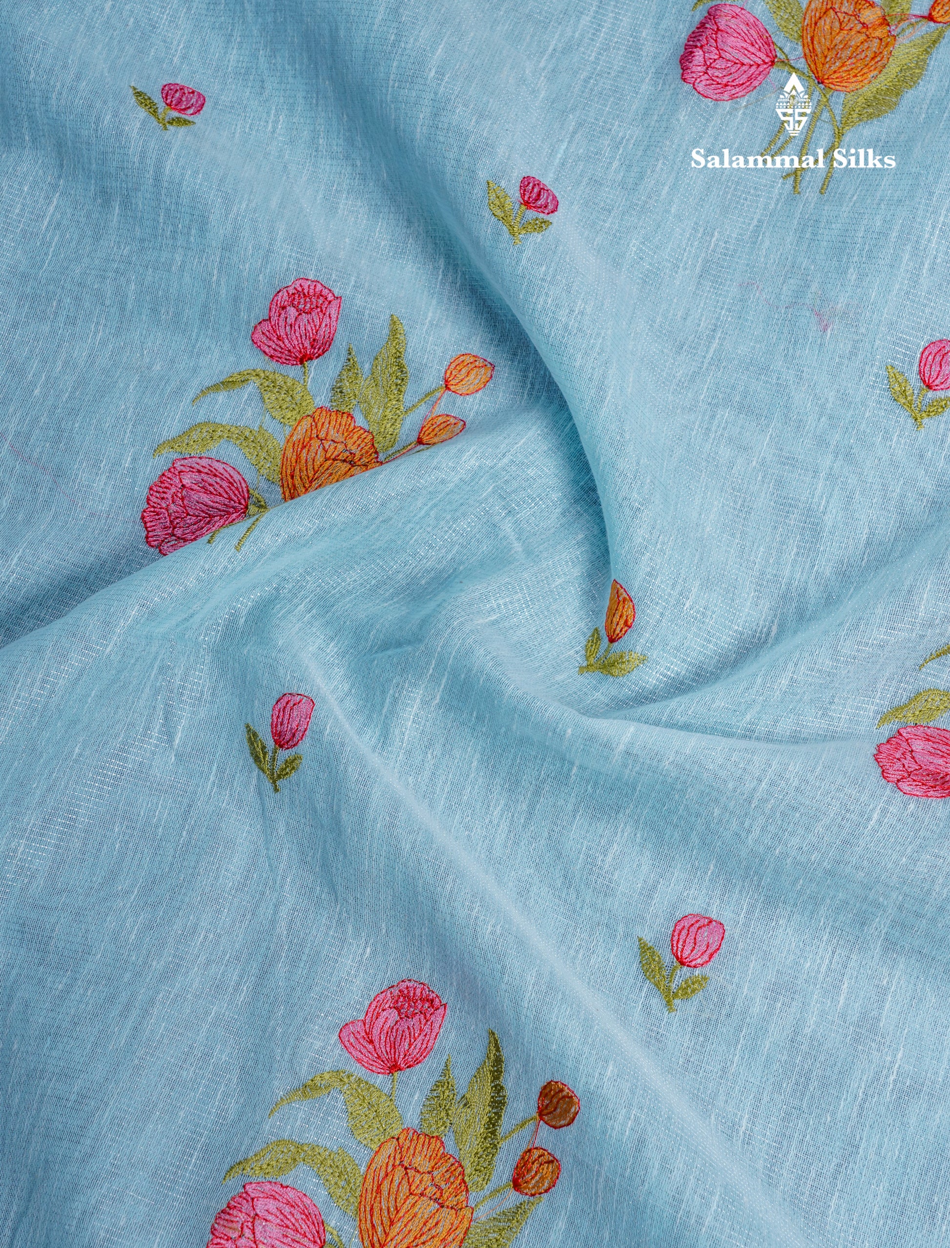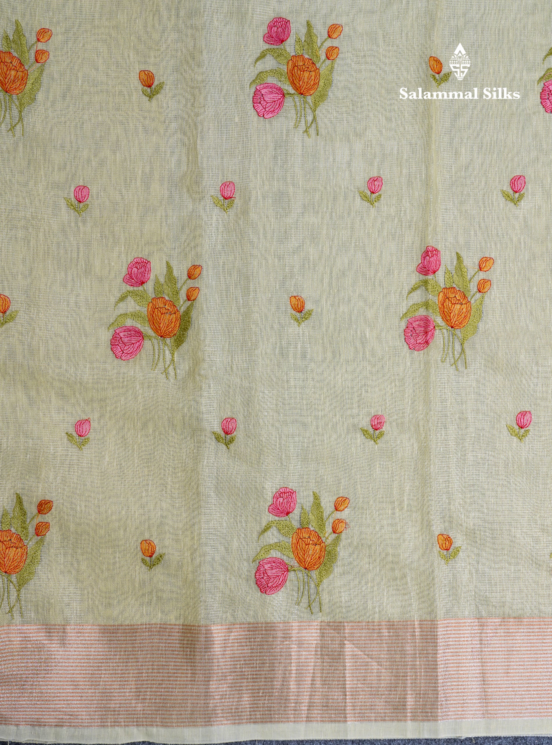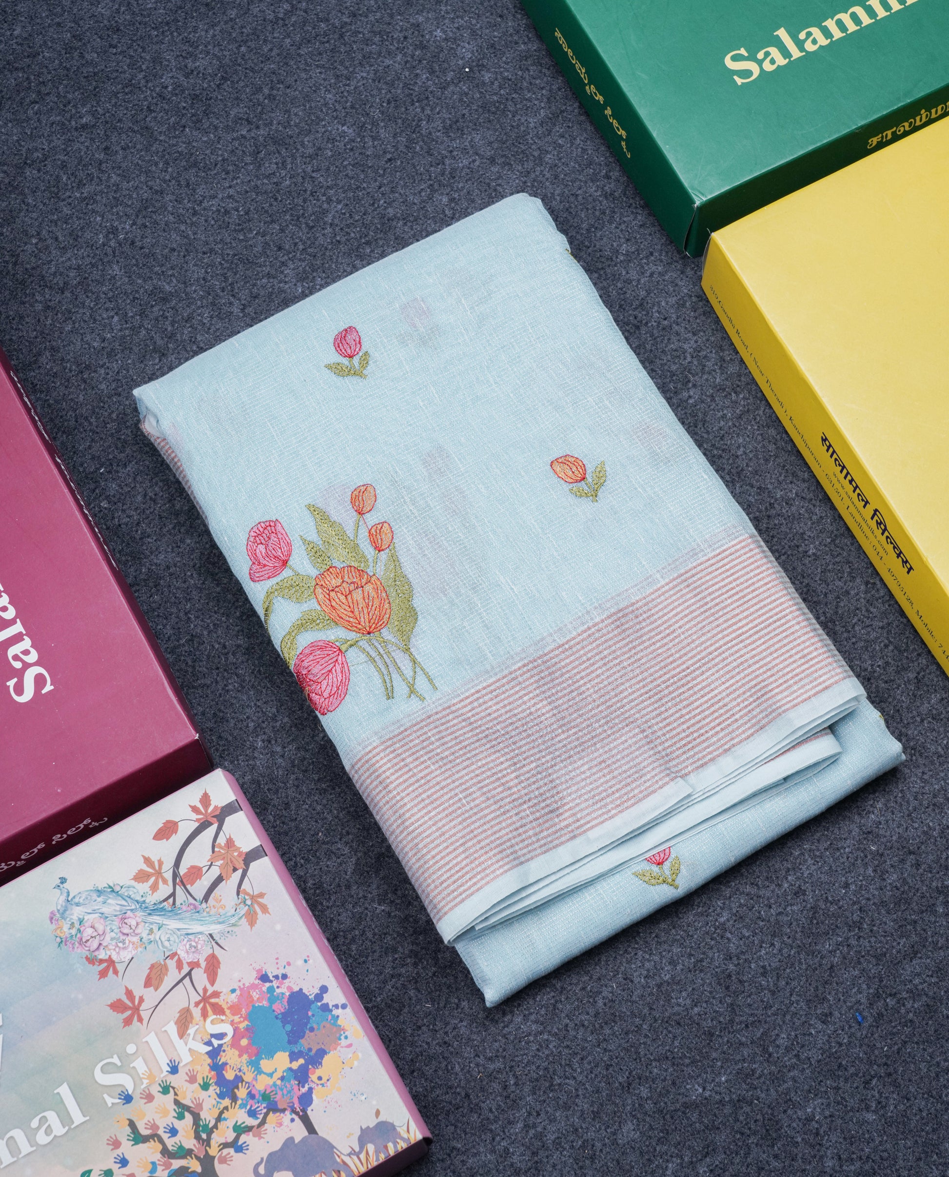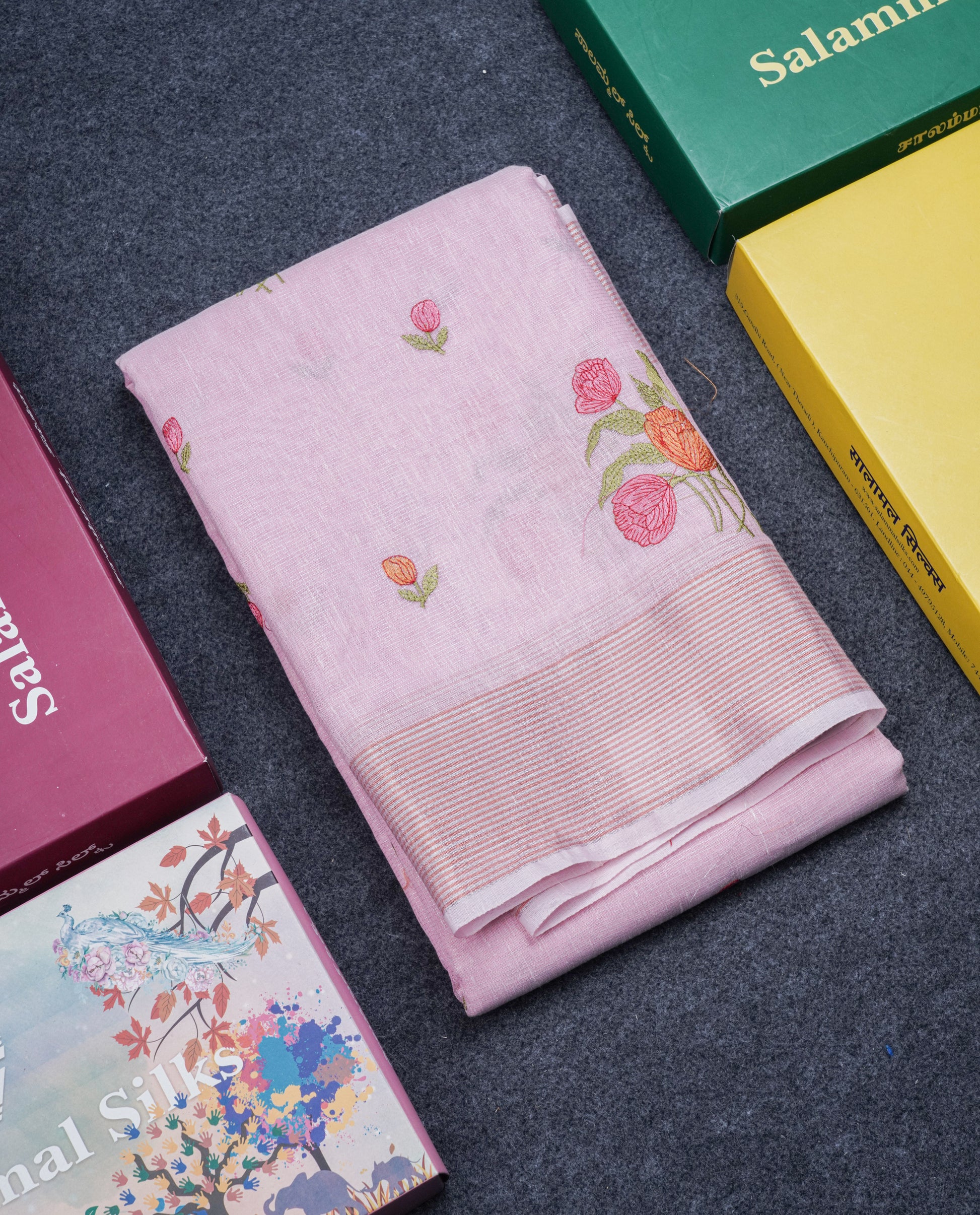 Salammal is known for its handloom sarees. In some sarees, there is cross-weaving between the body and the pallu, which is a sign of pure handloom sarees. This can be seen in Kanchipuram embossed sarees.