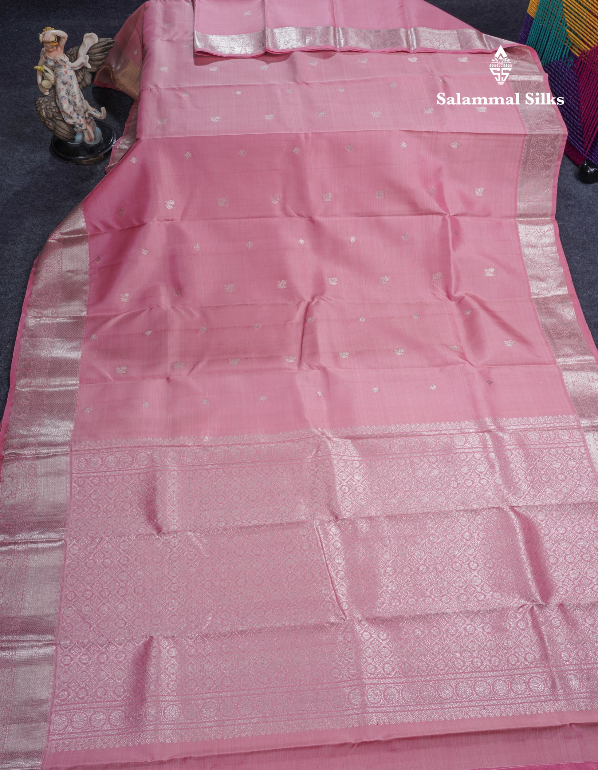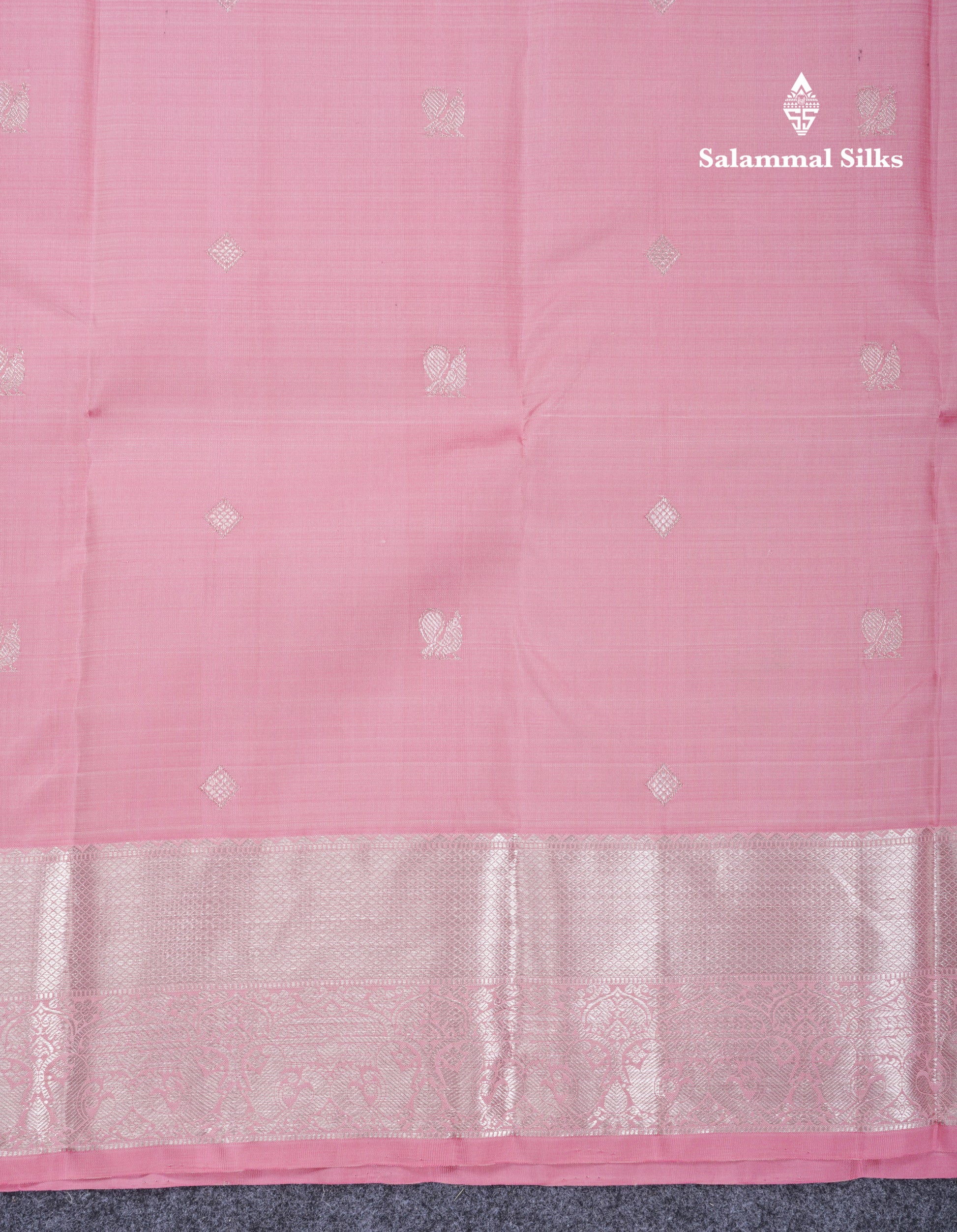 Baby Pink Pure Kanjivaram Silk Saree With Traditional Evening Morning Border