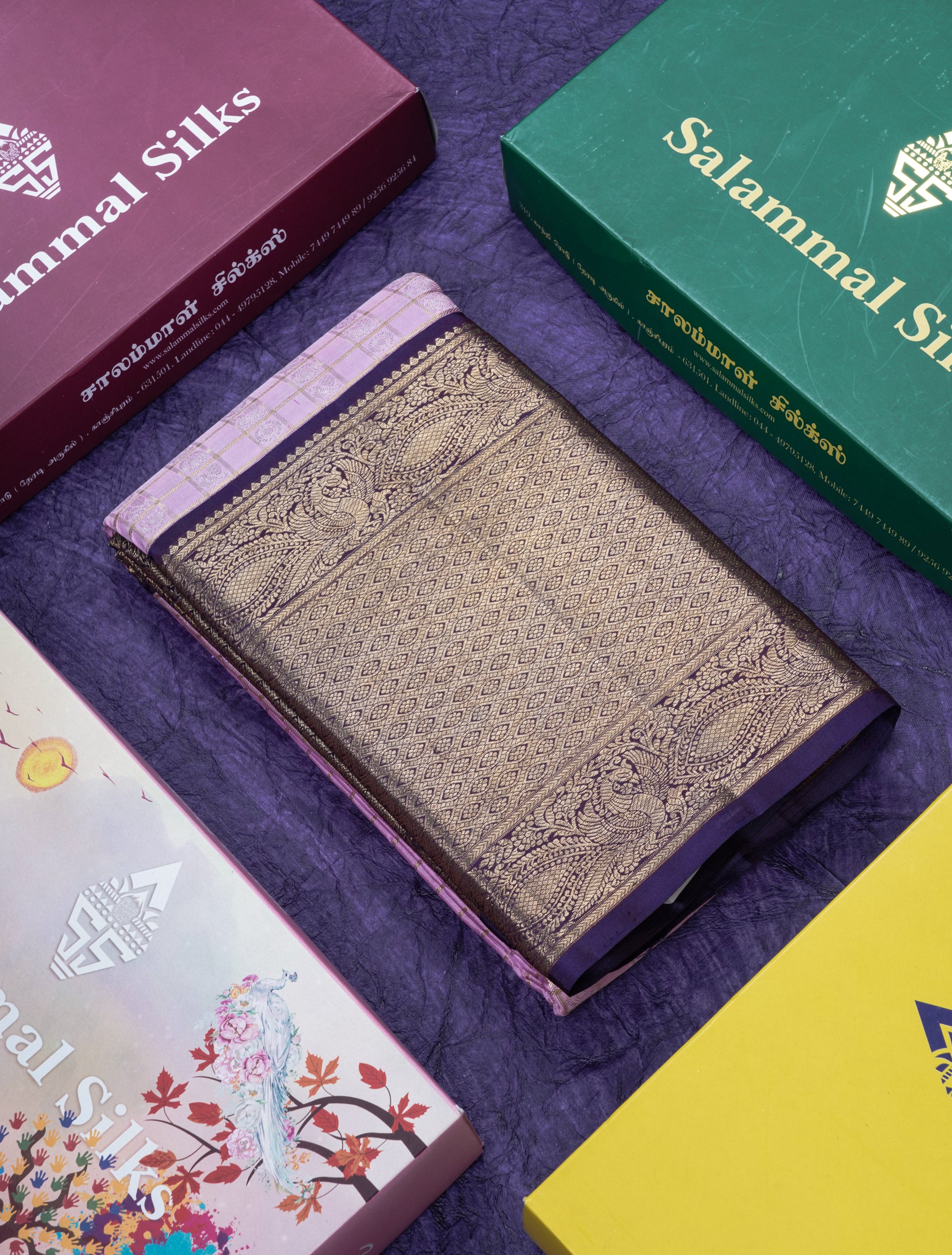 Salammal is known for its handloom sarees. In some sarees, there is cross-weaving between the body and the pallu, which is a sign of pure handloom sarees. This can be seen in Kanchipuram embossed sarees.