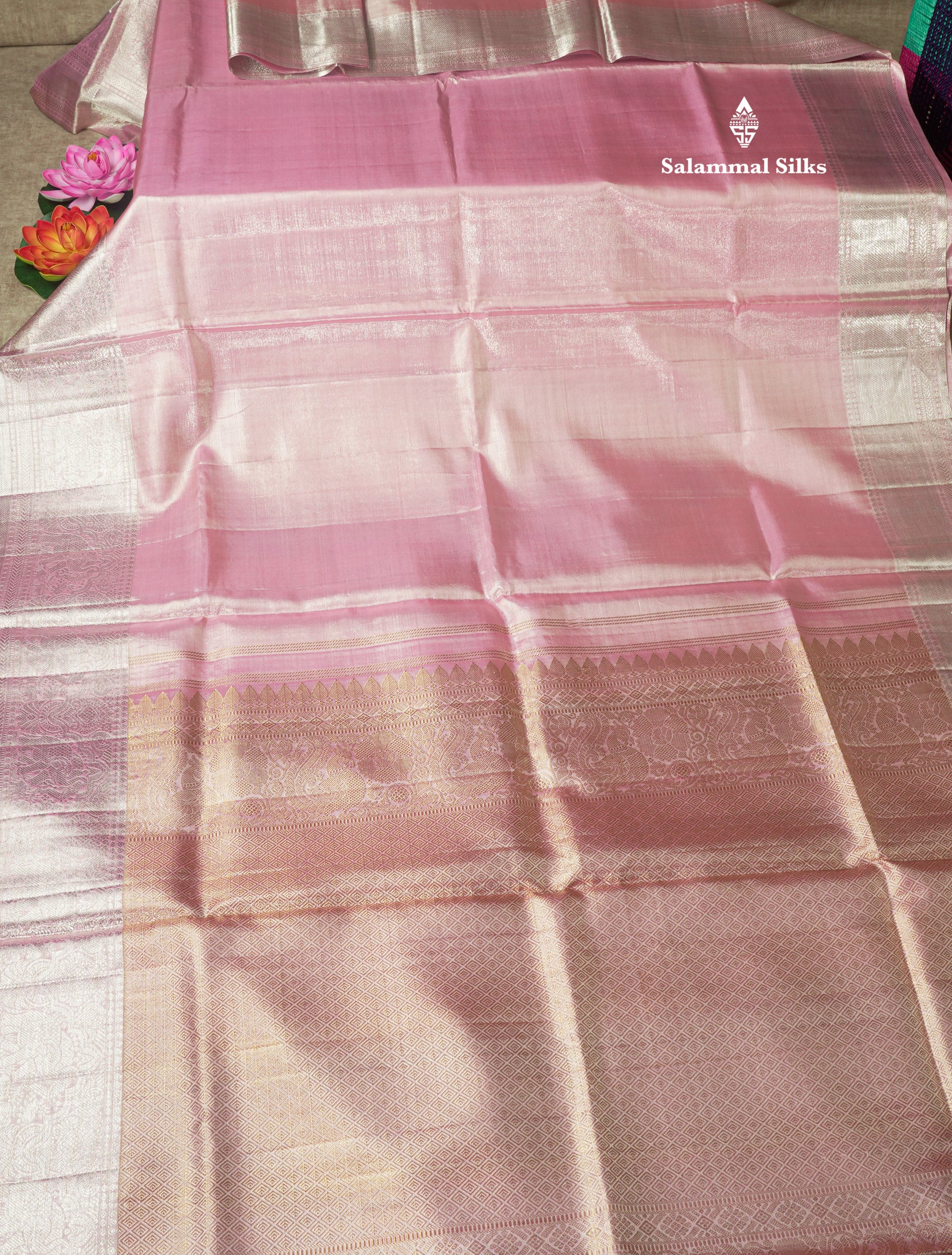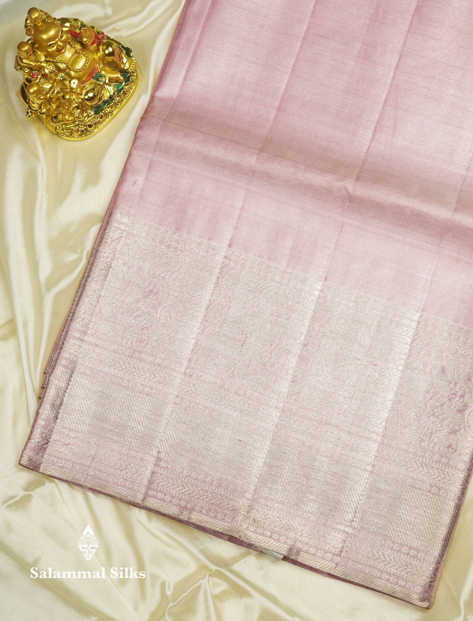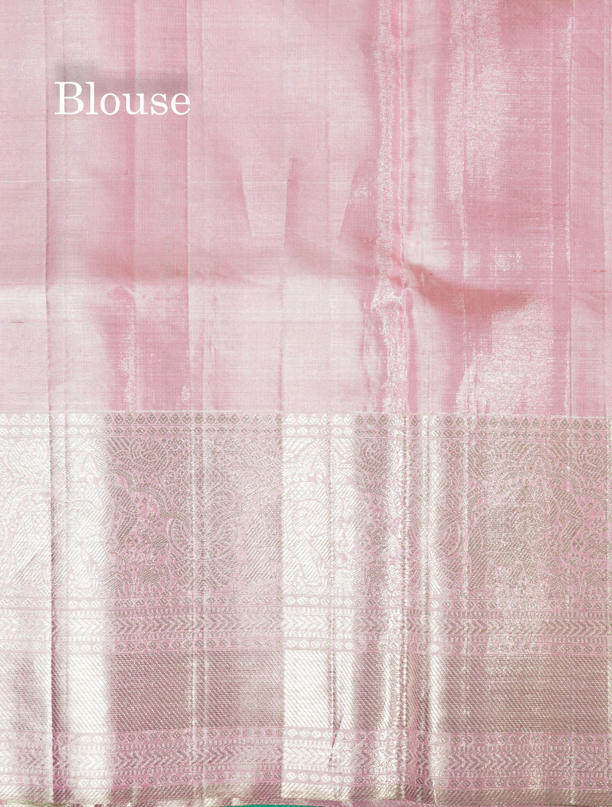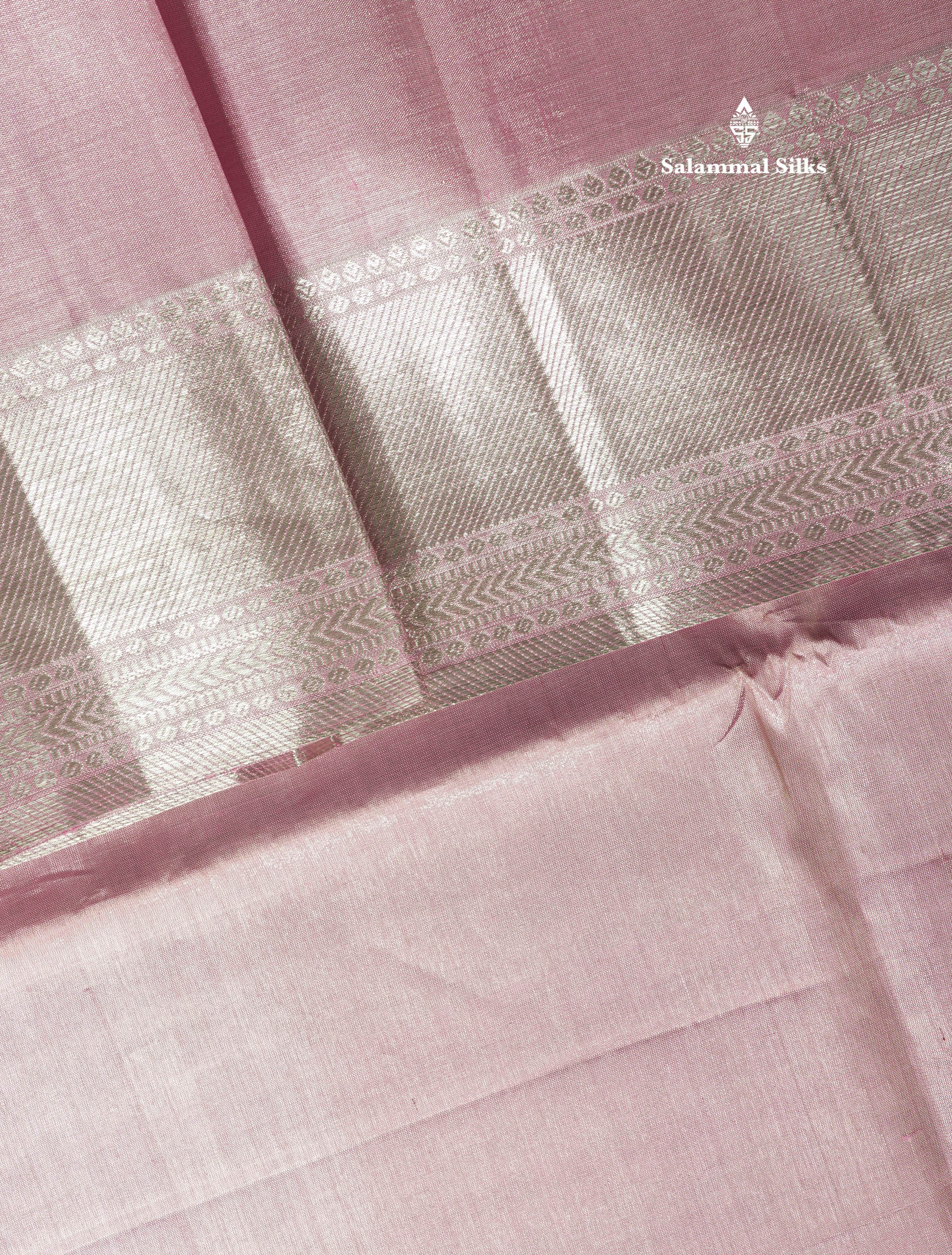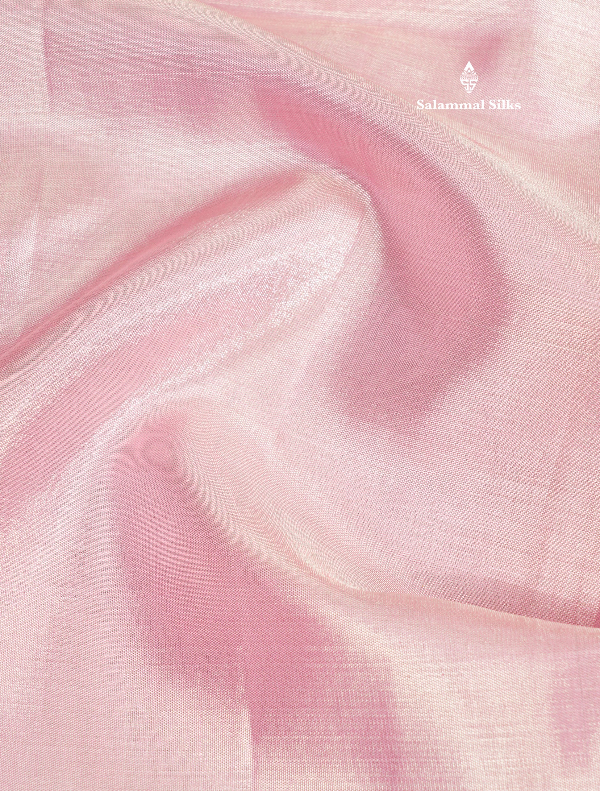 Beautiful Baby Pink Tissue Plain Pure Kanjivaram Silk Saree (2G) Zari With Self Border