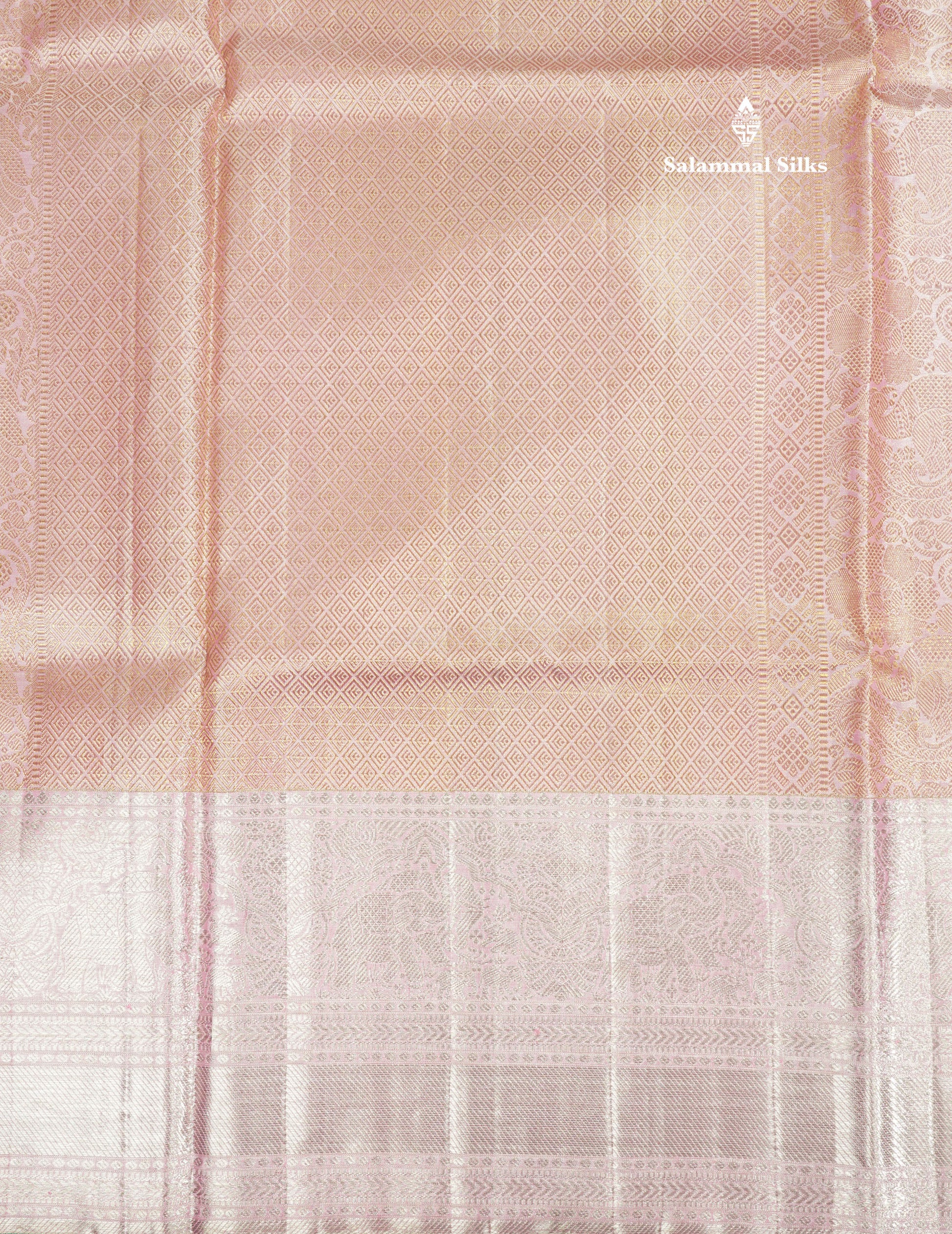 Salammal is known for its handloom sarees. In some sarees, there is cross-weaving between the body and the pallu, which is a sign of pure handloom sarees. This can be seen in Kanchipuram embossed sarees.