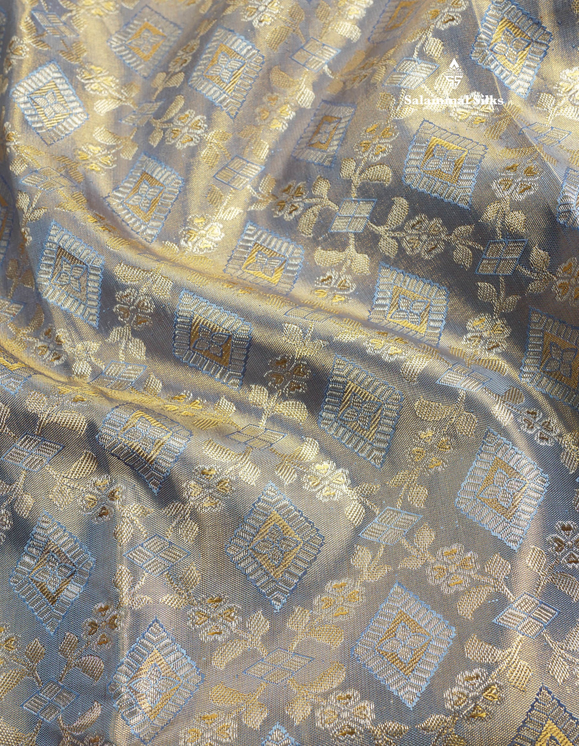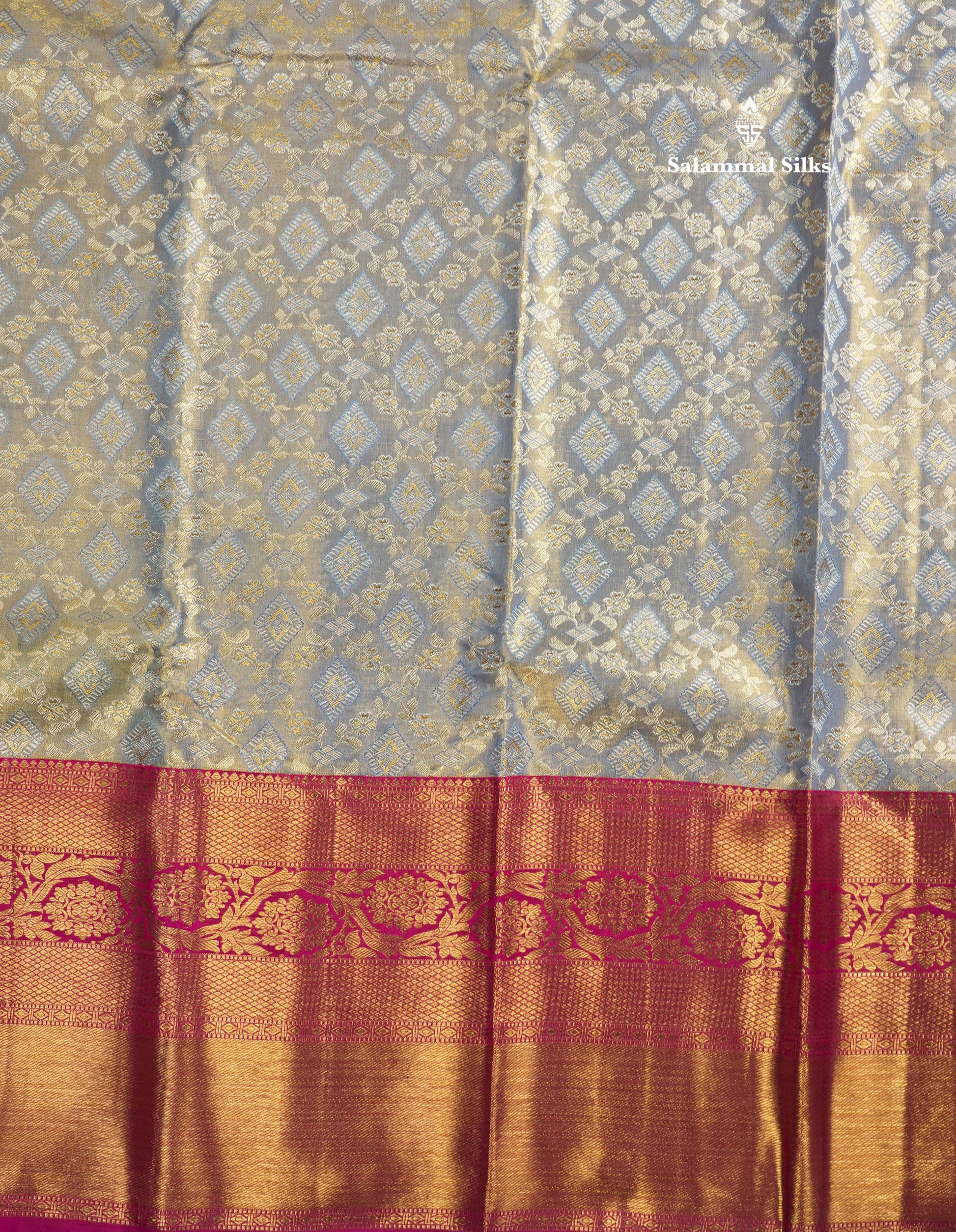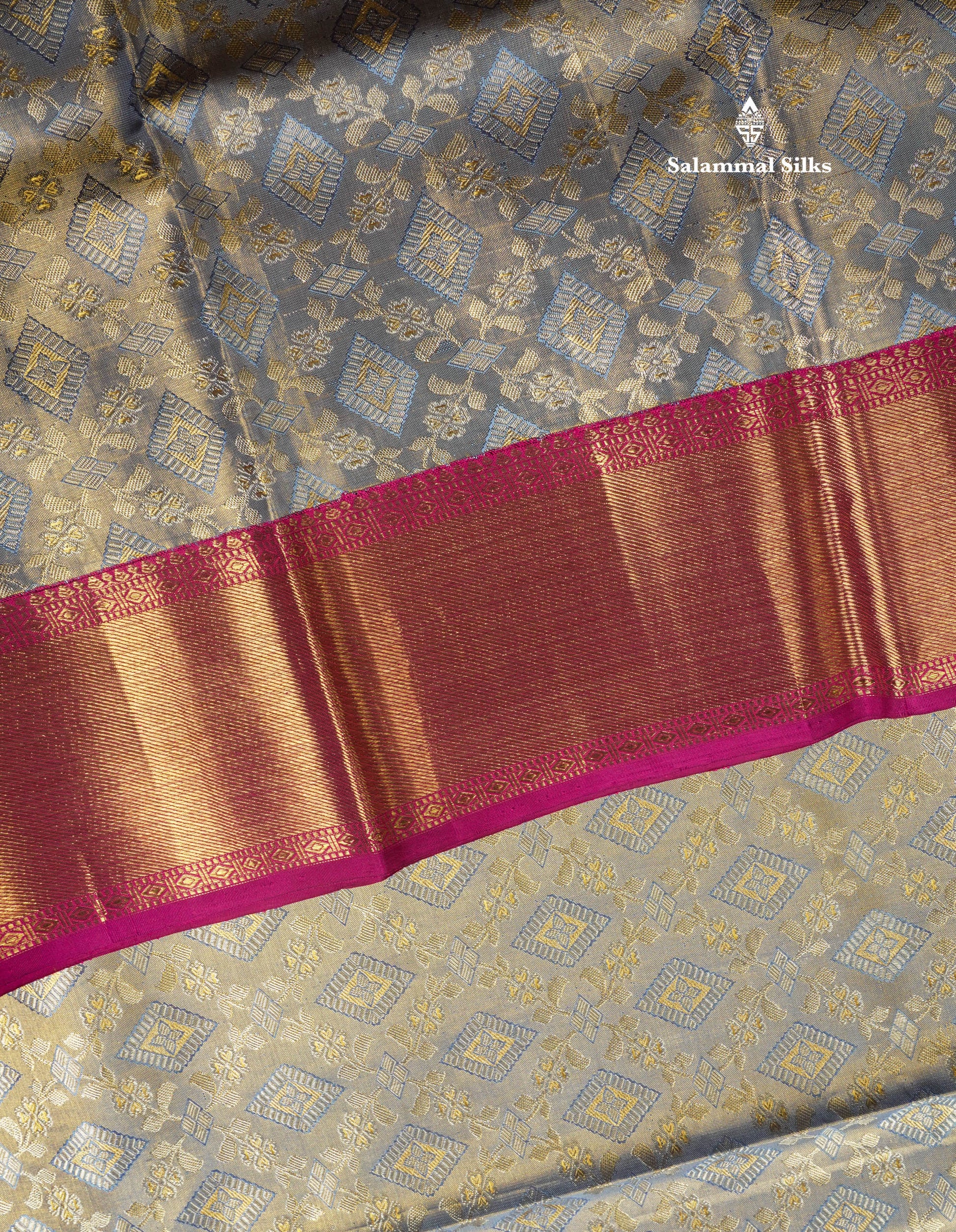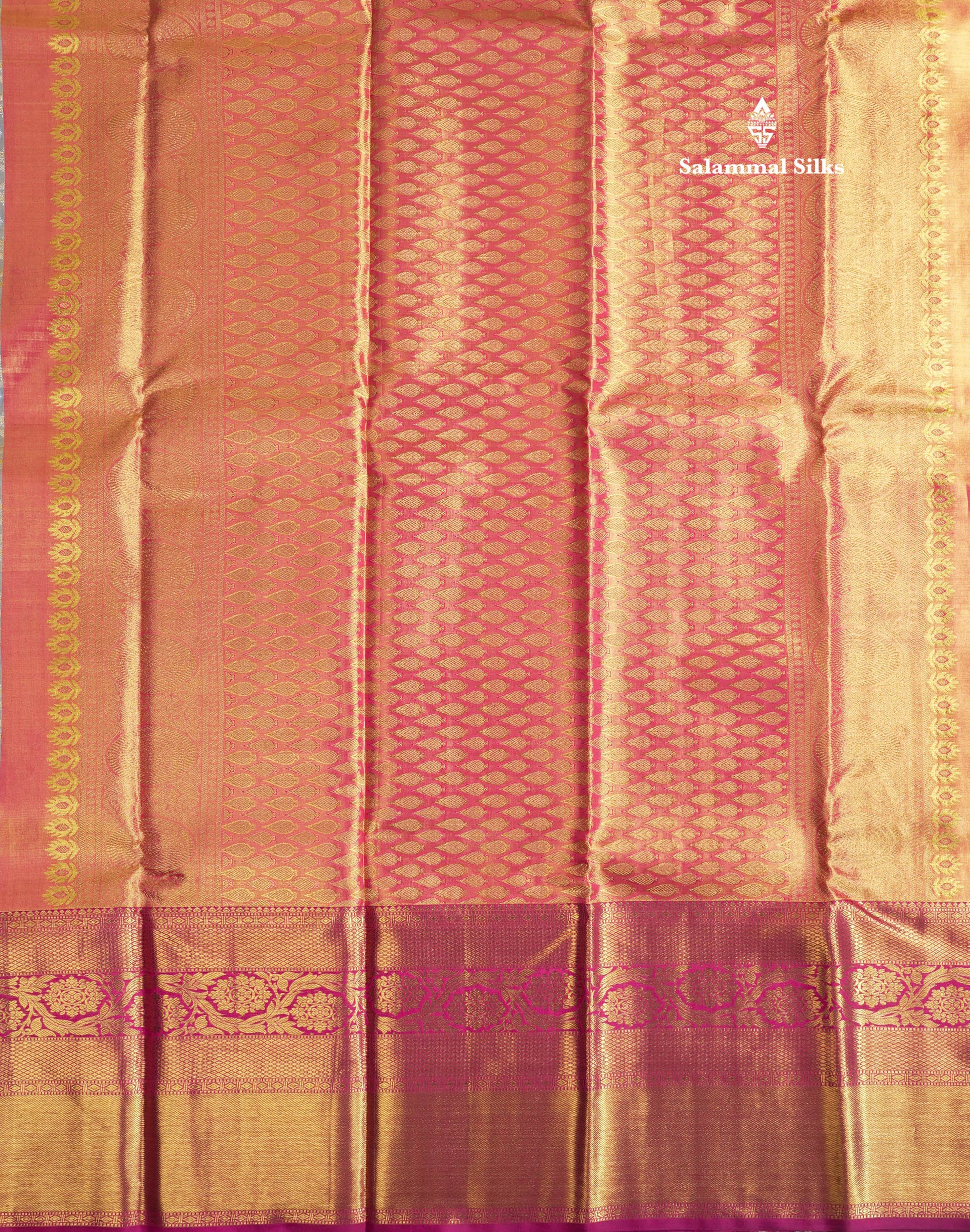 Salammal is known for its handloom sarees. In some sarees, there is cross-weaving between the body and the pallu, which is a sign of pure handloom sarees. This can be seen in Kanchipuram embossed sarees.