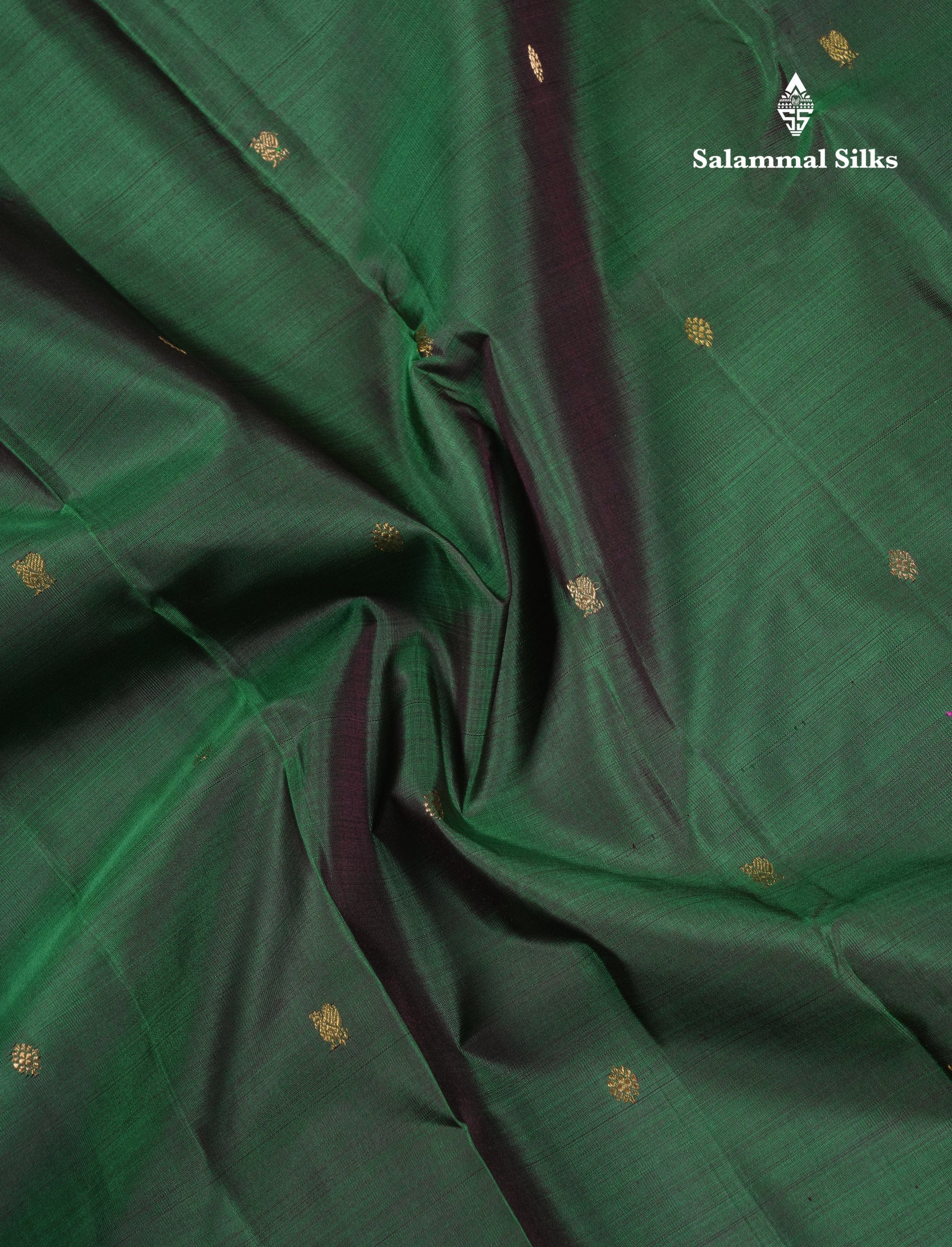 Salammal is known for its handloom sarees. In some sarees, there is cross-weaving between the body and the pallu, which is a sign of pure handloom sarees. This can be seen in Kanchipuram embossed sarees.