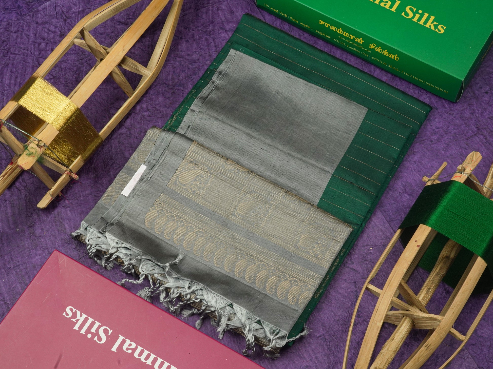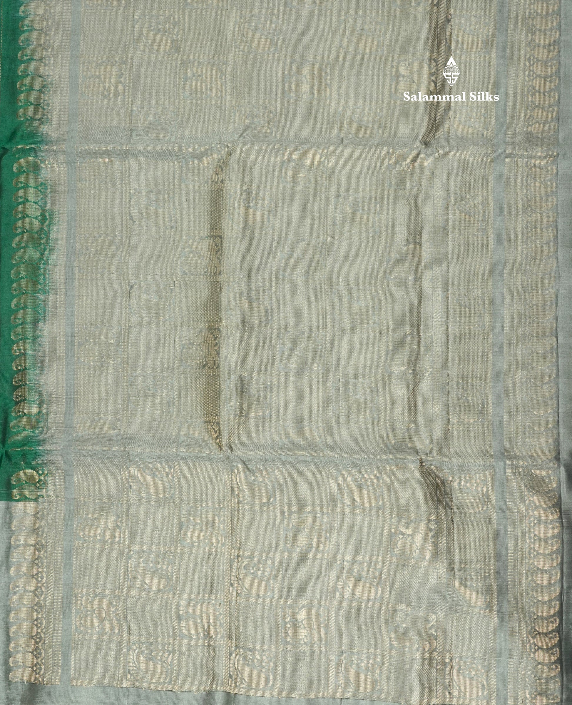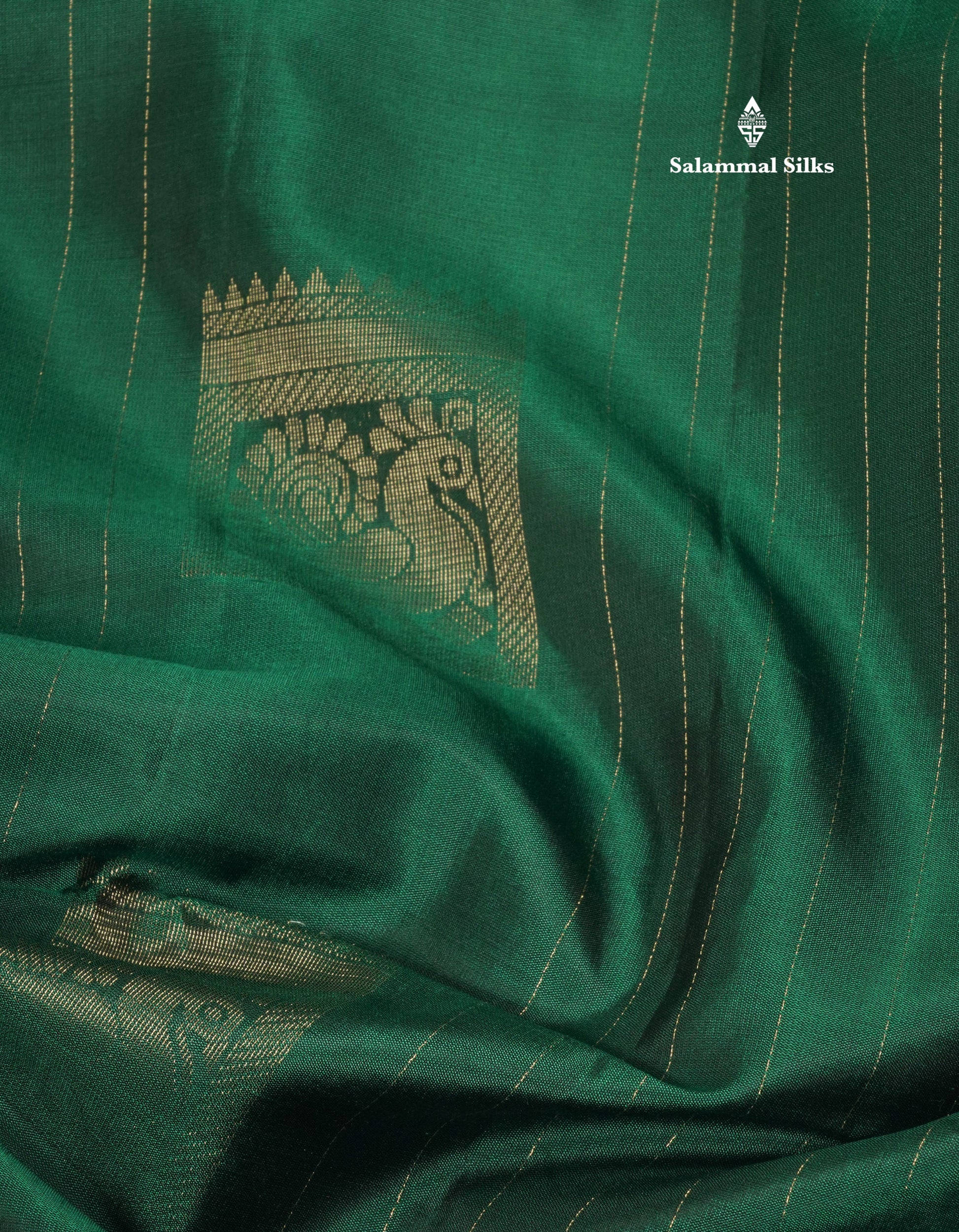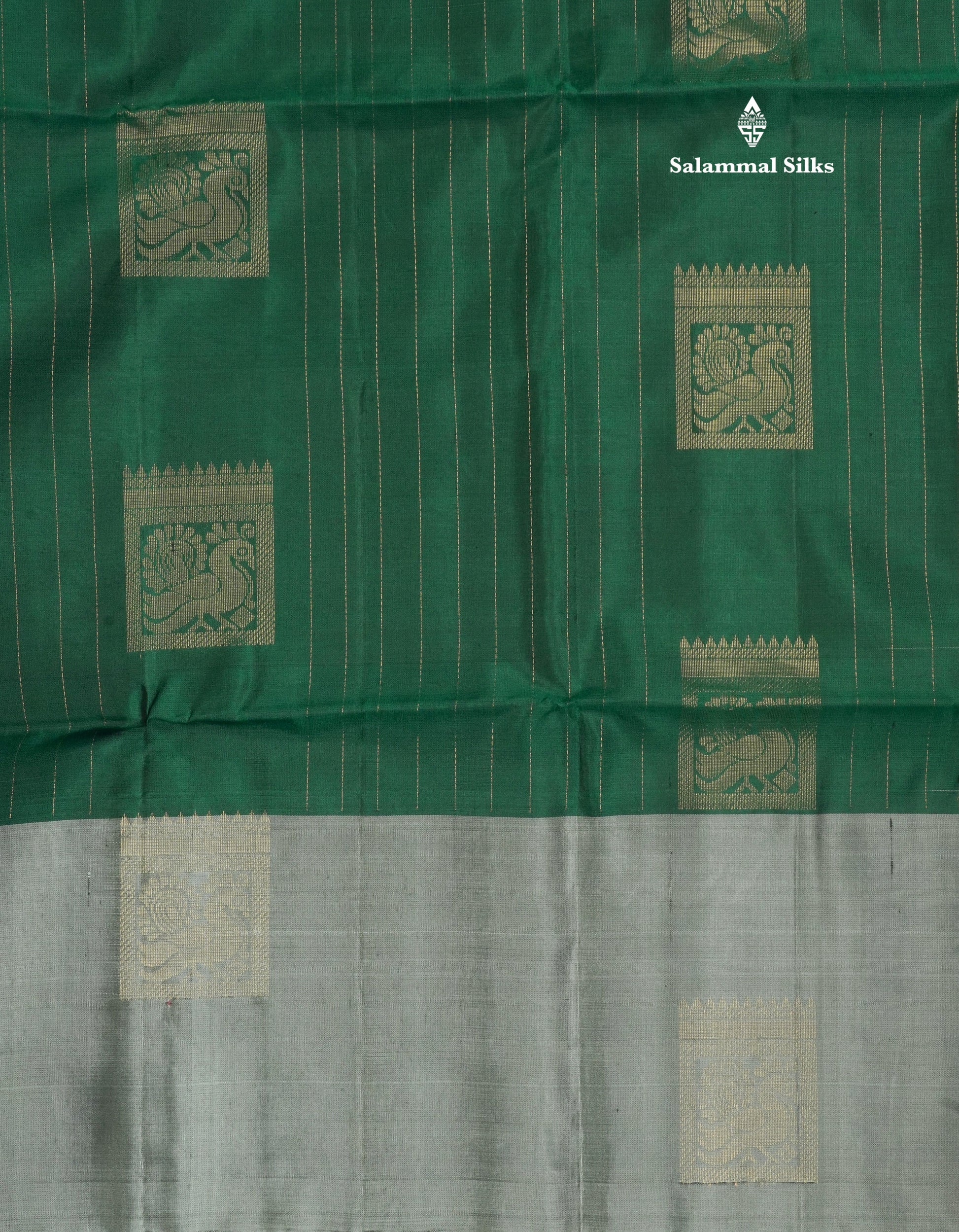 Beautiful Bottle Green Pure Kanjivaram Soft Silk Saree With Contrast Grey Border