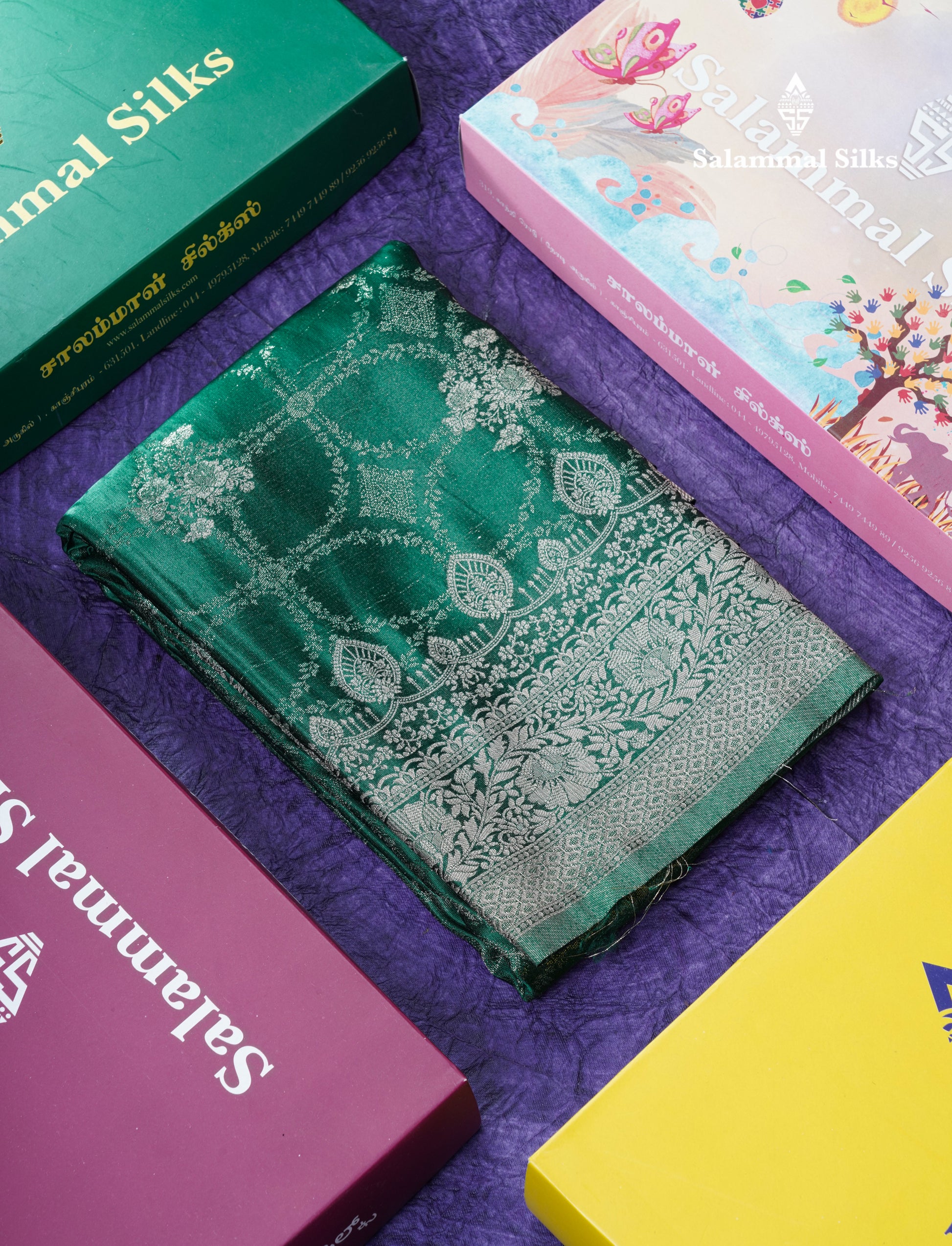 Salammal is known for its handloom sarees. In some sarees, there is cross-weaving between the body and the pallu, which is a sign of pure handloom sarees. This can be seen in Kanchipuram embossed sarees.