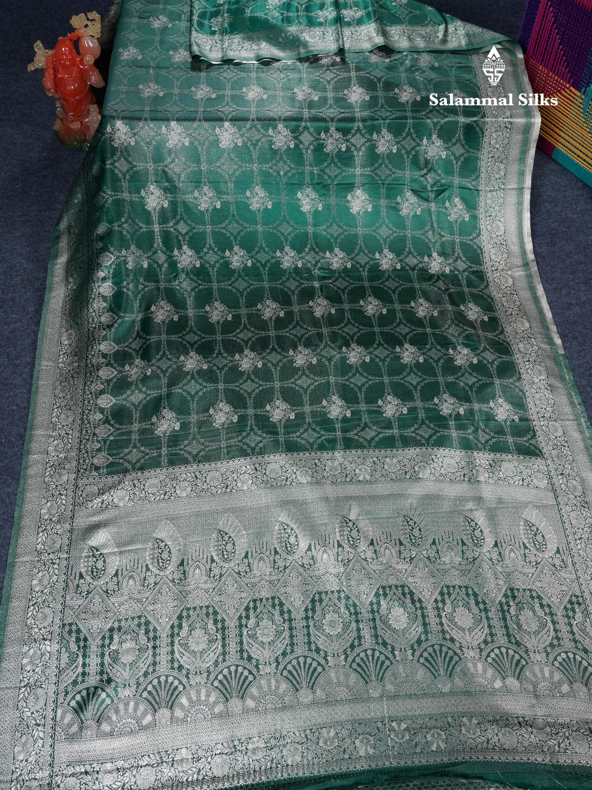 Beautiful Bottle Green Russian Silk Saree With Fancy Self Border