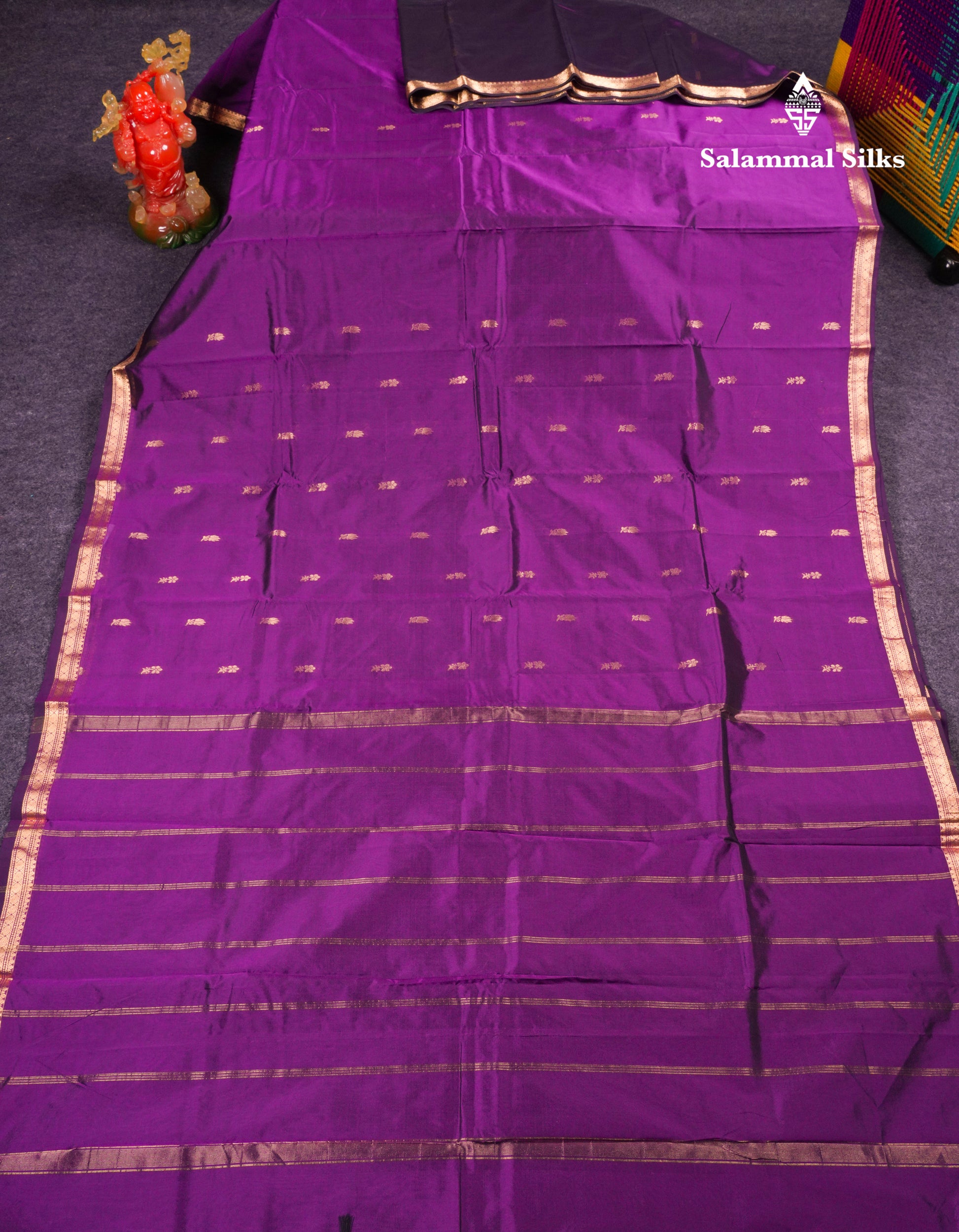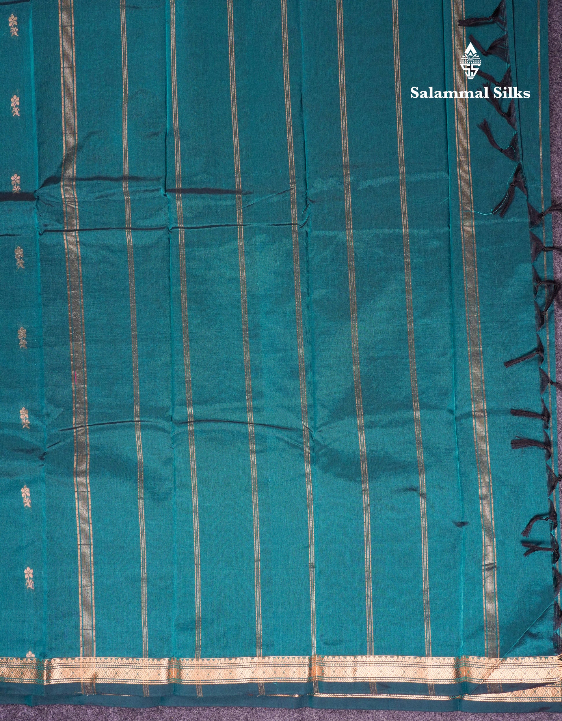 Salammal is known for its handloom sarees. In some sarees, there is cross-weaving between the body and the pallu, which is a sign of pure handloom sarees. This can be seen in Kanchipuram embossed sarees.