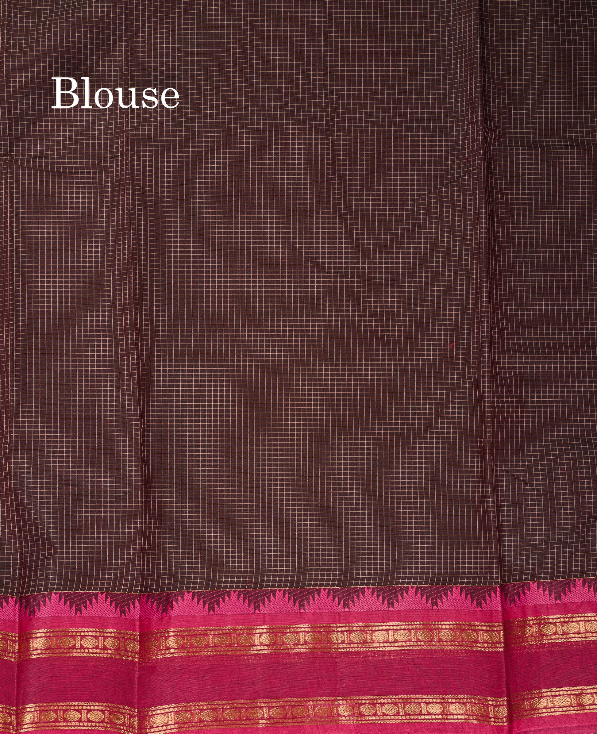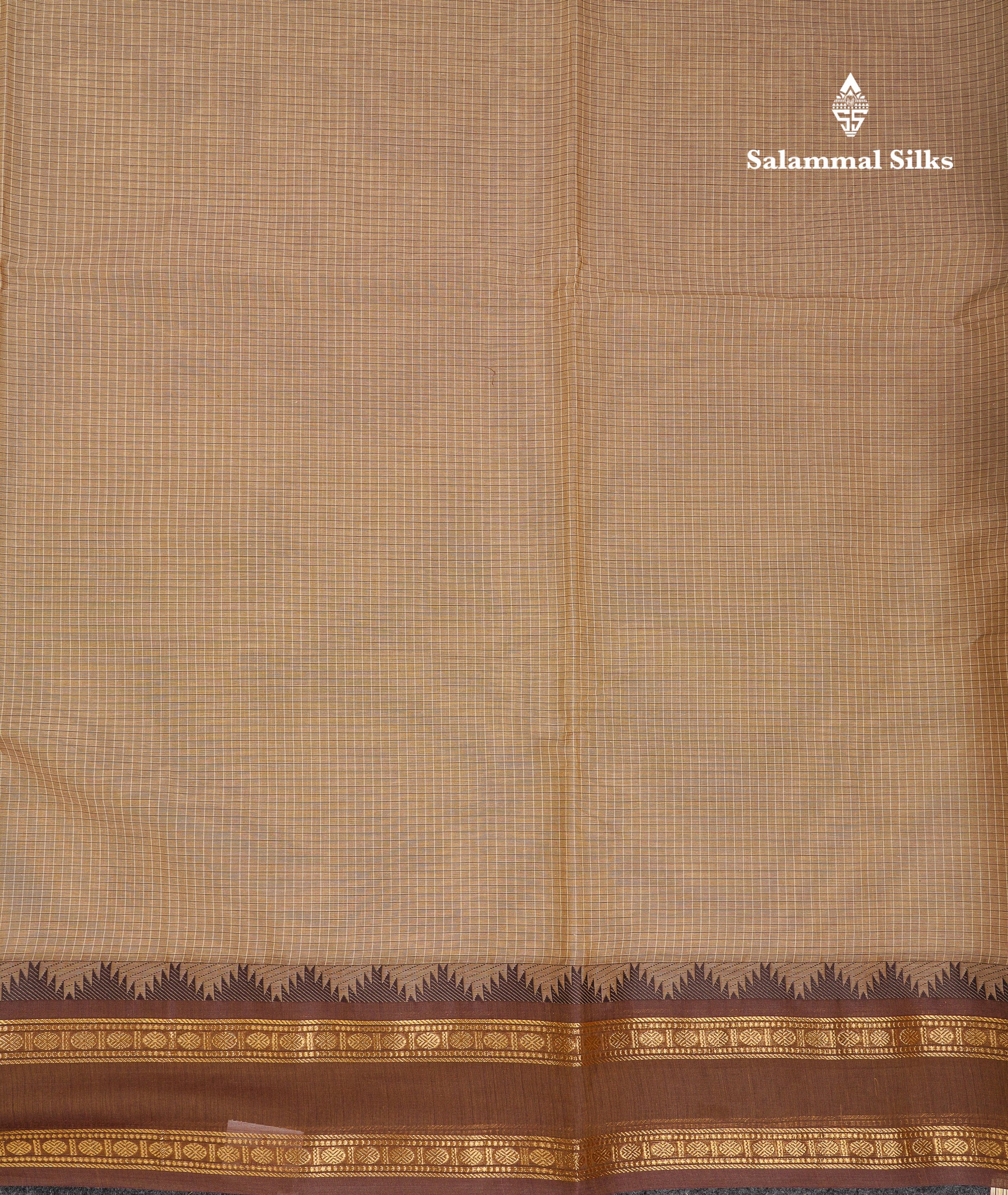 Beautiful Cream Sandal Small Checks Pure Cotton Saree With Contrast Brown Traditional Rettapet & Temple Border