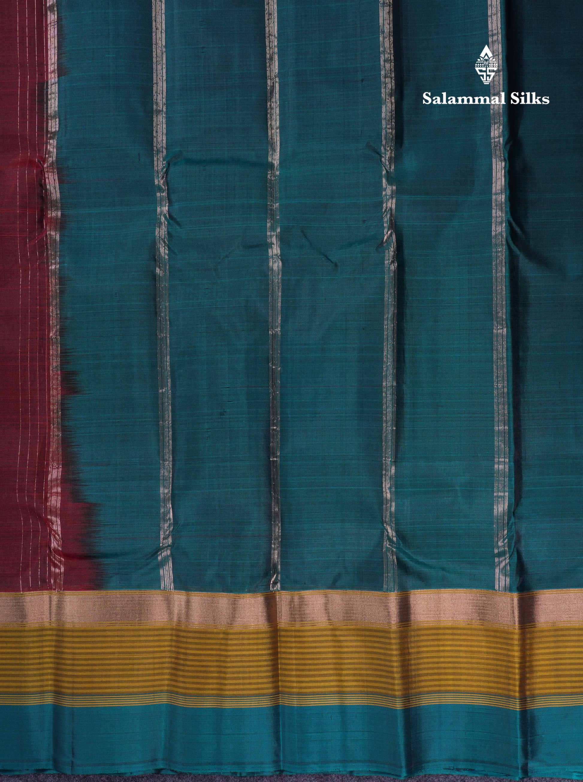 Salammal is known for its handloom sarees. In some sarees, there is cross-weaving between the body and the pallu, which is a sign of pure handloom sarees. This can be seen in Kanchipuram embossed sarees.