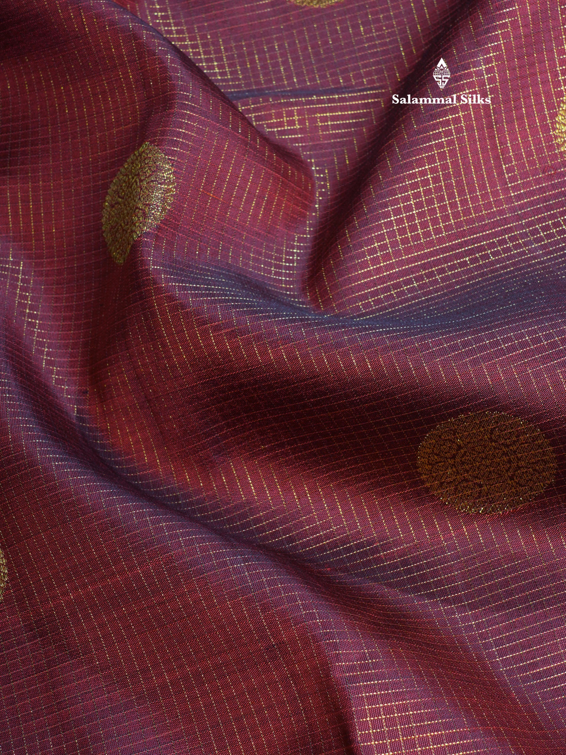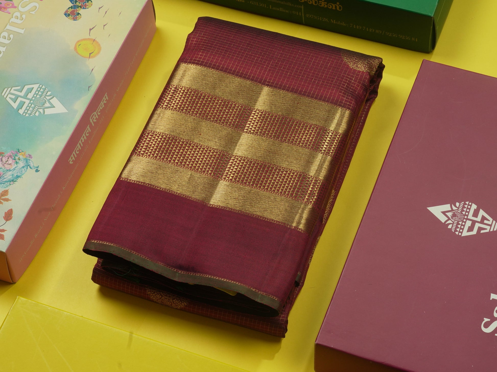 Pure Zari Beautiful Dark Maroon Tiny Zari Checks Pure Kanjivaram Silk Saree With Self Border