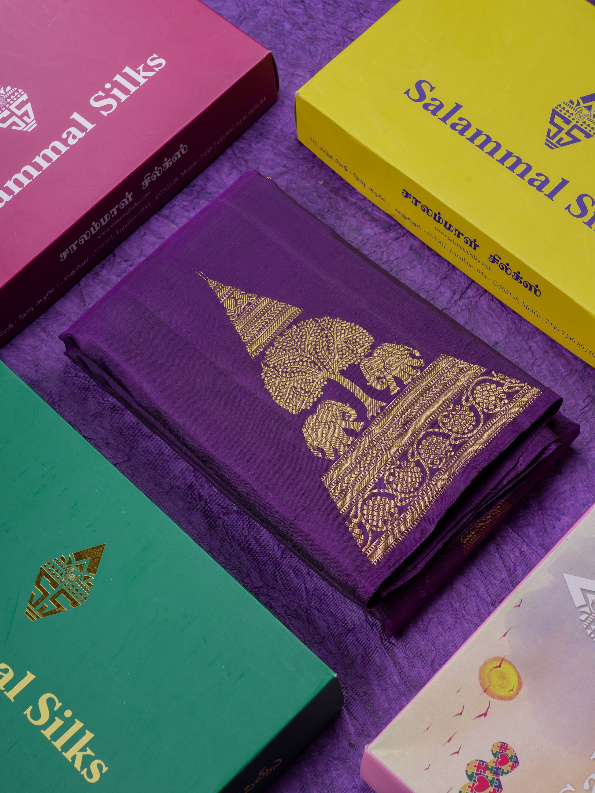 Salammal is known for its handloom sarees. In some sarees, there is cross-weaving between the body and the pallu, which is a sign of pure handloom sarees. This can be seen in Kanchipuram embossed sarees.