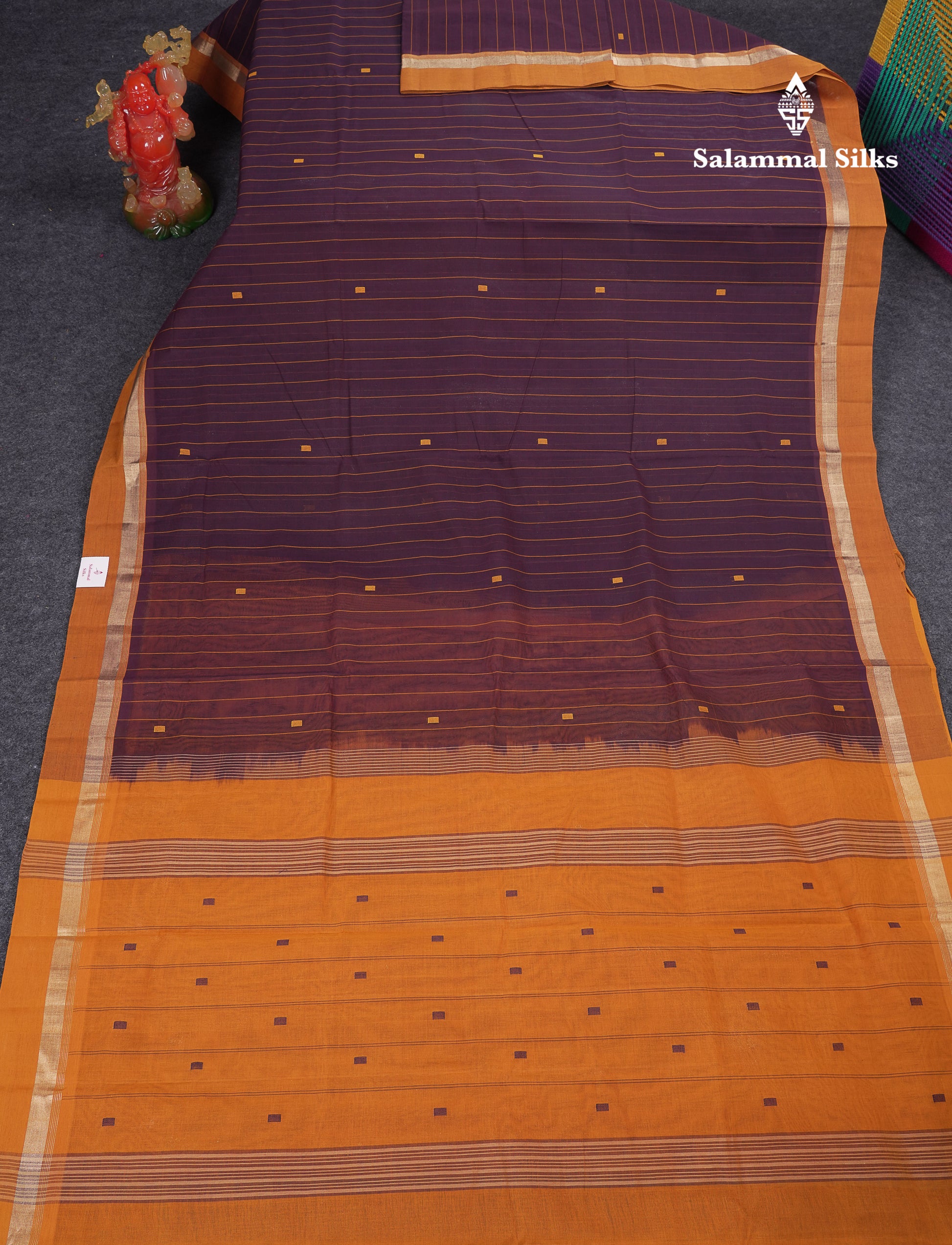 Salammal is known for its handloom sarees. In some sarees, there is cross-weaving between the body and the pallu, which is a sign of pure handloom sarees. This can be seen in Kanchipuram embossed sarees.