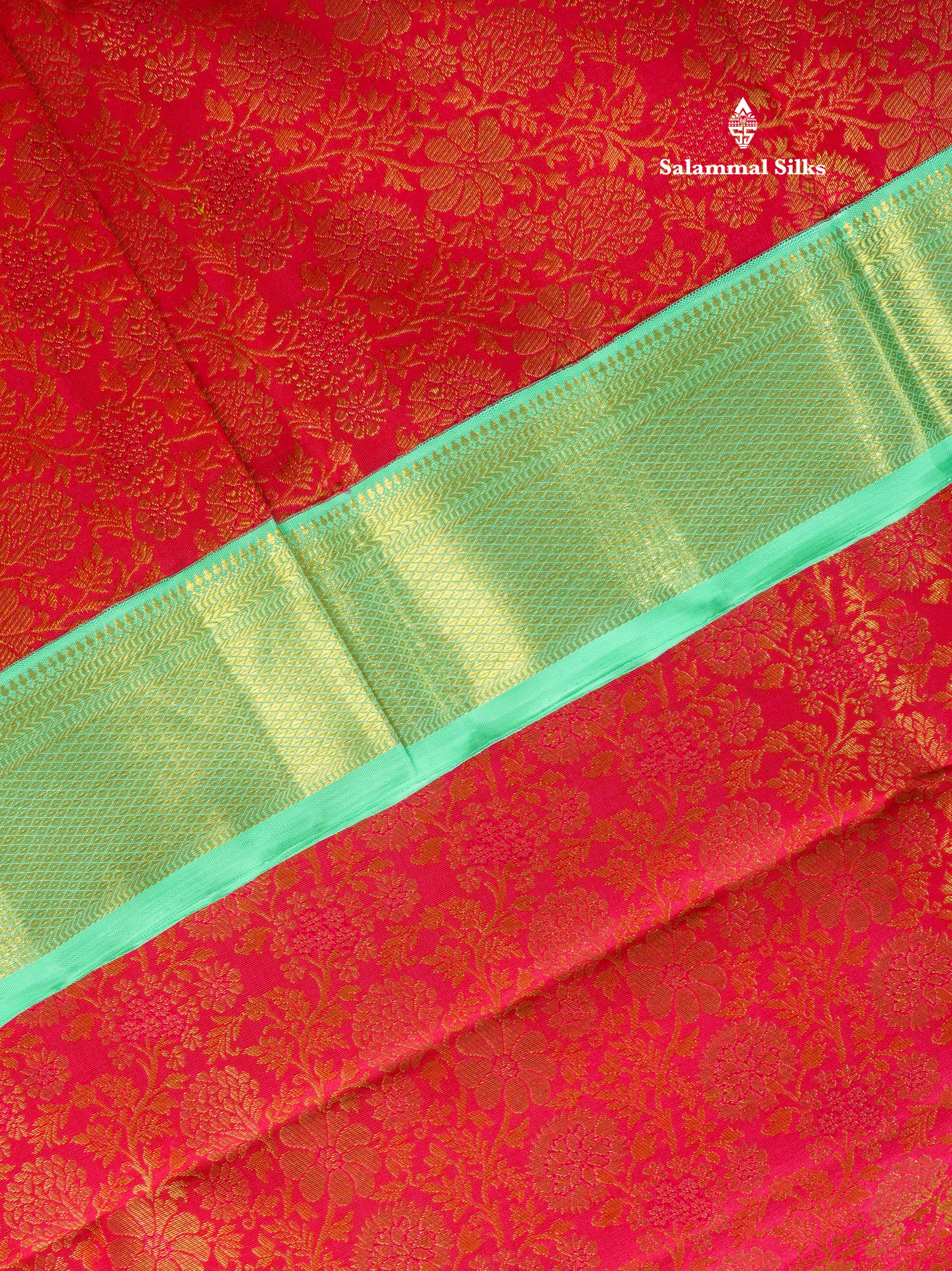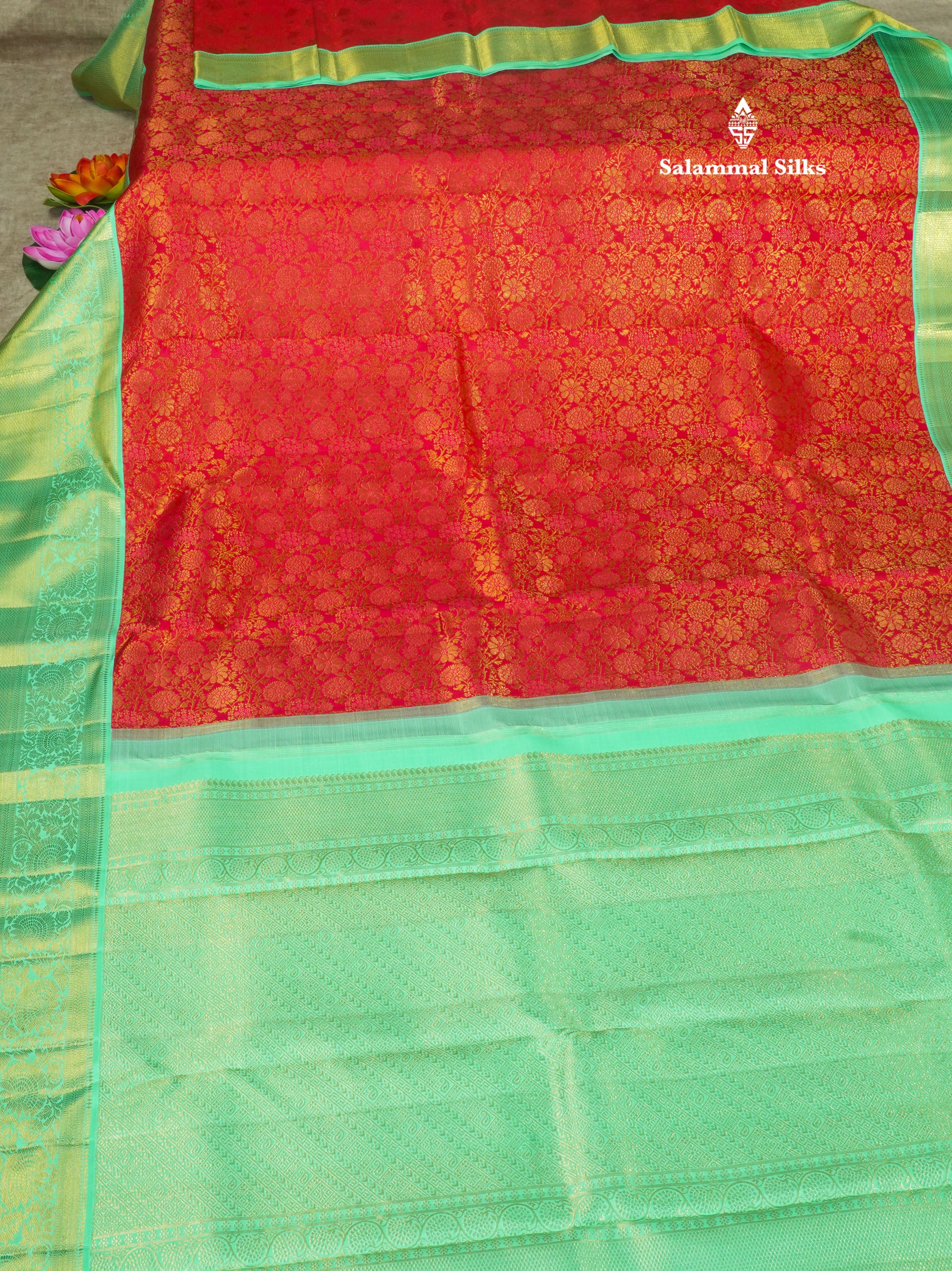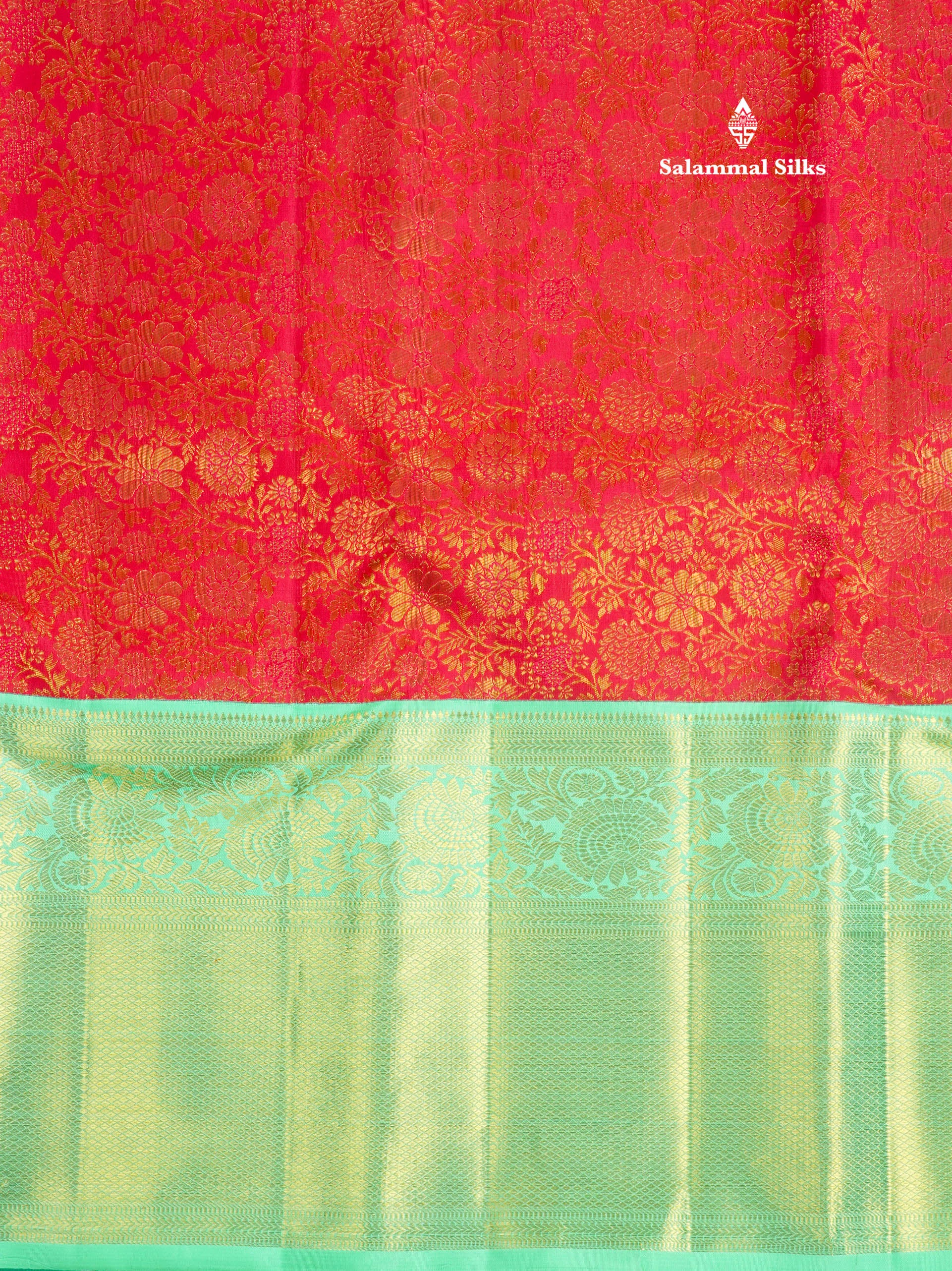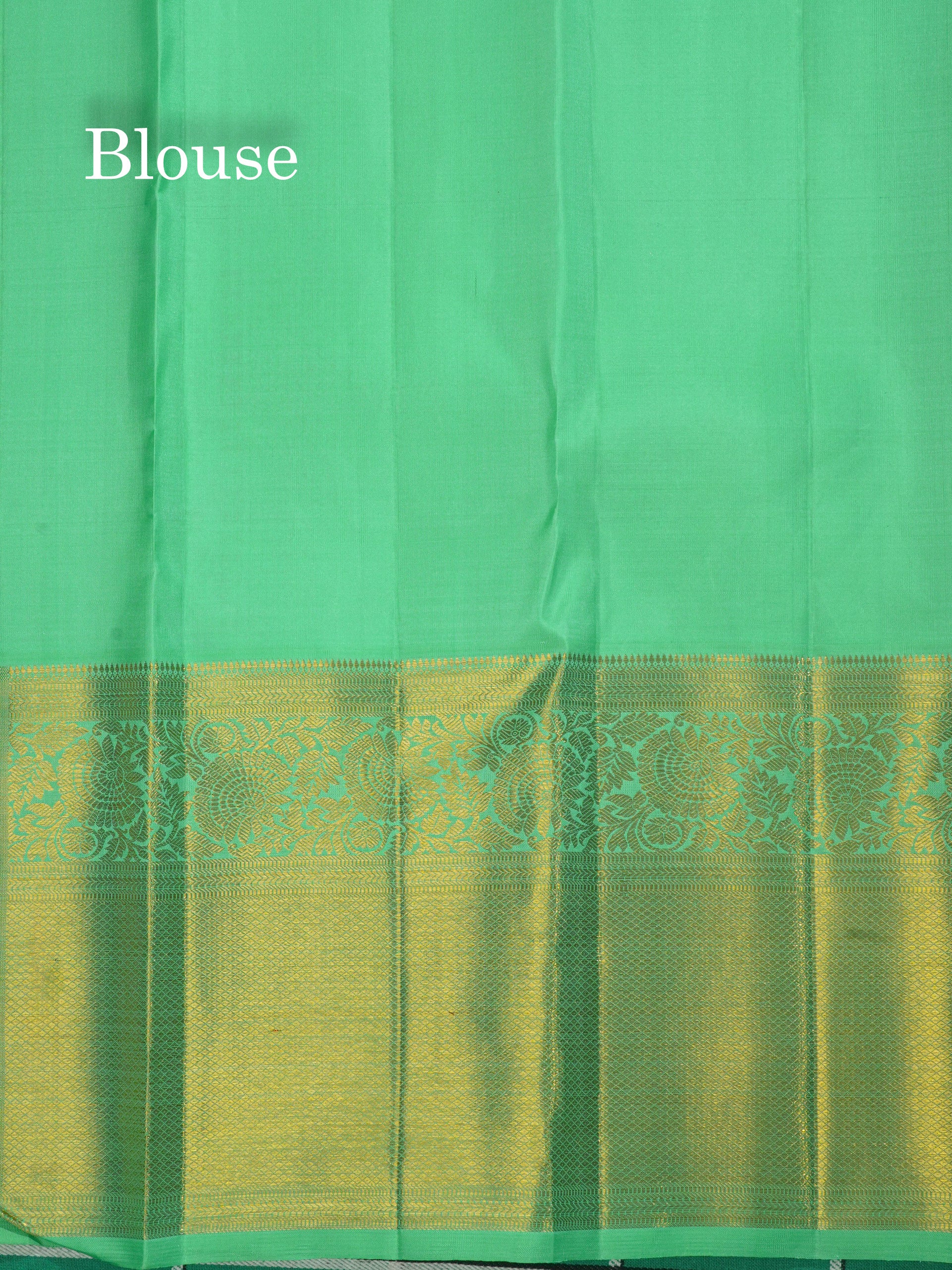 Beautiful Dual Tone Reddish Pink Pure Kanjivaram Silk Saree (2G) Zari With Contrast Rexona Green Border