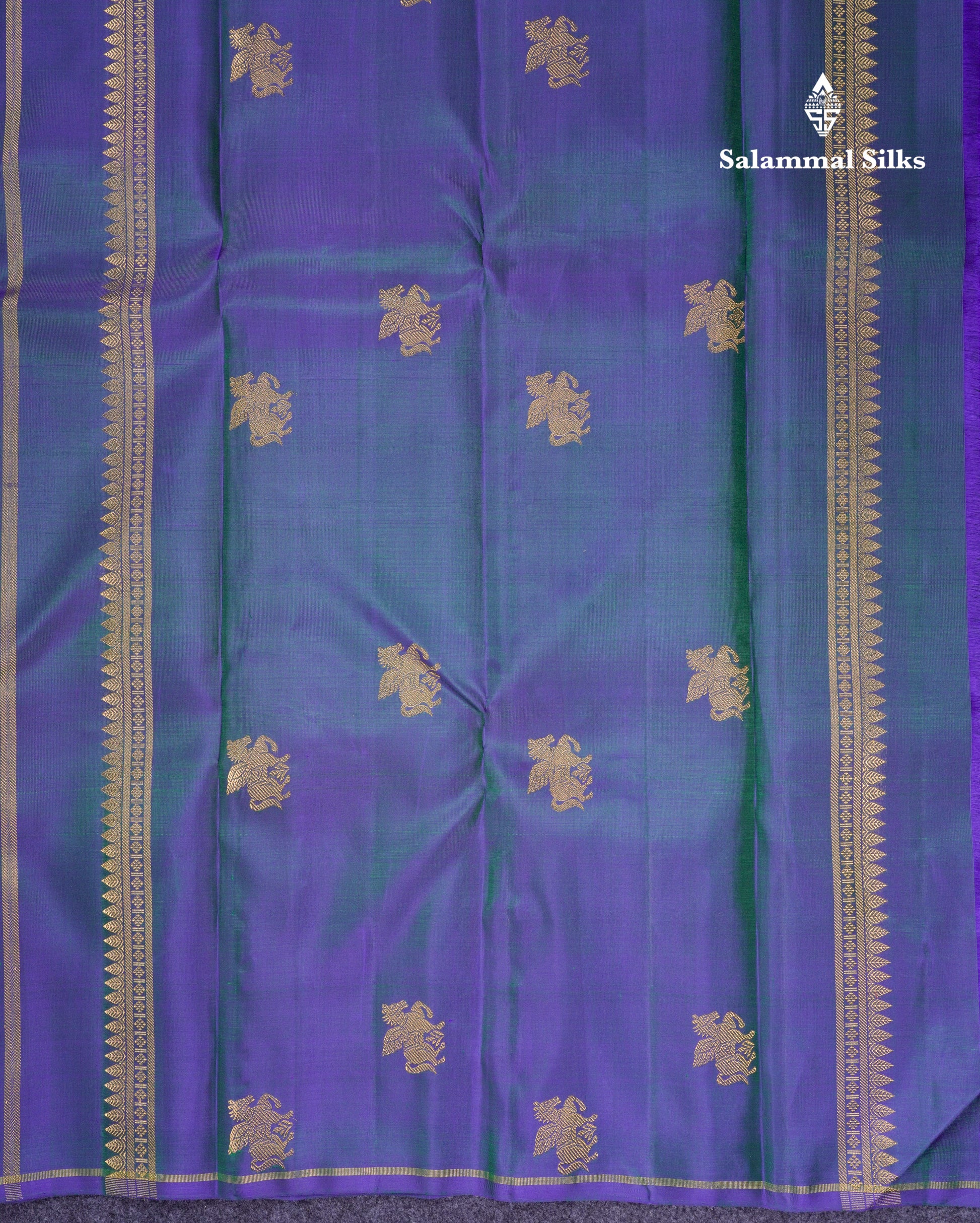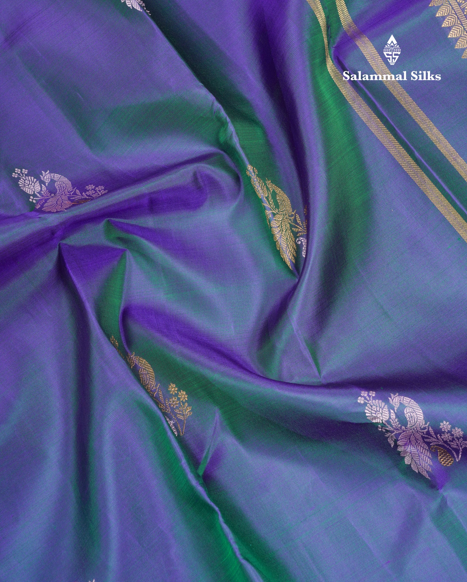 Beautiful Dual Tone Violet Zari & Thread Butta Pure Kanjivaram Silk Saree Pure Zari with Blouse
