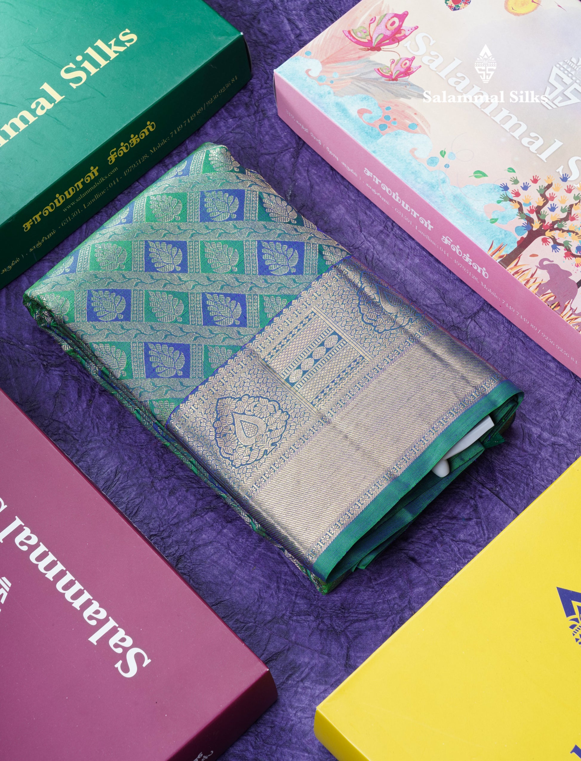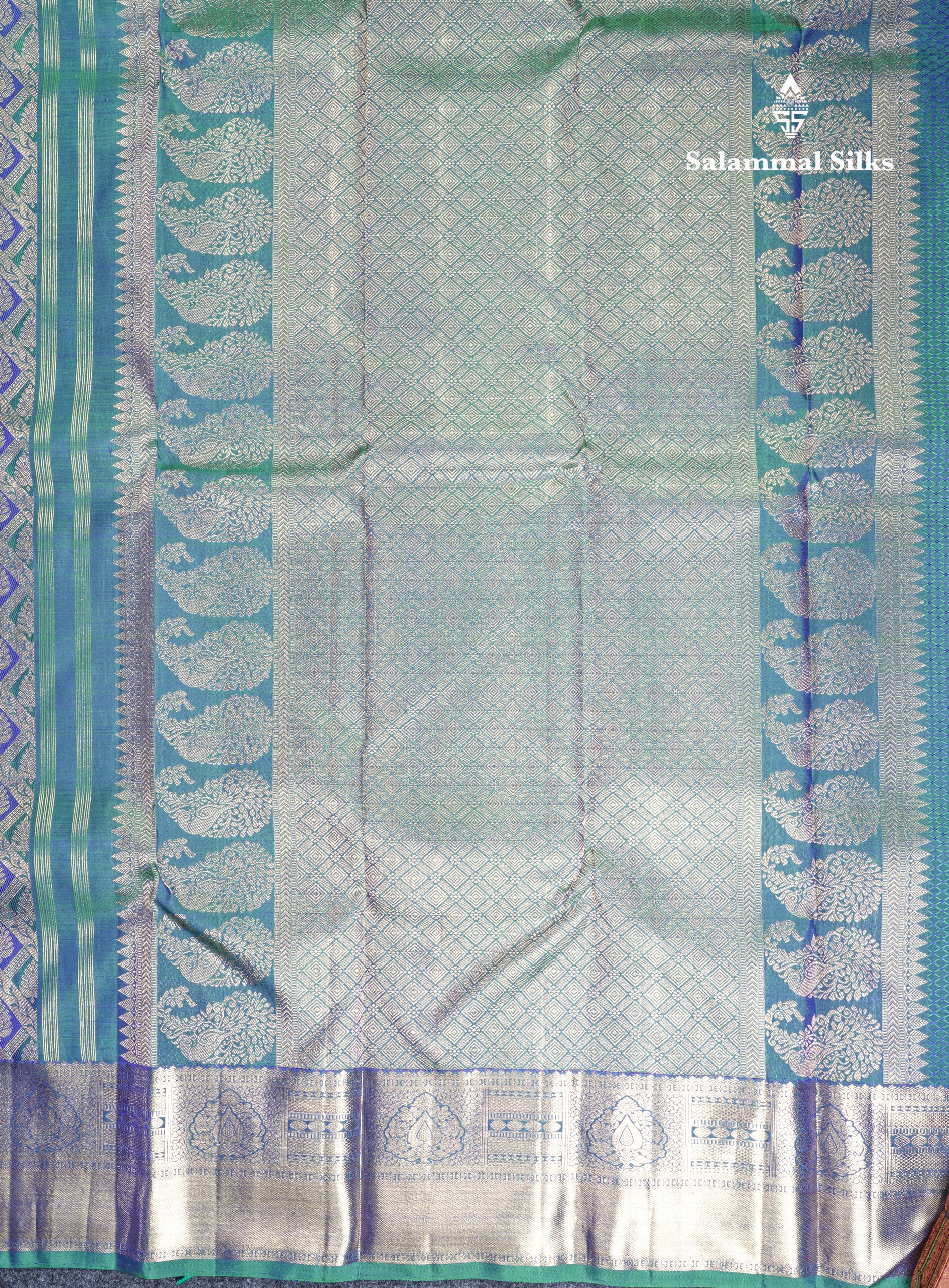 Beautiful Green And Peacock Blue Daimond Design Pure Kanjivaram Silk Saree Pure Zari with Blouse