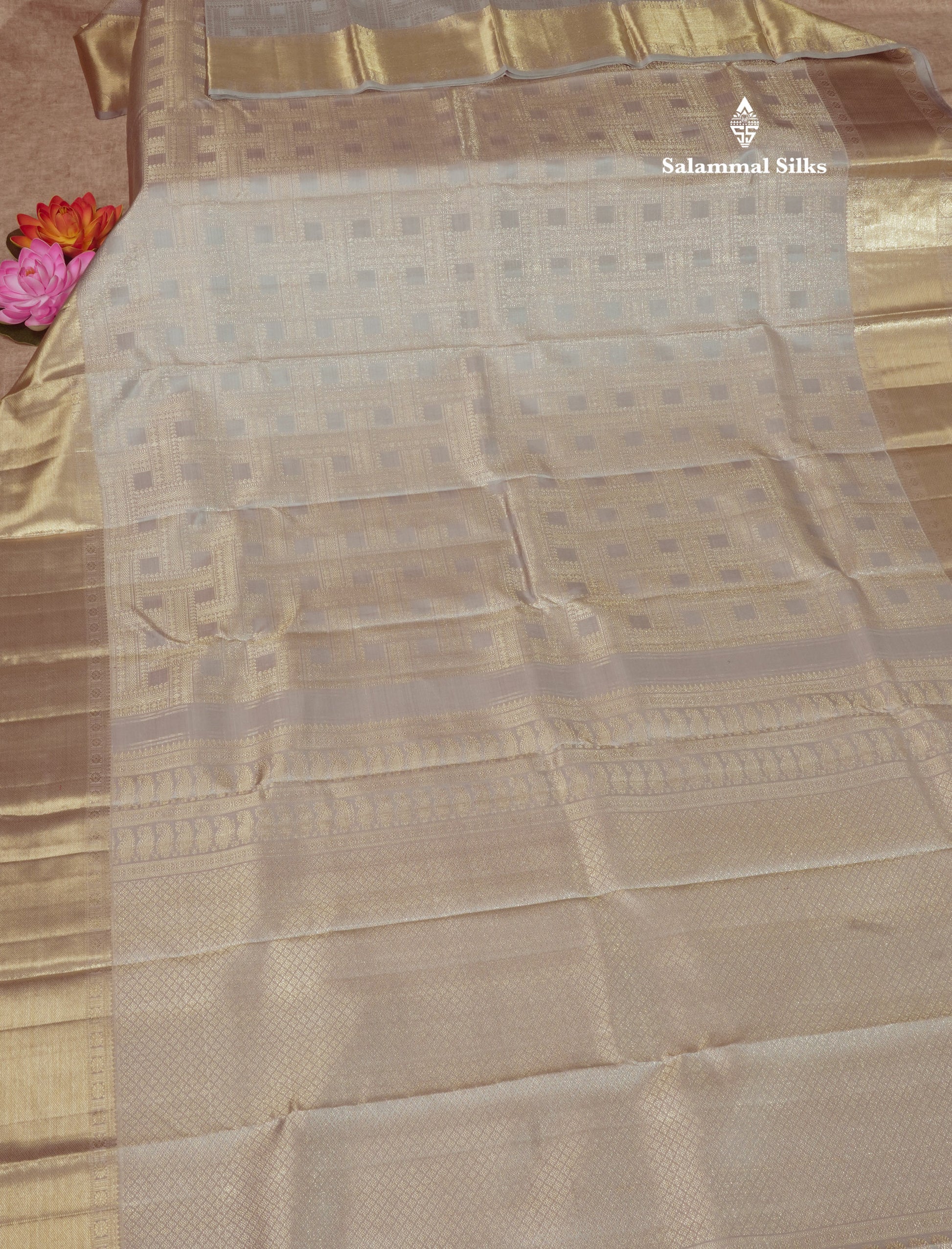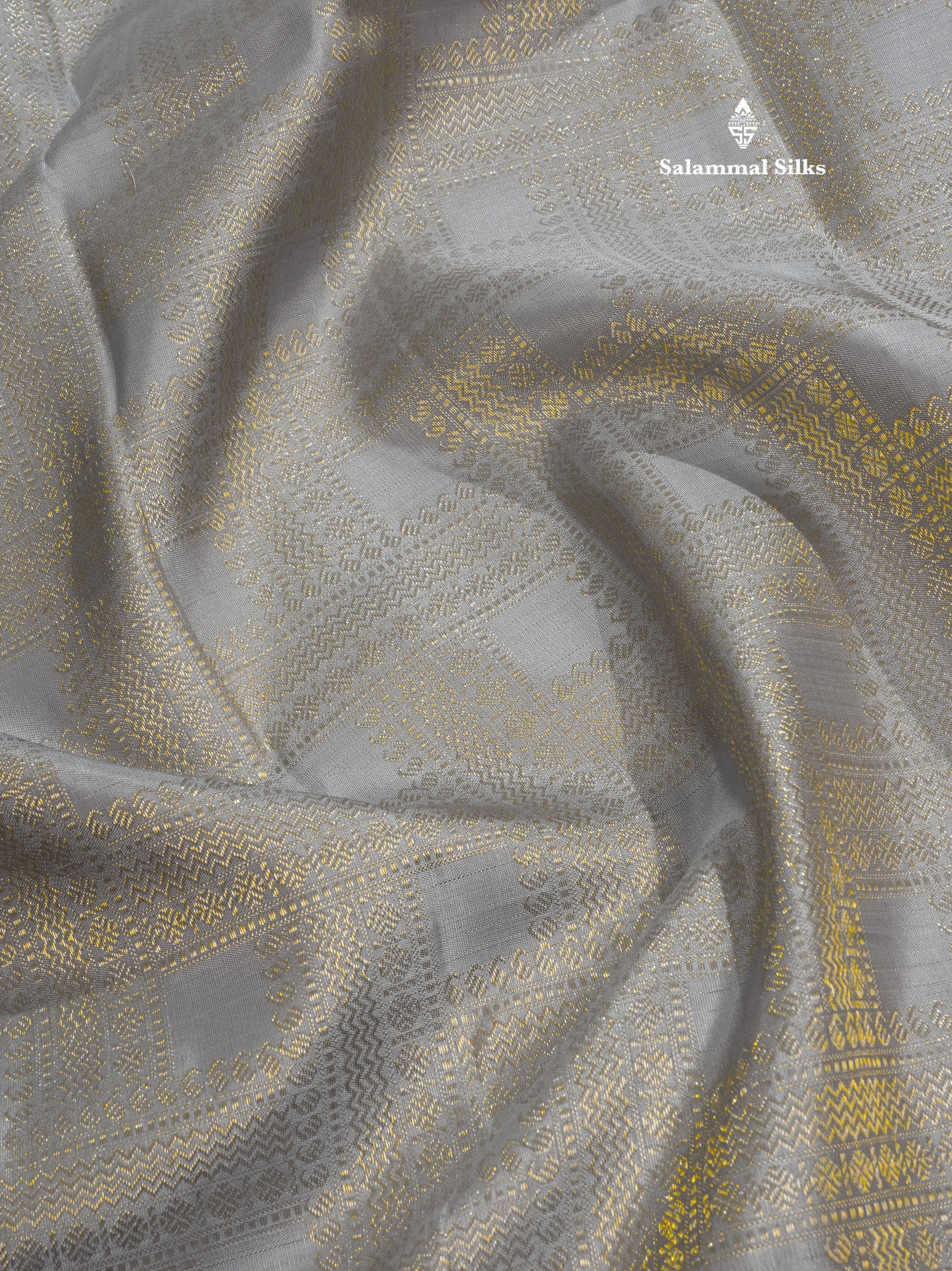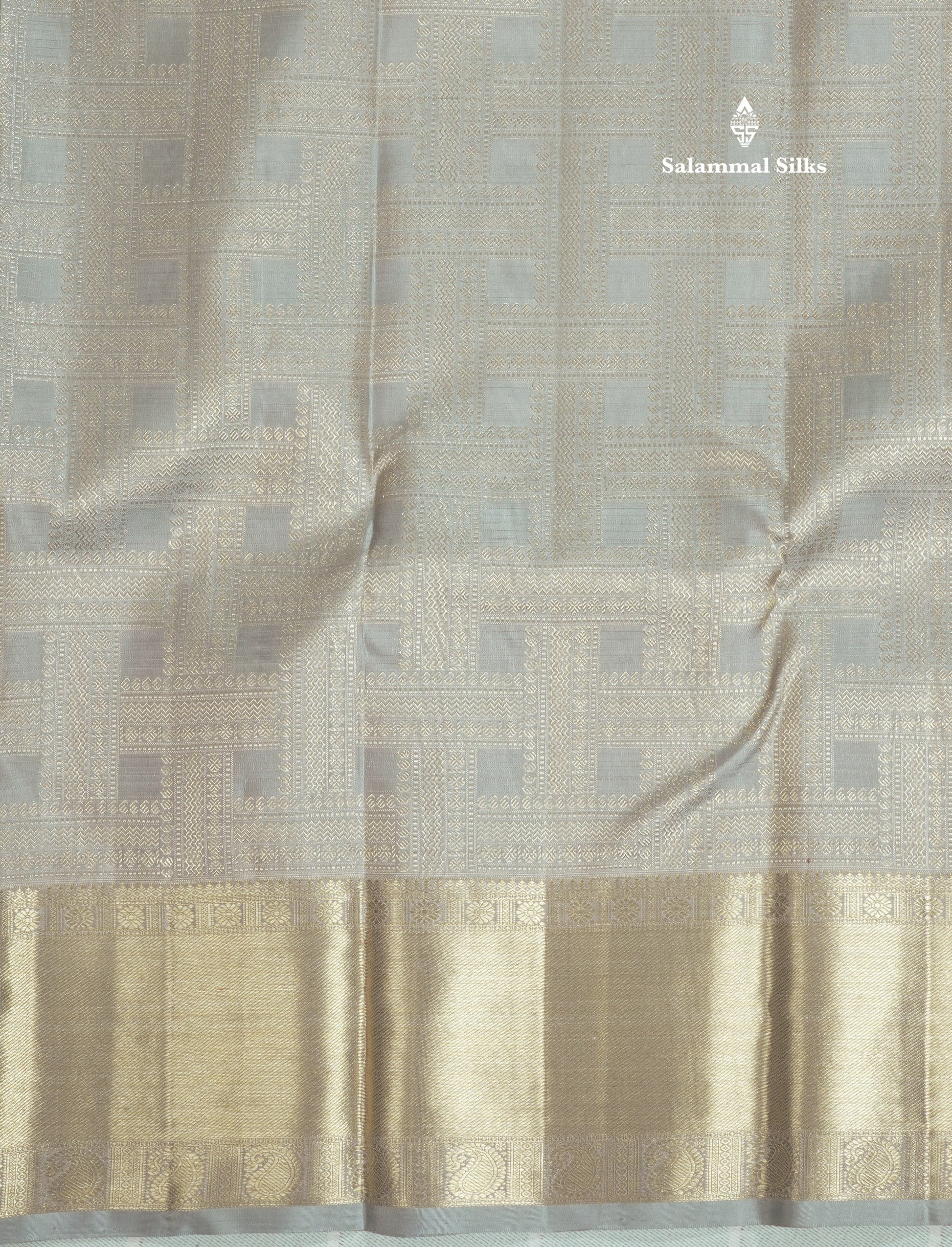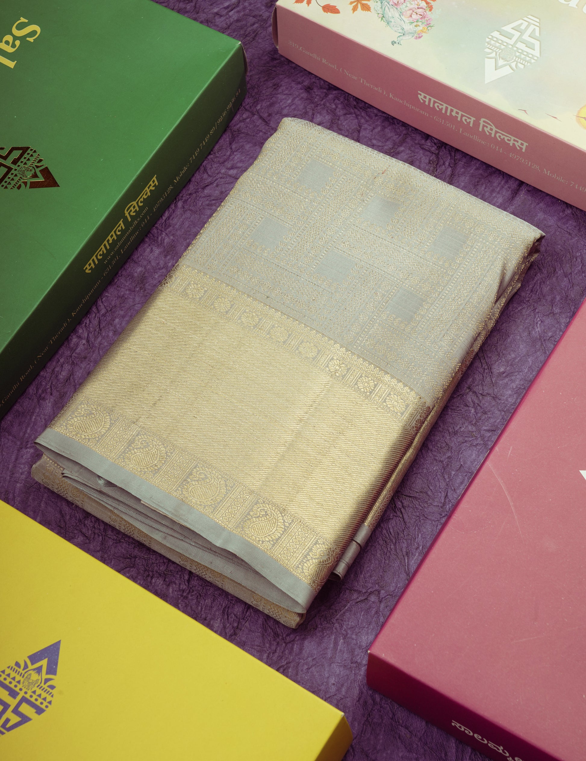 Beautiful Grey Pure Kanjivaram Silk Saree With Self Border