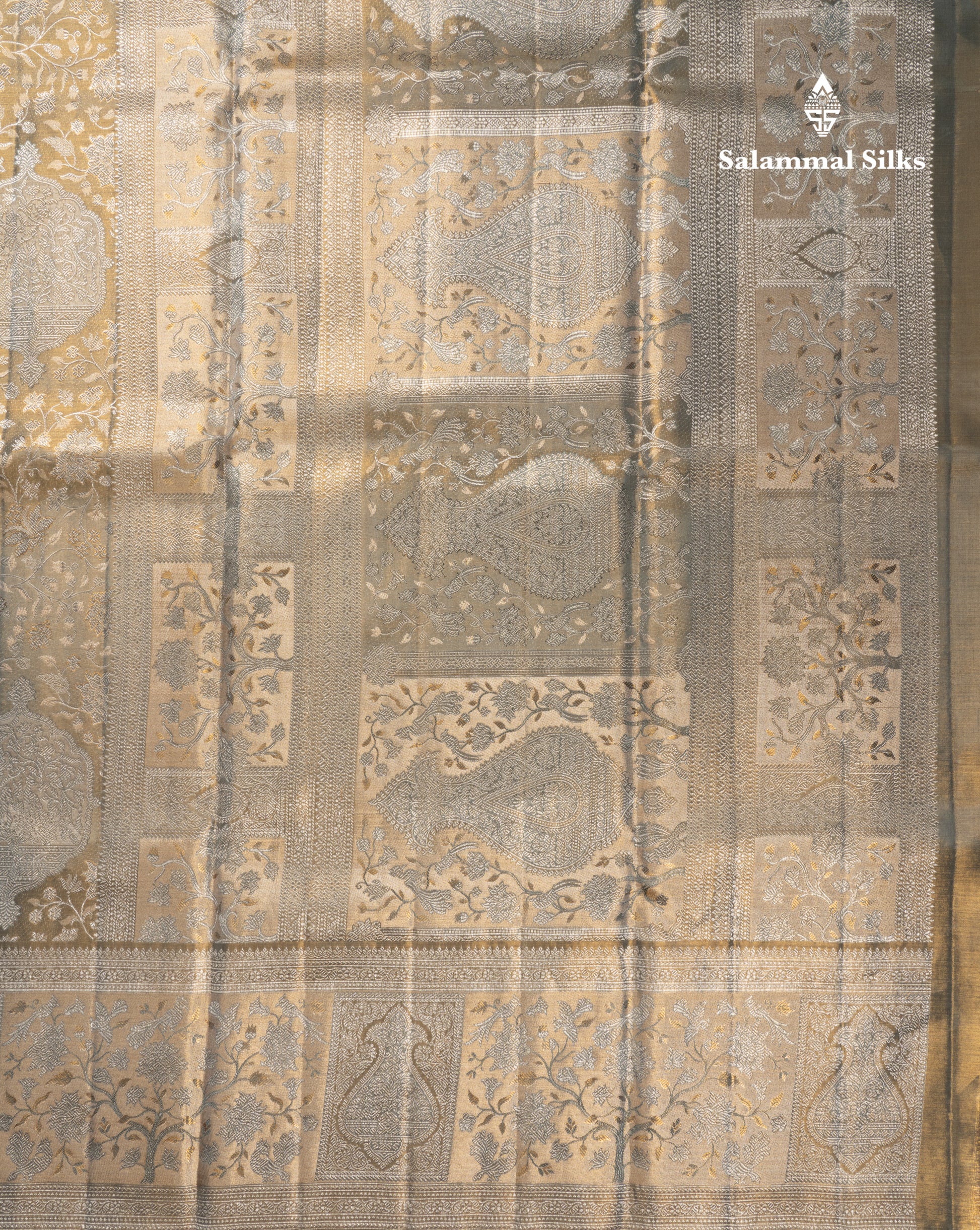 Salammal is known for its handloom sarees. In some sarees, there is cross-weaving between the body and the pallu, which is a sign of pure handloom sarees. This can be seen in Kanchipuram embossed sarees.