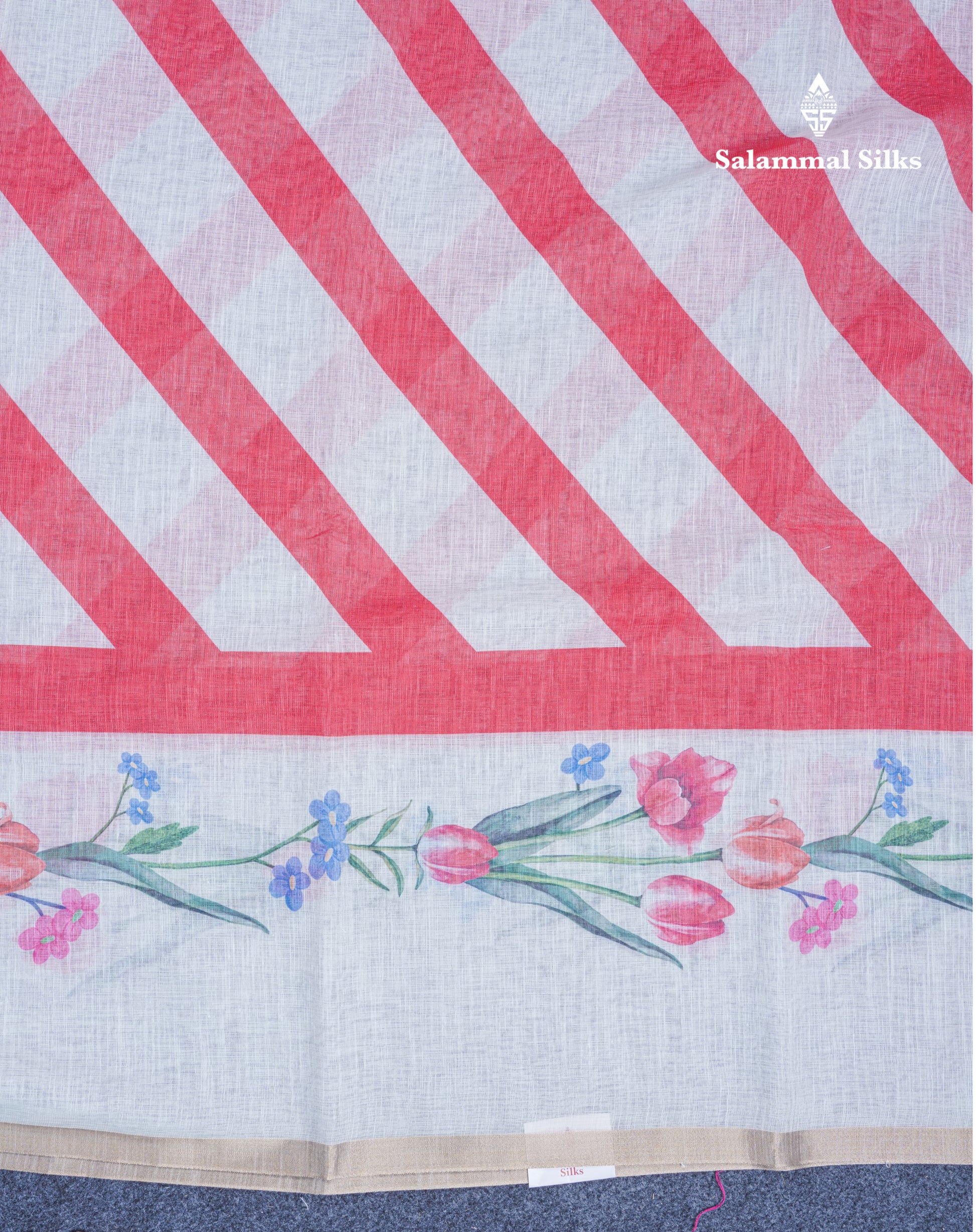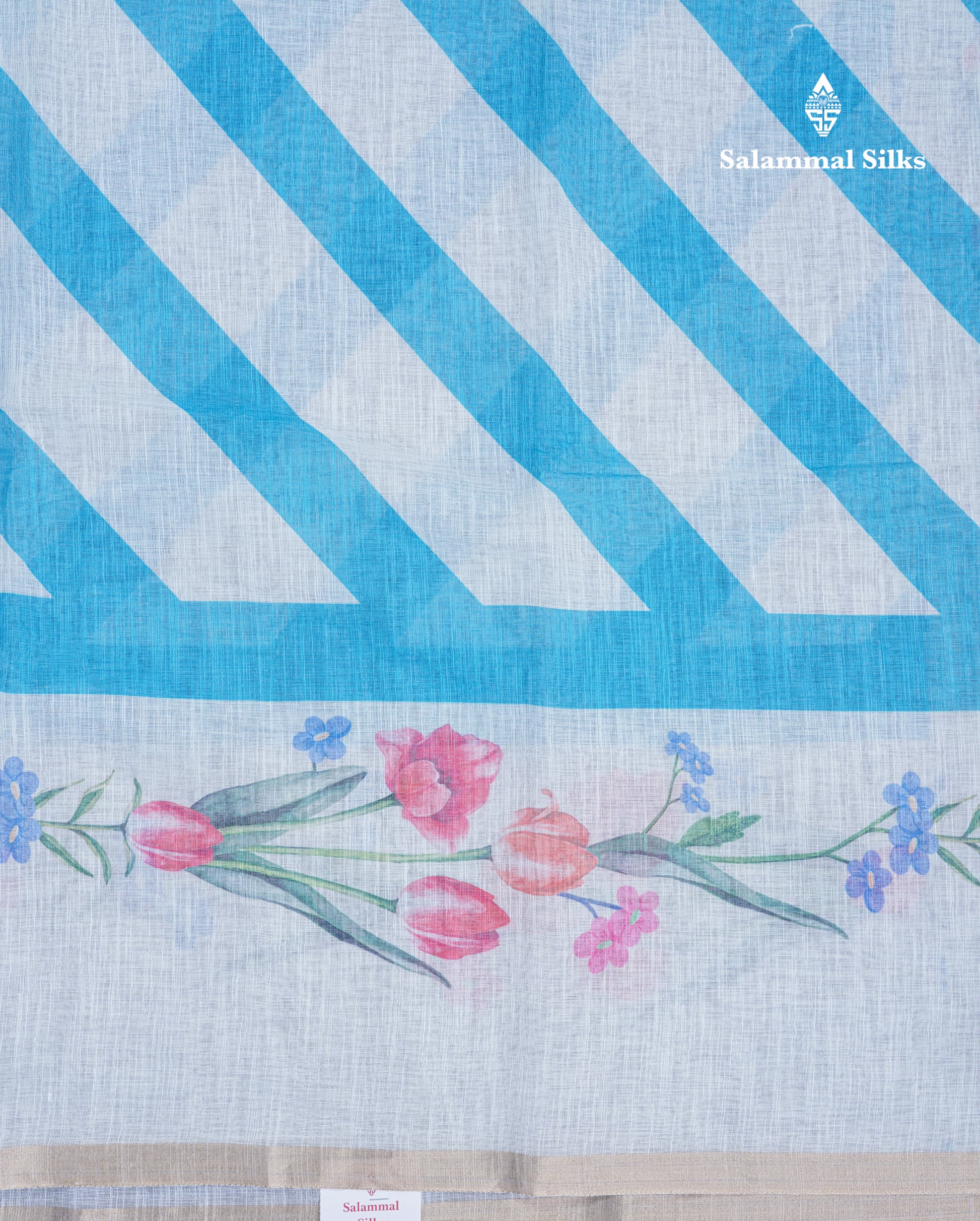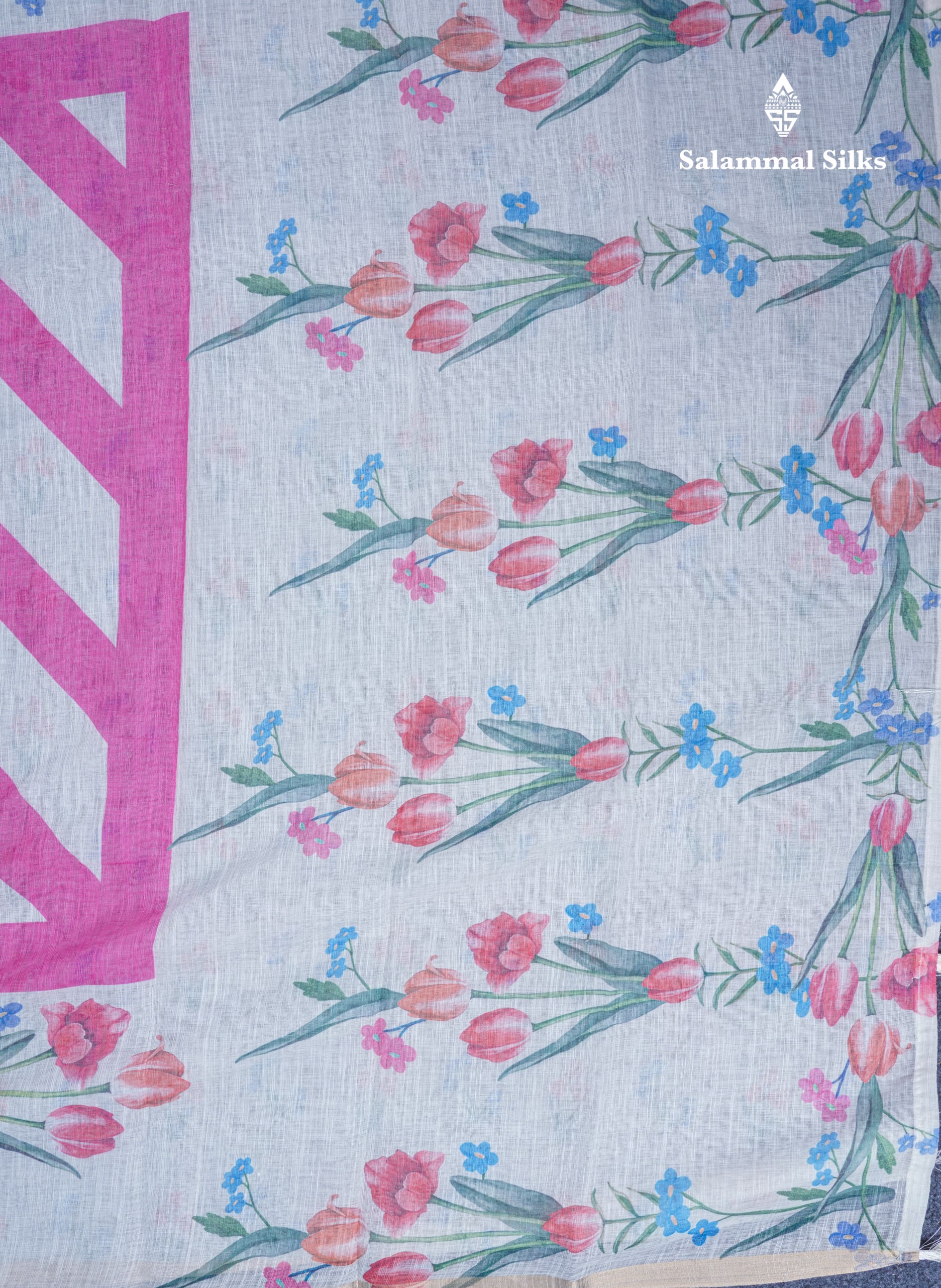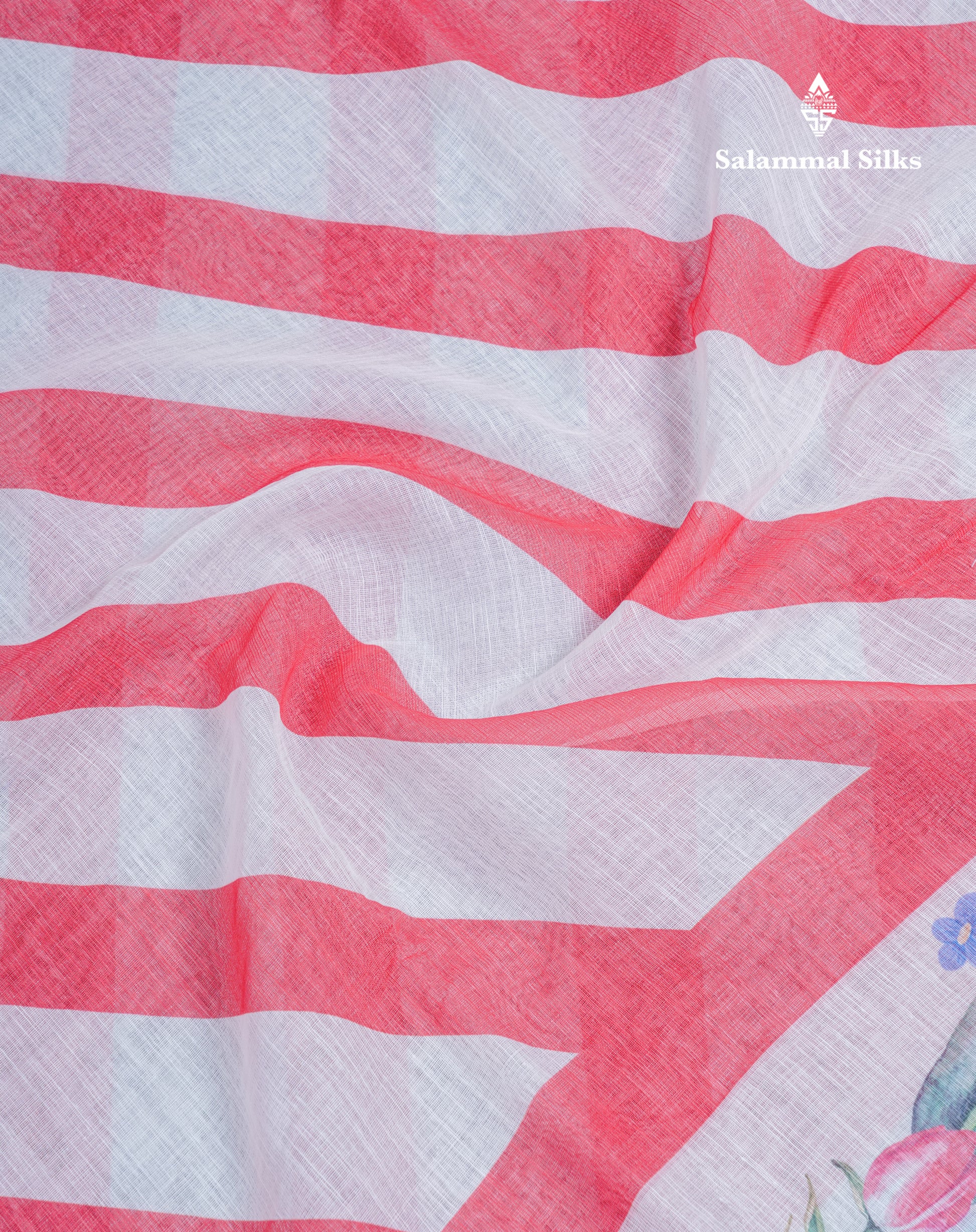 Salammal is known for its handloom sarees. In some sarees, there is cross-weaving between the body and the pallu, which is a sign of pure handloom sarees. This can be seen in Kanchipuram embossed sarees.
