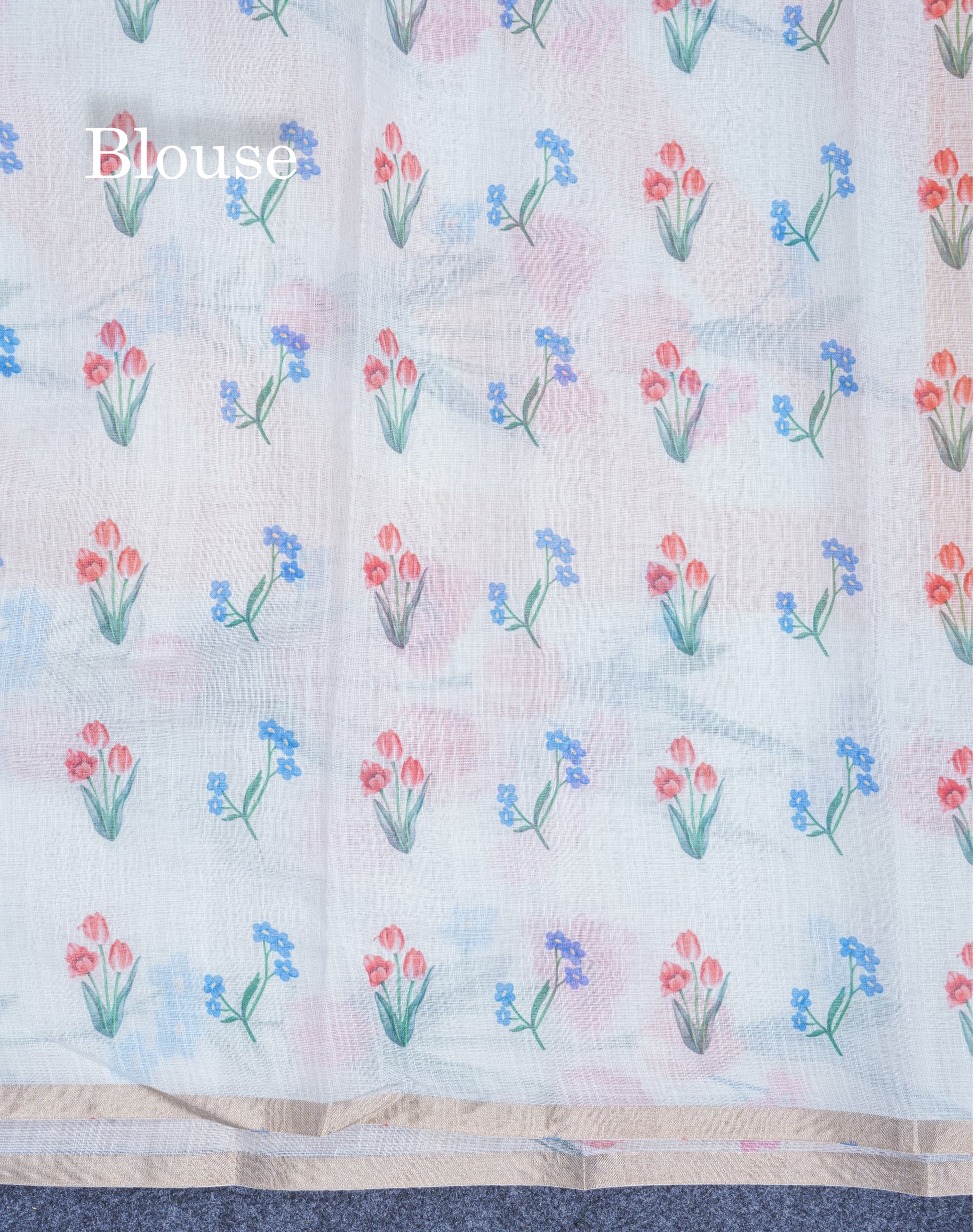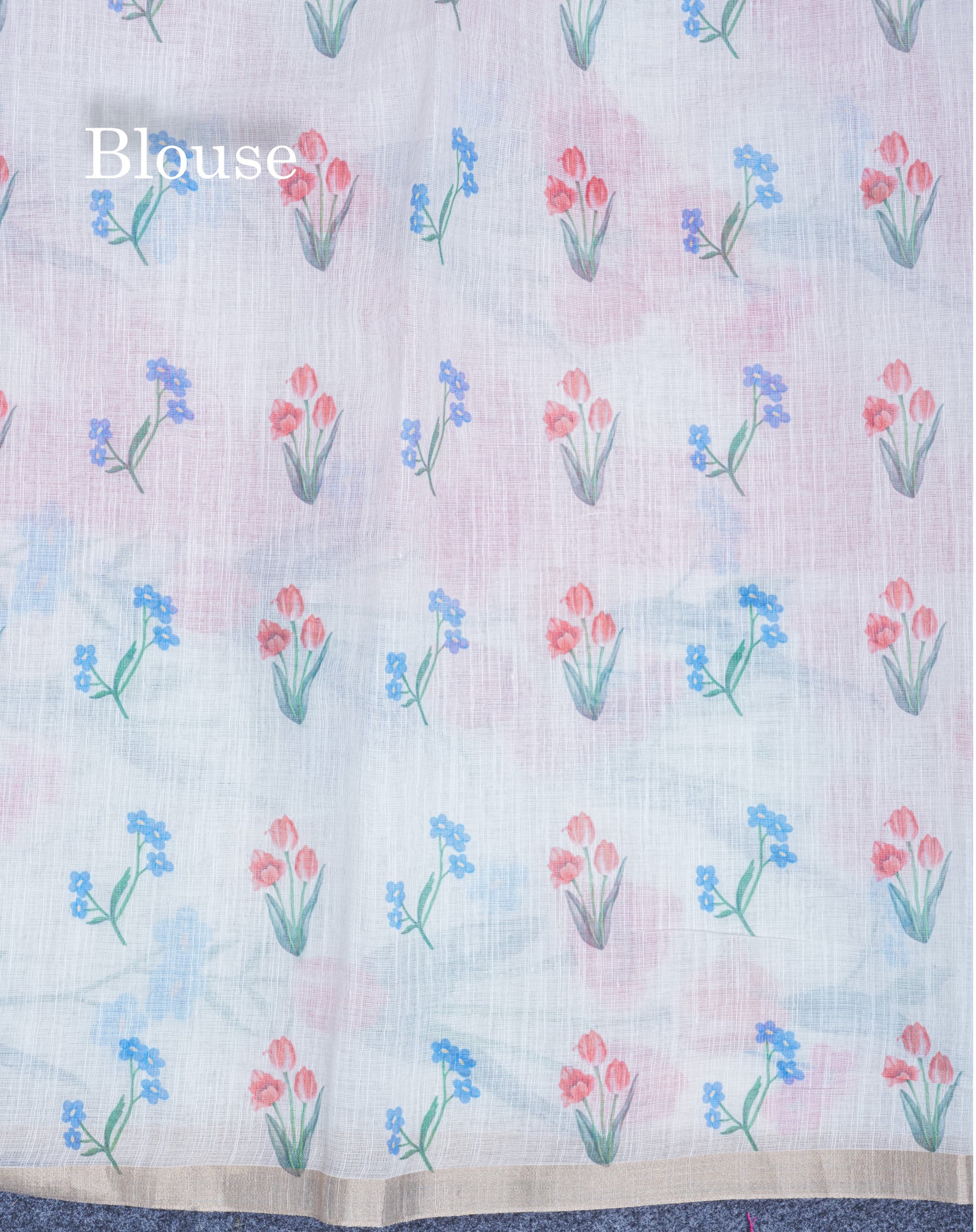 Beautiful Half White (Mustard Yellow) Linen Mix Saree With Floral Print Small Ribbon Border
