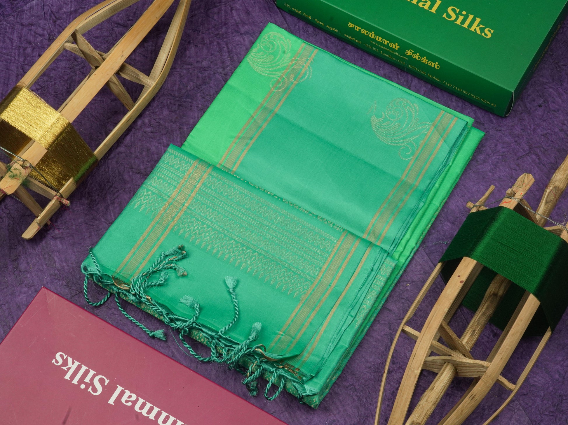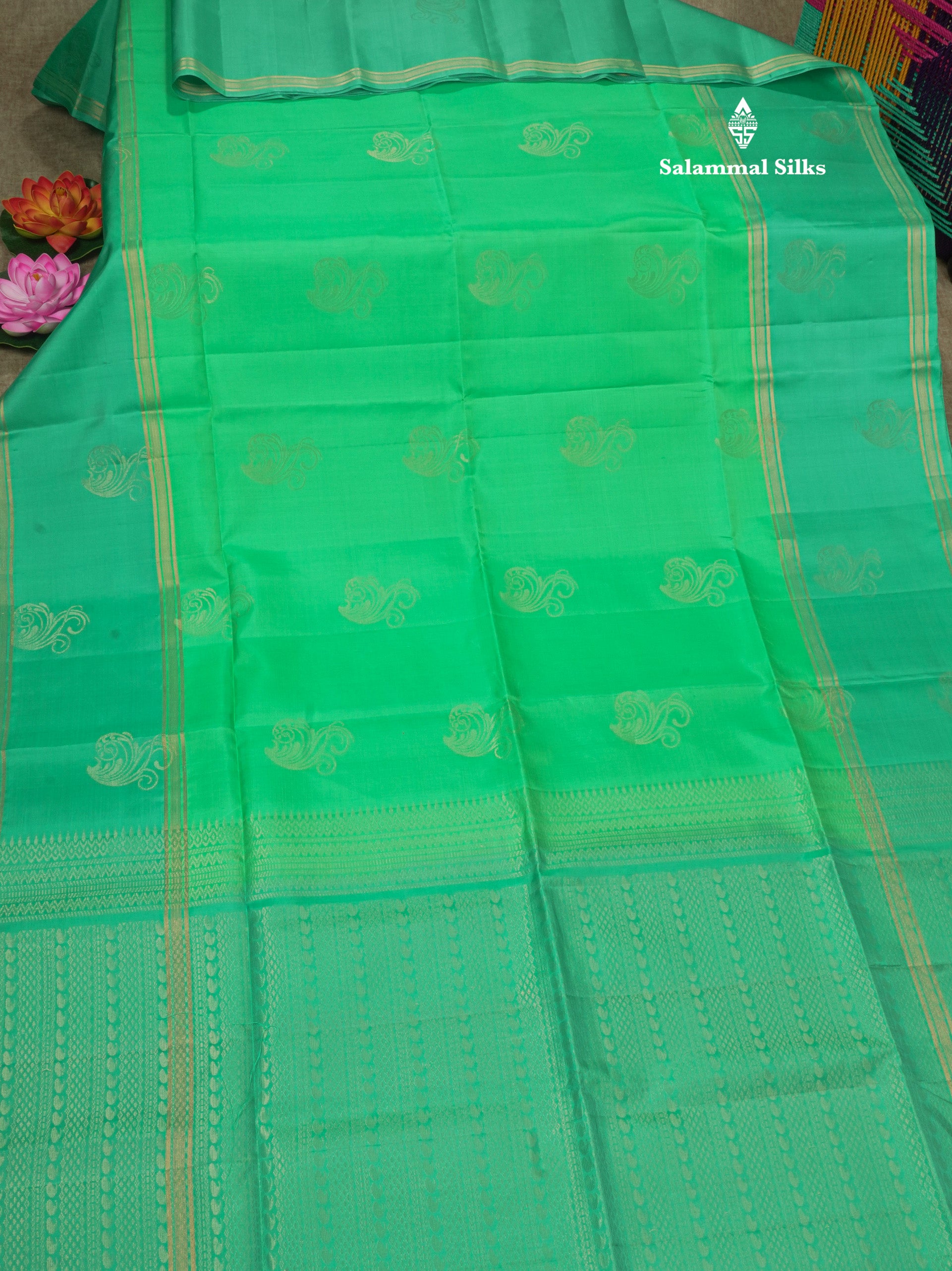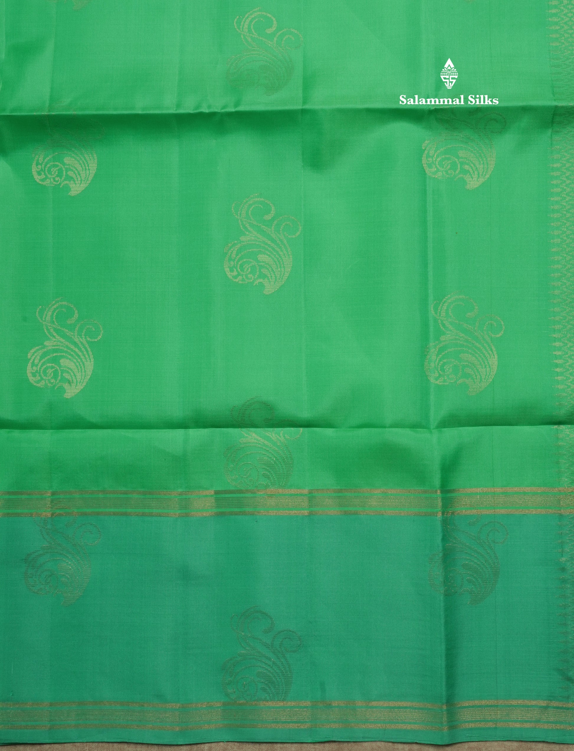 Beautiful Light Green Pure Kanjivaram Soft Silk Saree With Contrast Rexsona Border