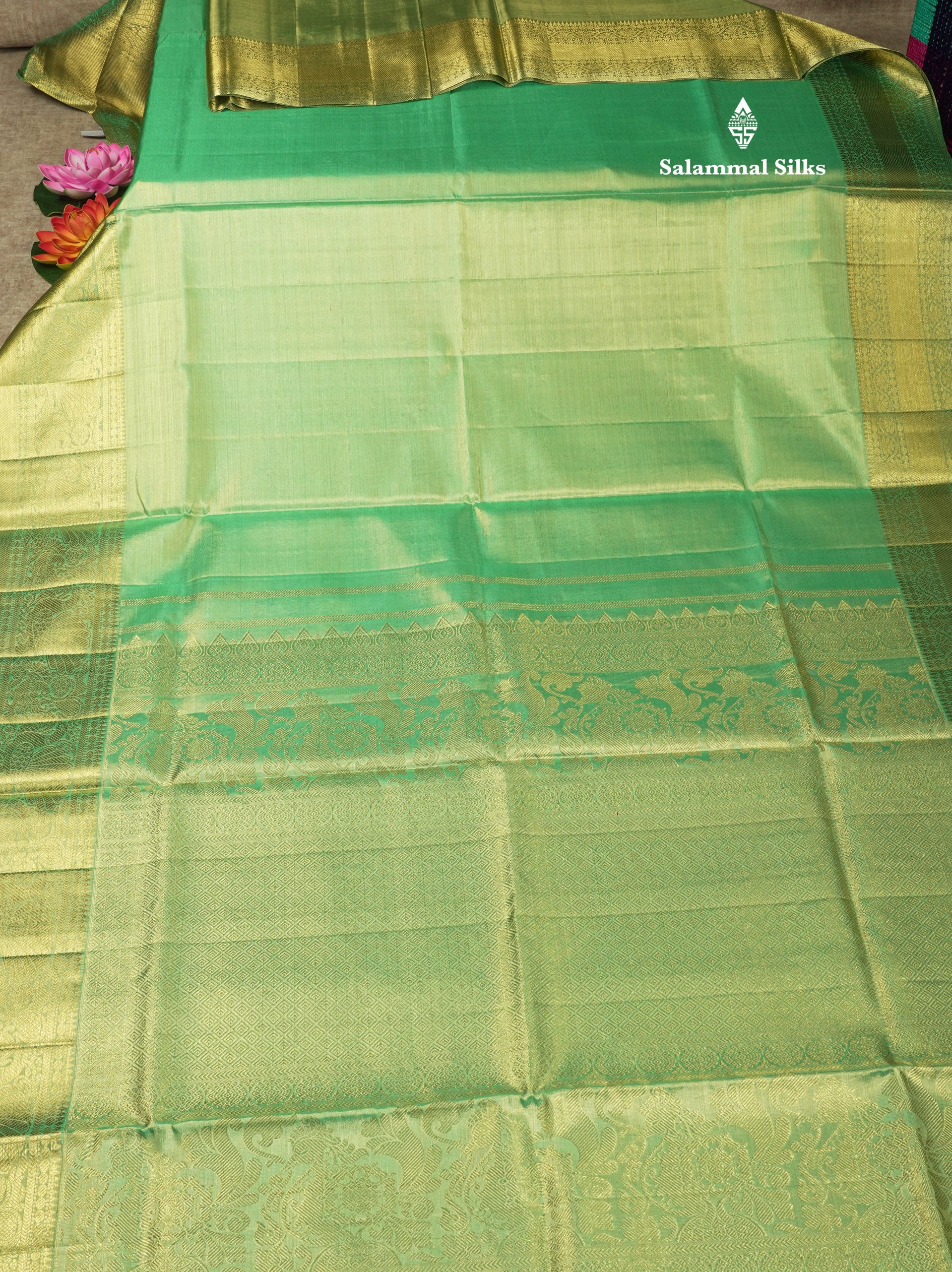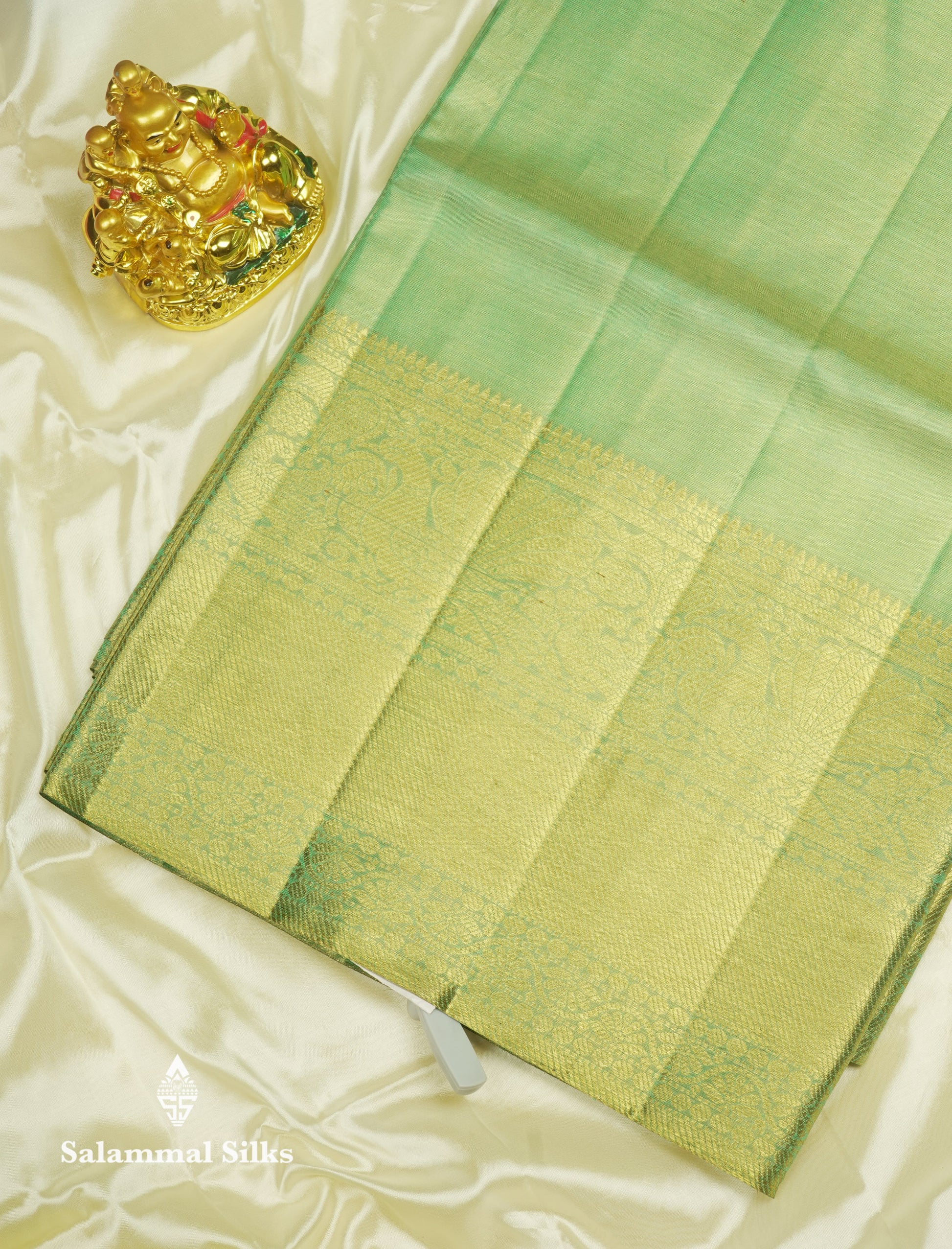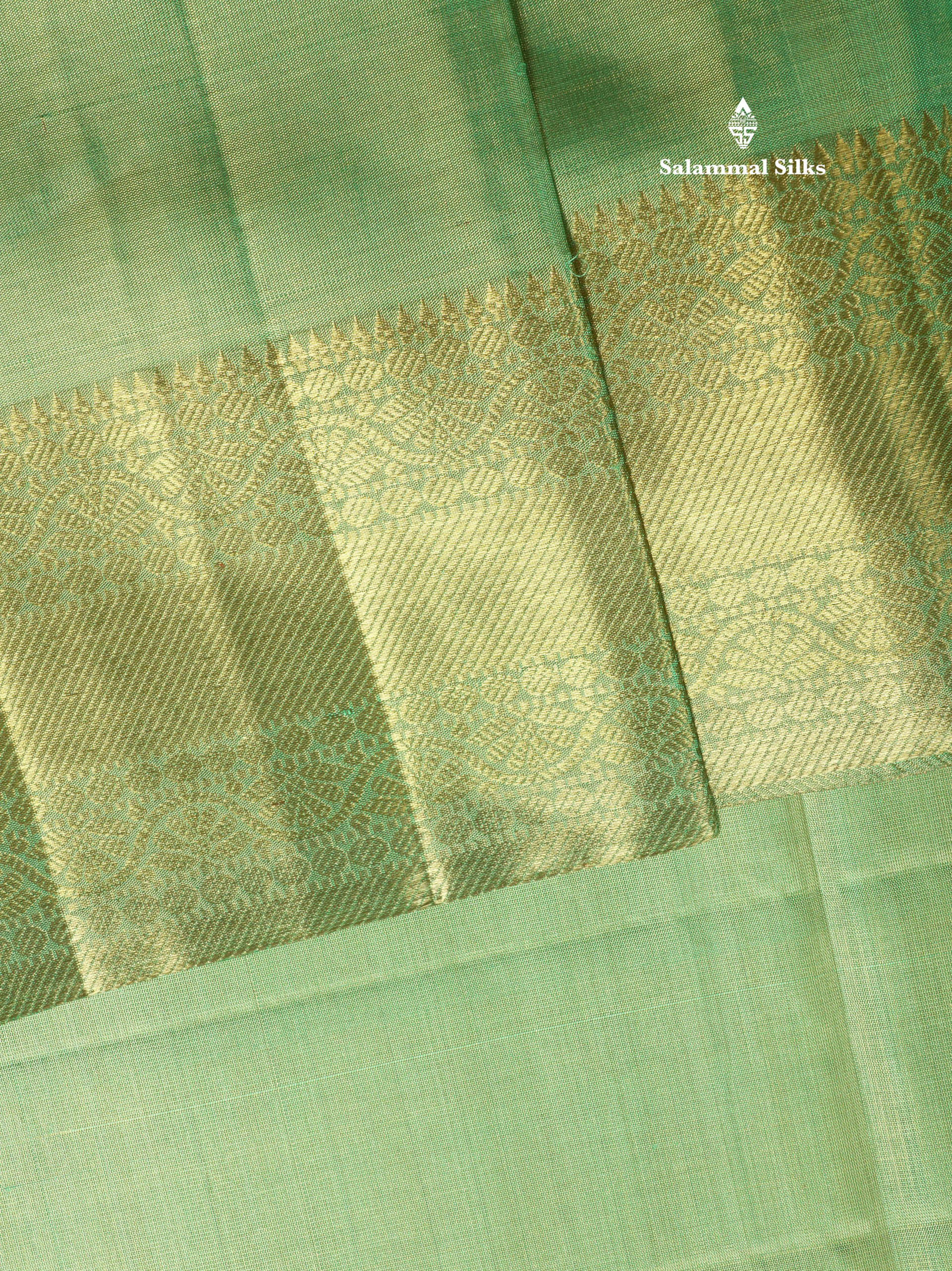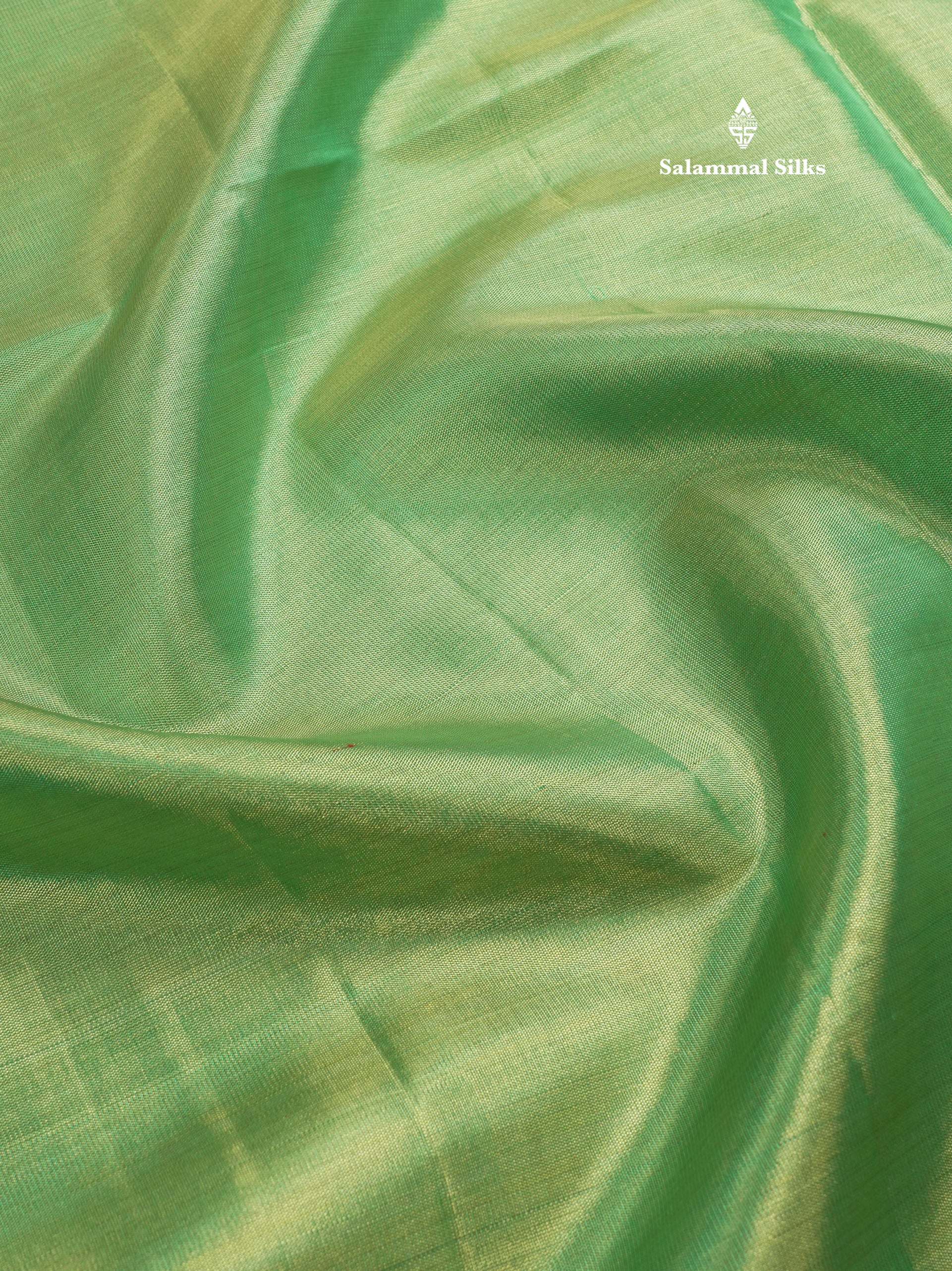 Beautiful Light Green Tissue Plain Pure Kanjivaram Silk Saree (2G) Zari With Self Border