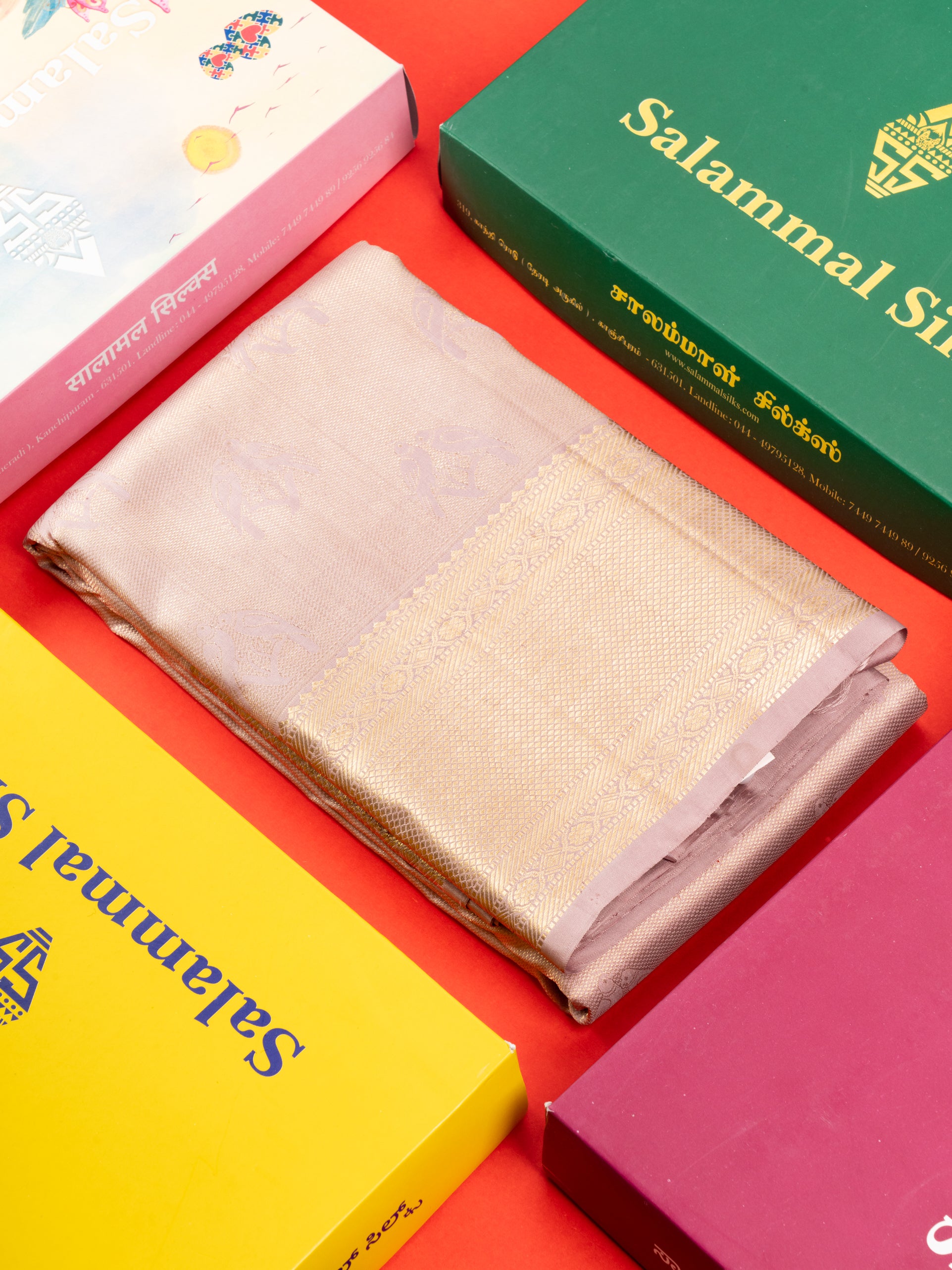 Beautiful Light Lavender Pure Kanjivaram Silk Saree With Self Border