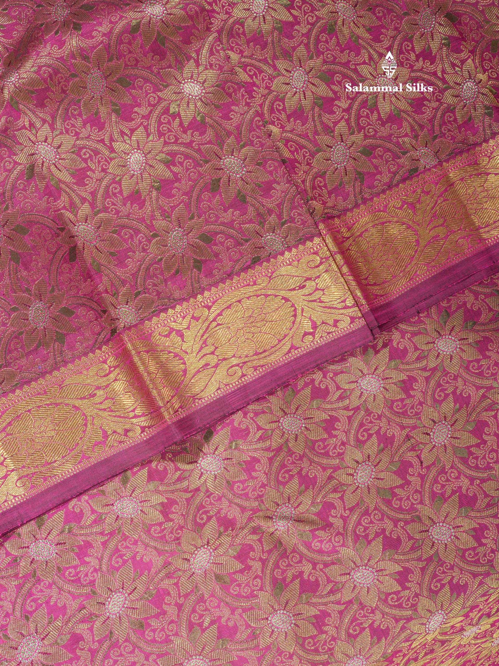 Beautiful Magenta Pure Kanjivaram Silk Saree 3G Zari with Gold Zari Border