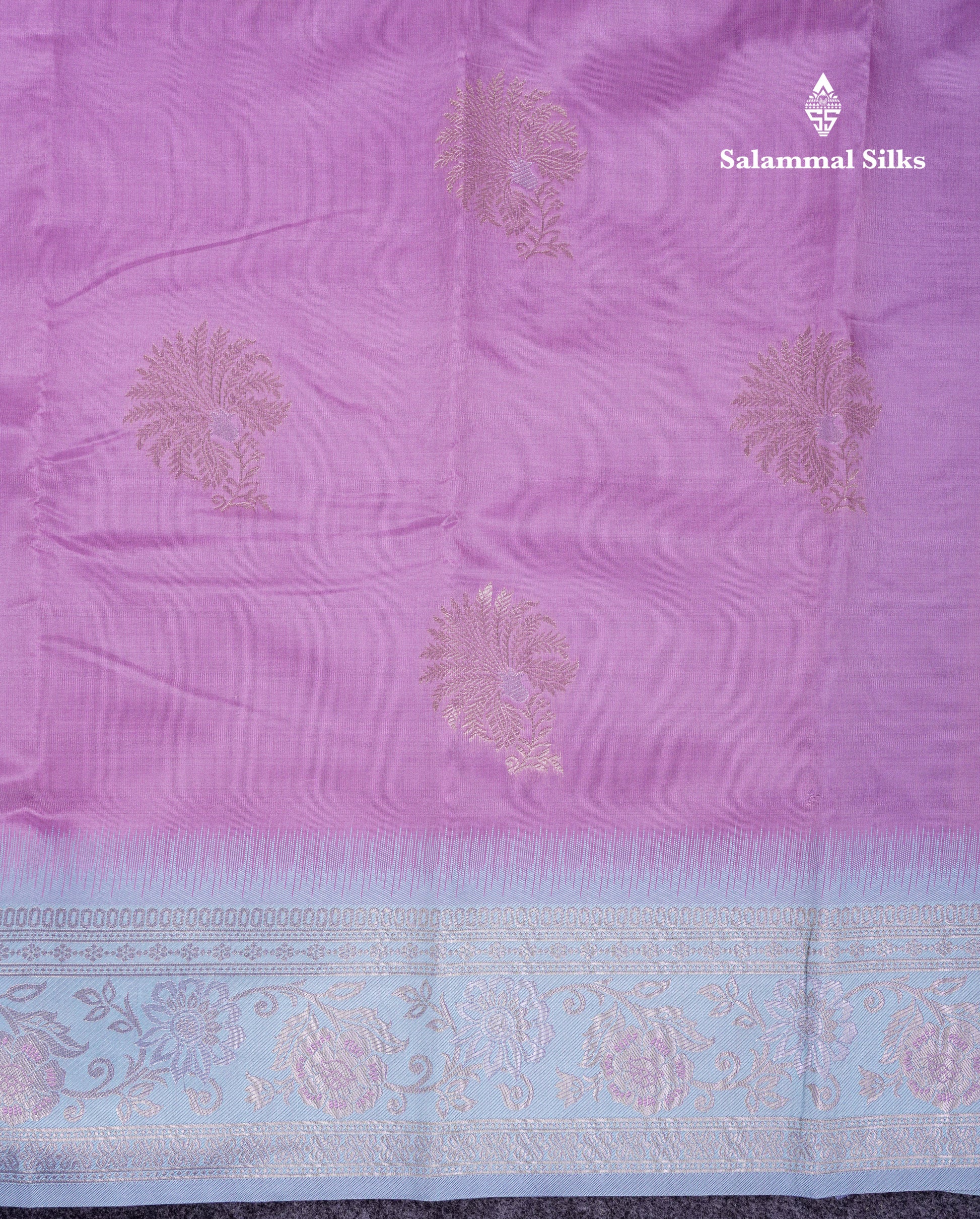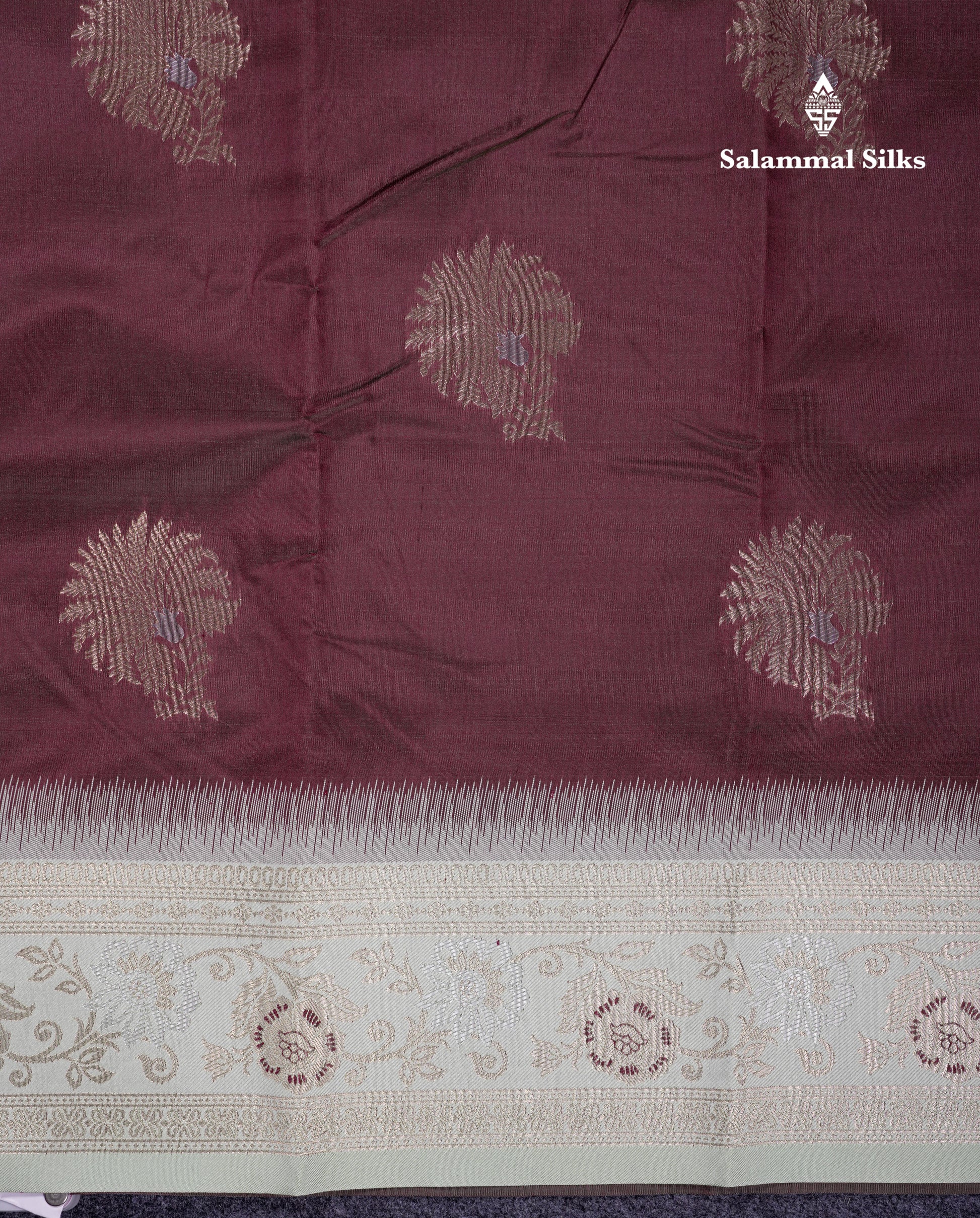 Salammal is known for its handloom sarees. In some sarees, there is cross-weaving between the body and the pallu, which is a sign of pure handloom sarees. This can be seen in Kanchipuram embossed sarees.