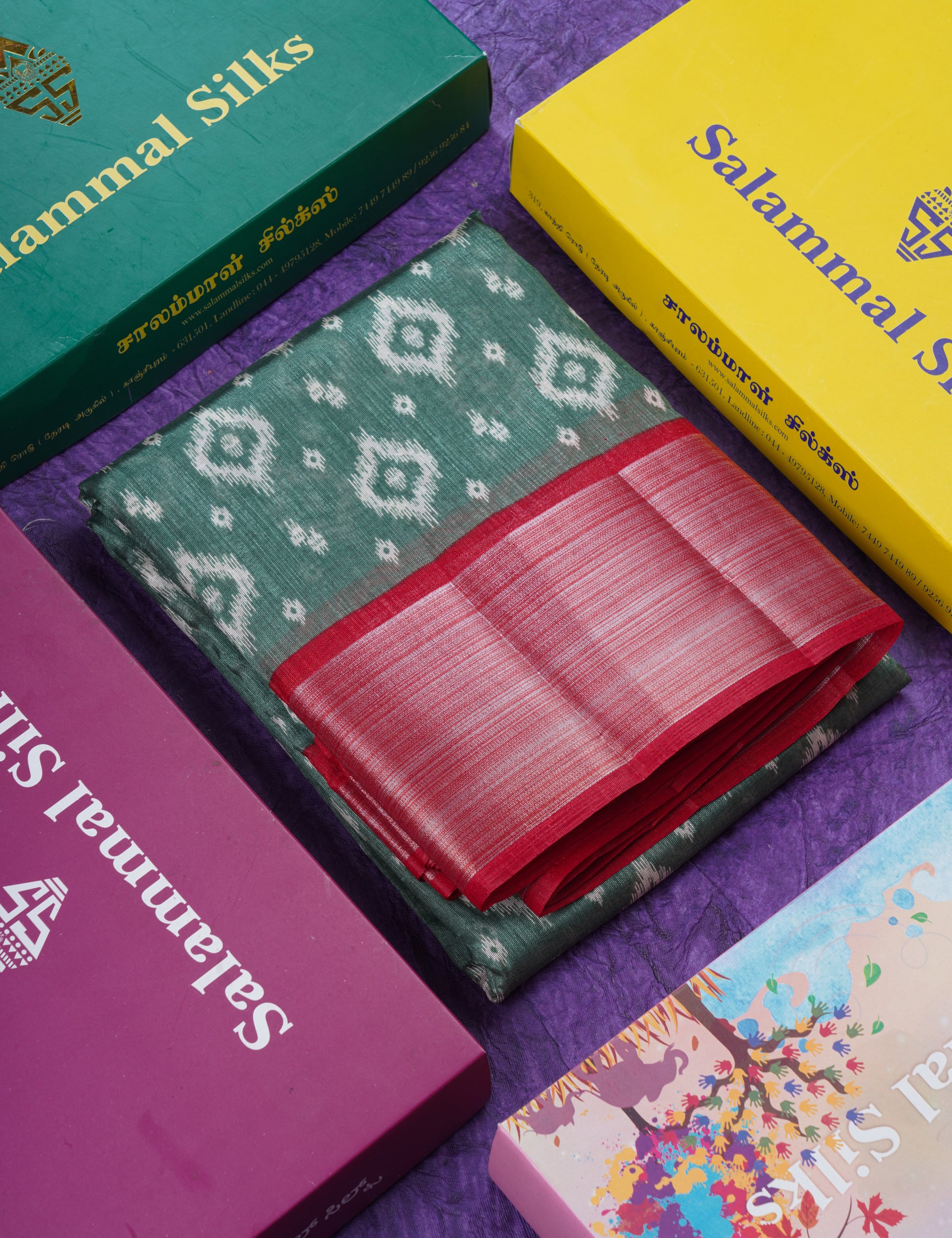 Salammal is known for its handloom sarees. In some sarees, there is cross-weaving between the body and the pallu, which is a sign of pure handloom sarees. This can be seen in Kanchipuram embossed sarees.