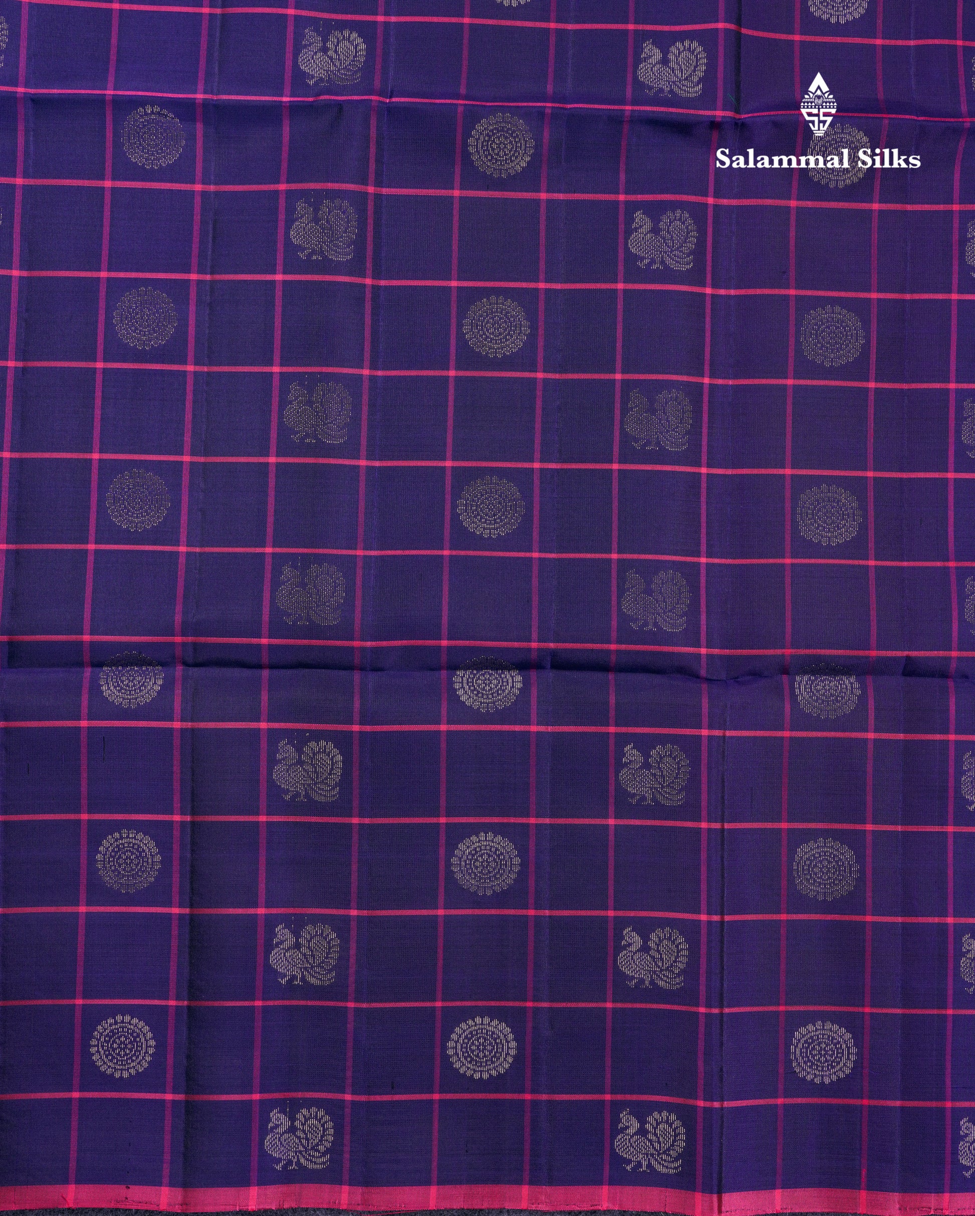 Salammal is known for its handloom sarees. In some sarees, there is cross-weaving between the body and the pallu, which is a sign of pure handloom sarees. This can be seen in Kanchipuram embossed sarees.