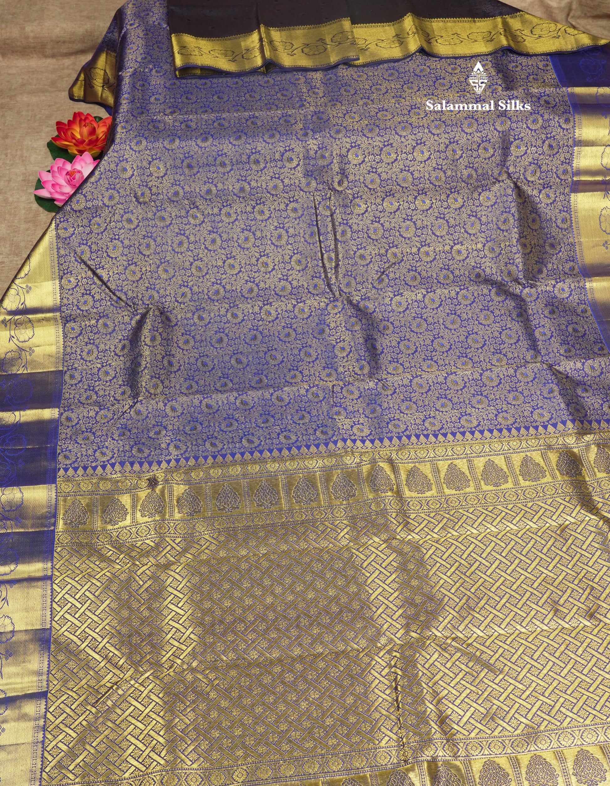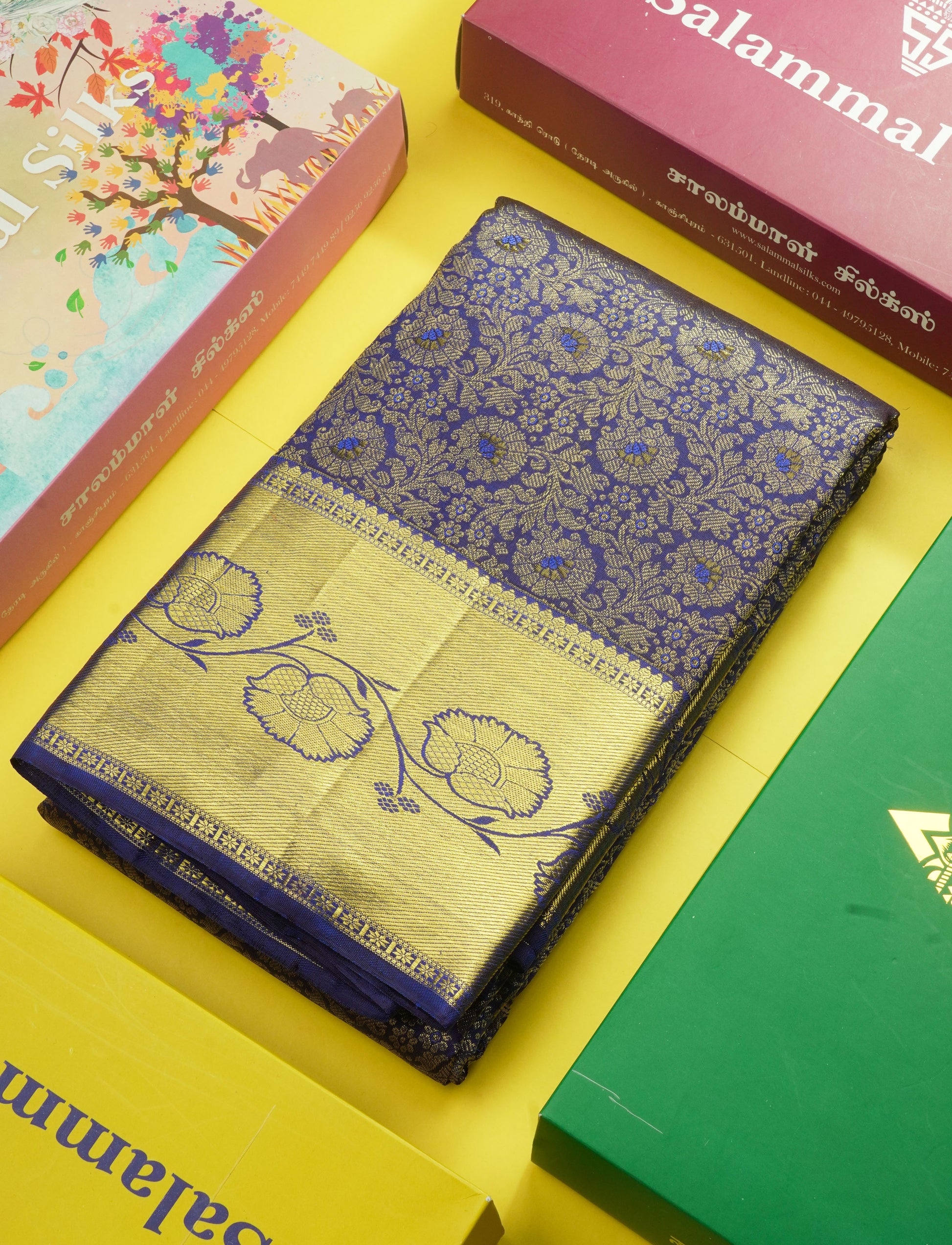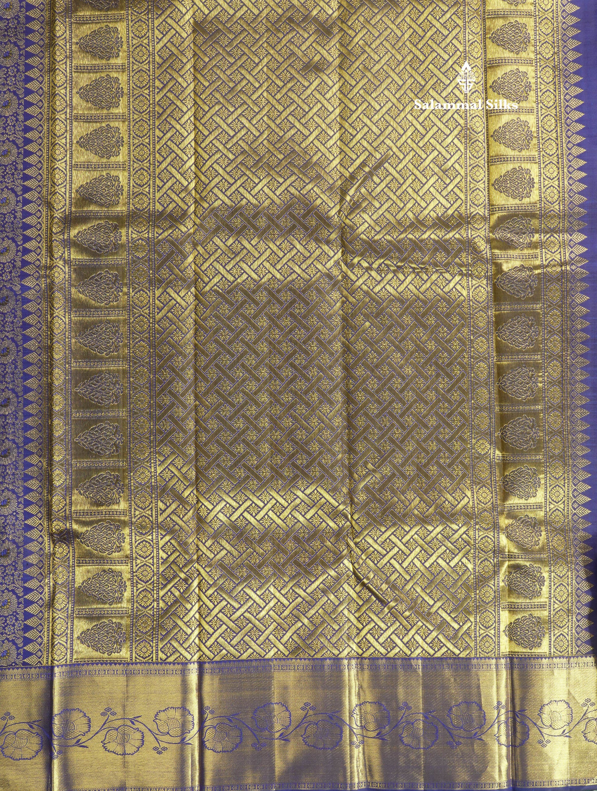 Salammal is known for its handloom sarees. In some sarees, there is cross-weaving between the body and the pallu, which is a sign of pure handloom sarees. This can be seen in Kanchipuram embossed sarees.