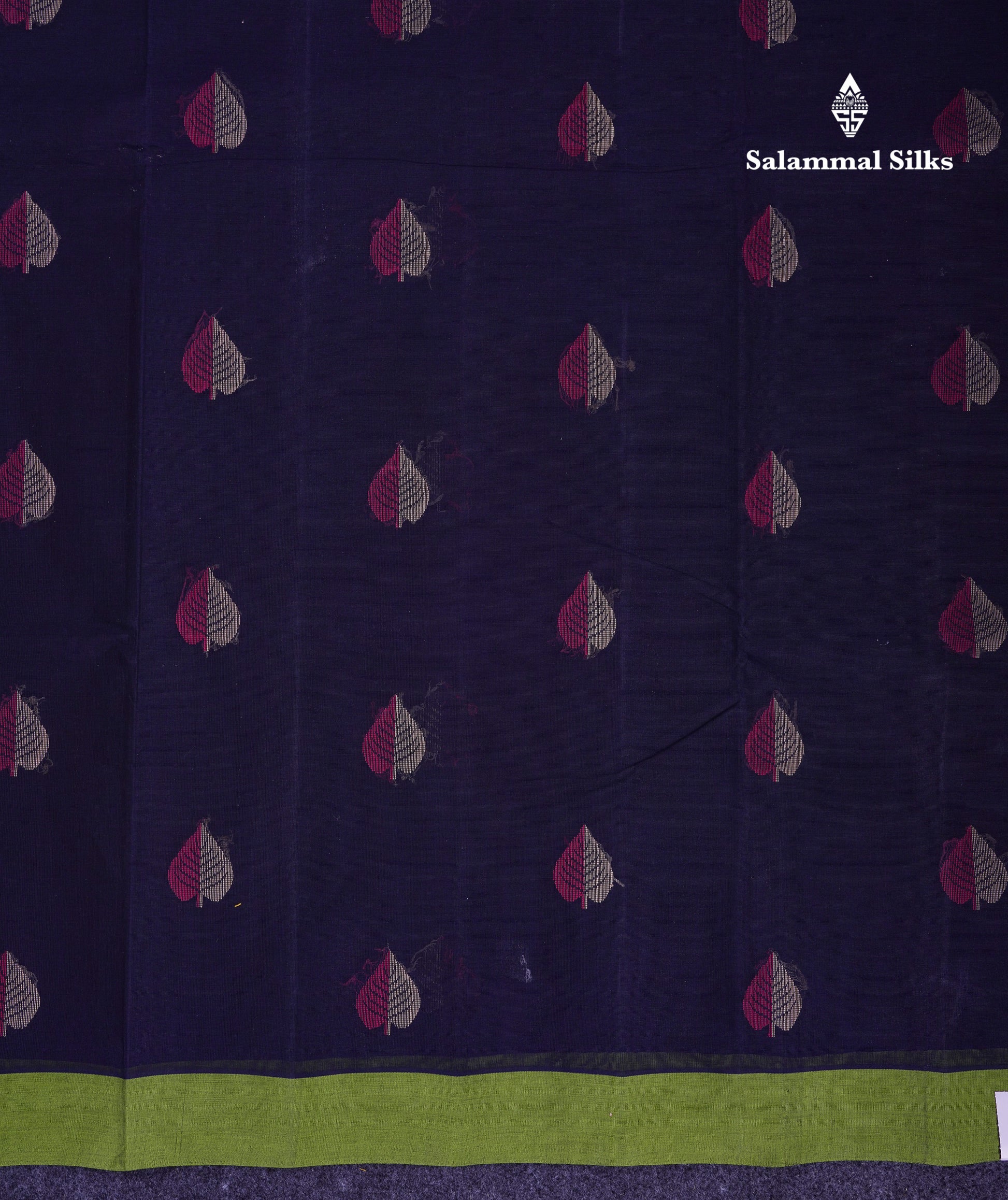 Salammal is known for its handloom sarees. In some sarees, there is cross-weaving between the body and the pallu, which is a sign of pure handloom sarees. This can be seen in Kanchipuram embossed sarees.