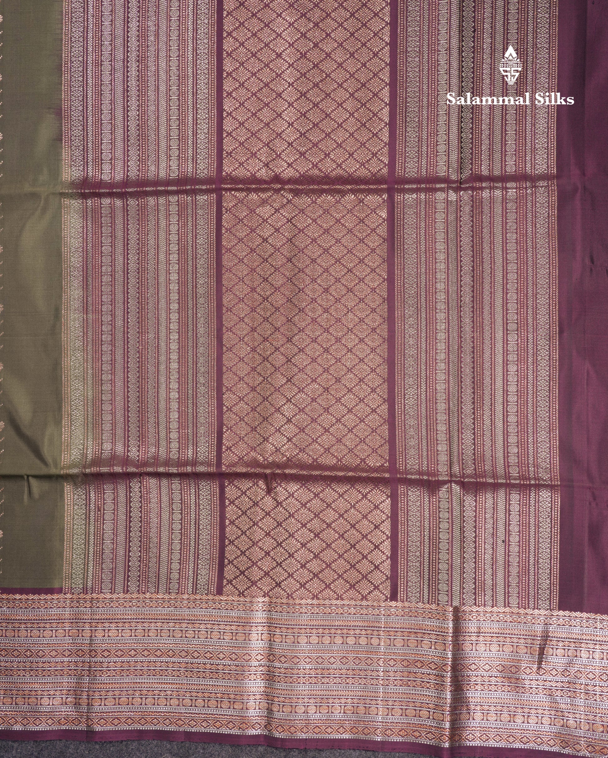 Salammal is known for its handloom sarees. In some sarees, there is cross-weaving between the body and the pallu, which is a sign of pure handloom sarees. This can be seen in Kanchipuram embossed sarees.
