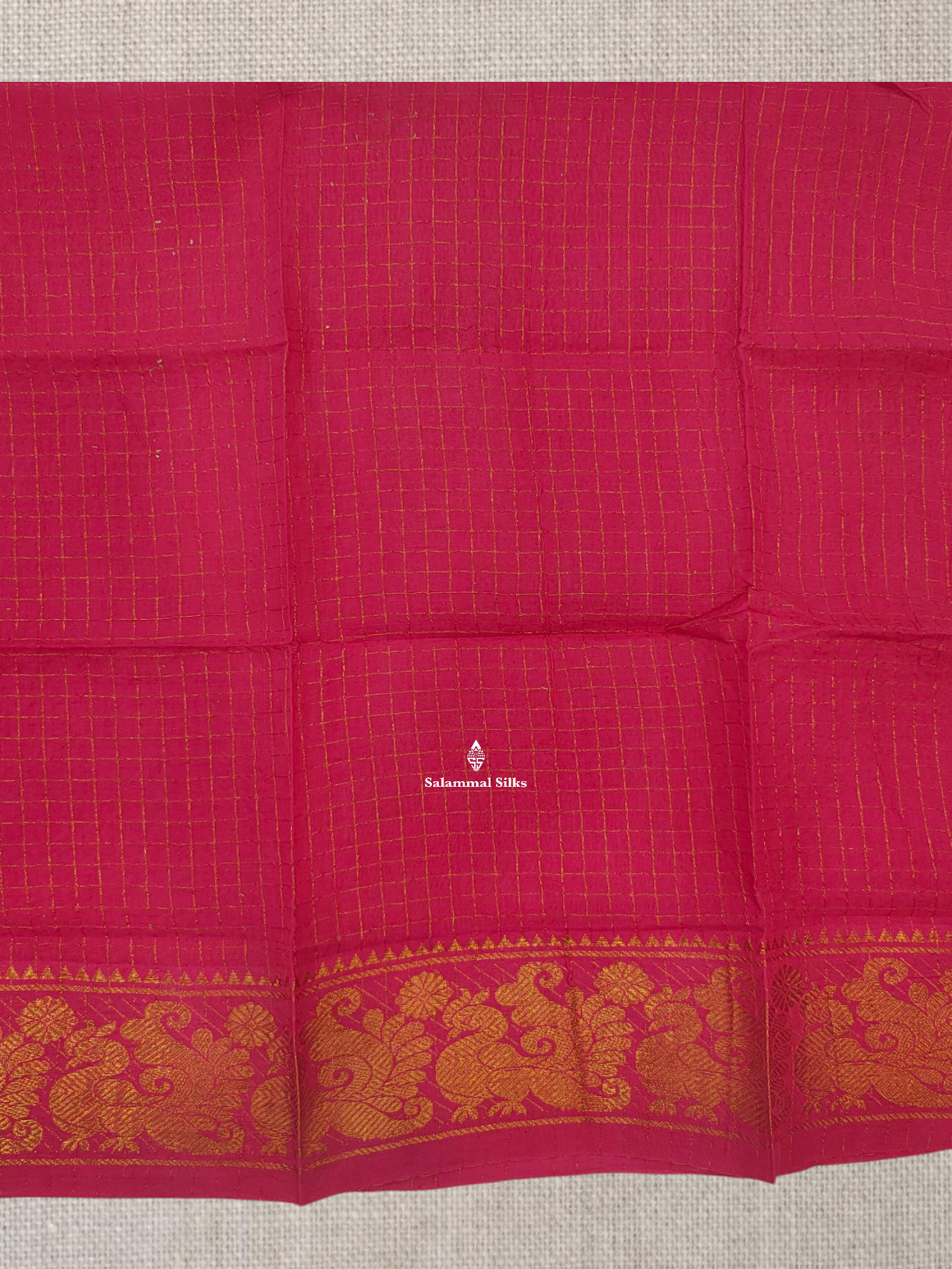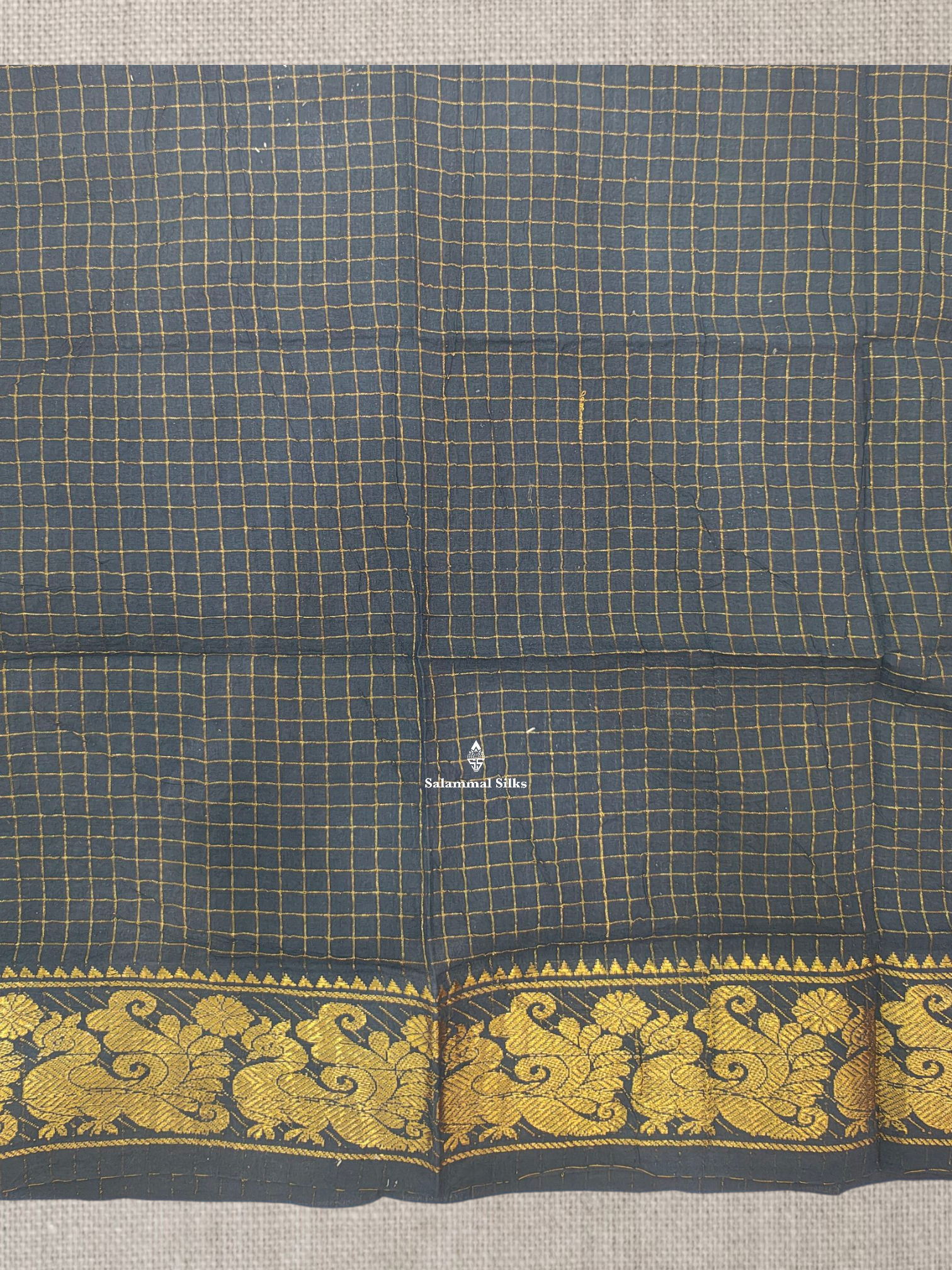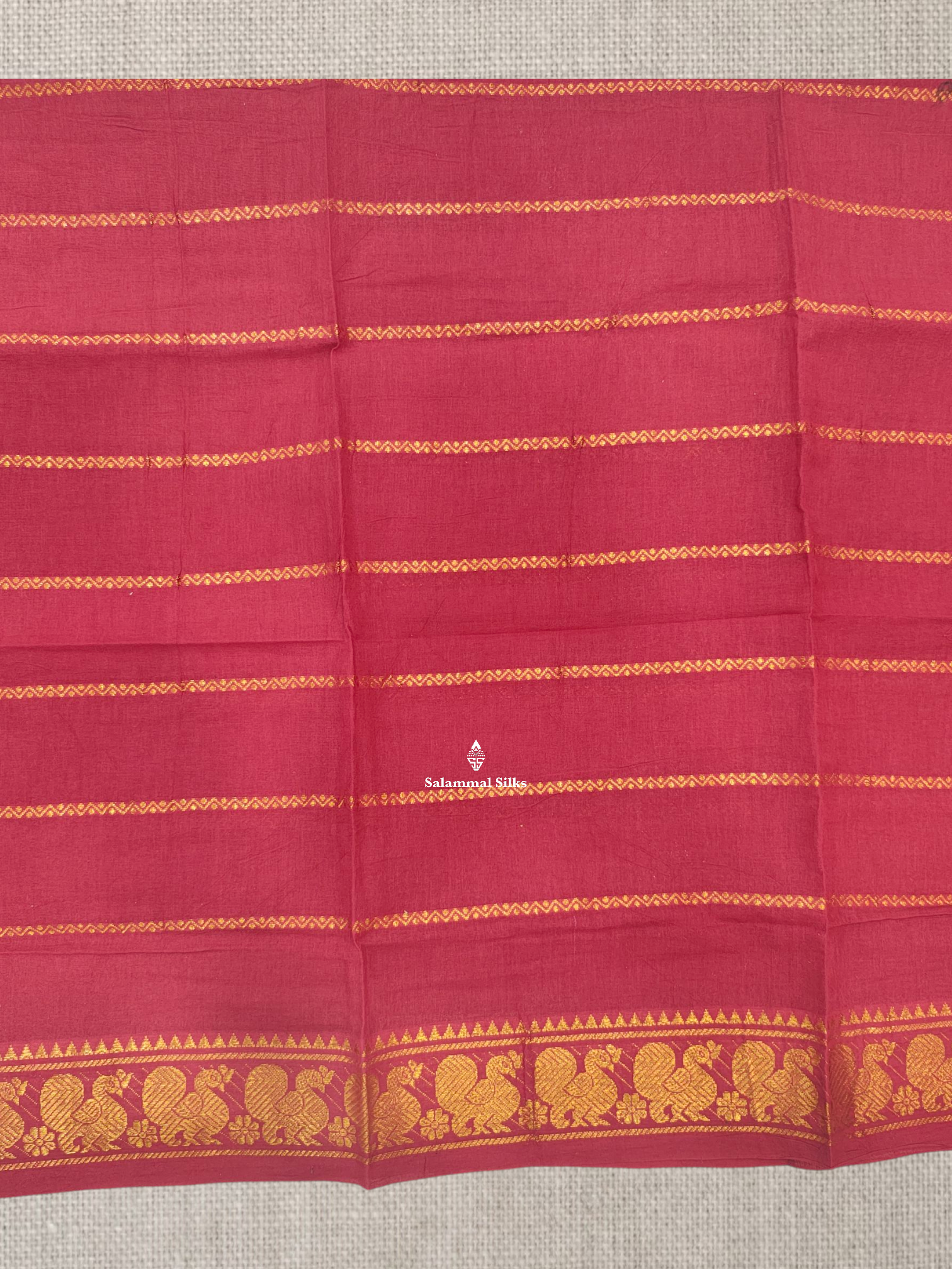 Salammal is known for its handloom sarees. In some sarees, there is cross-weaving between the body and the pallu, which is a sign of pure handloom sarees. This can be seen in Kanchipuram embossed sarees.