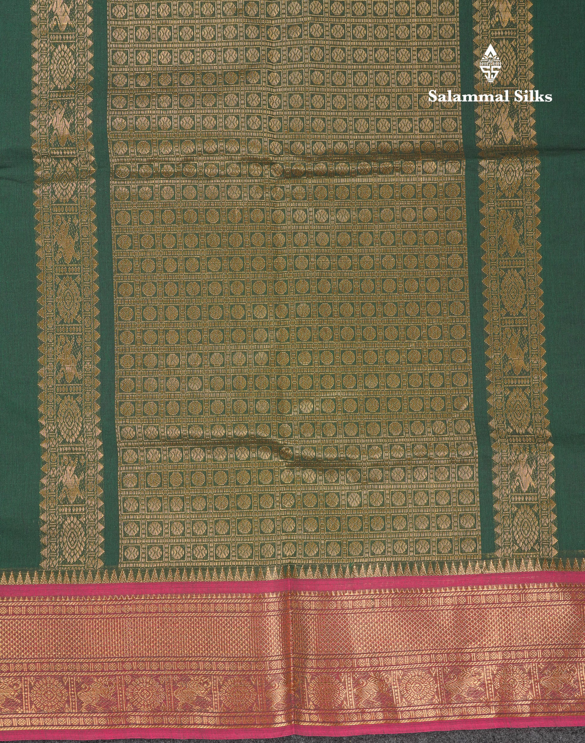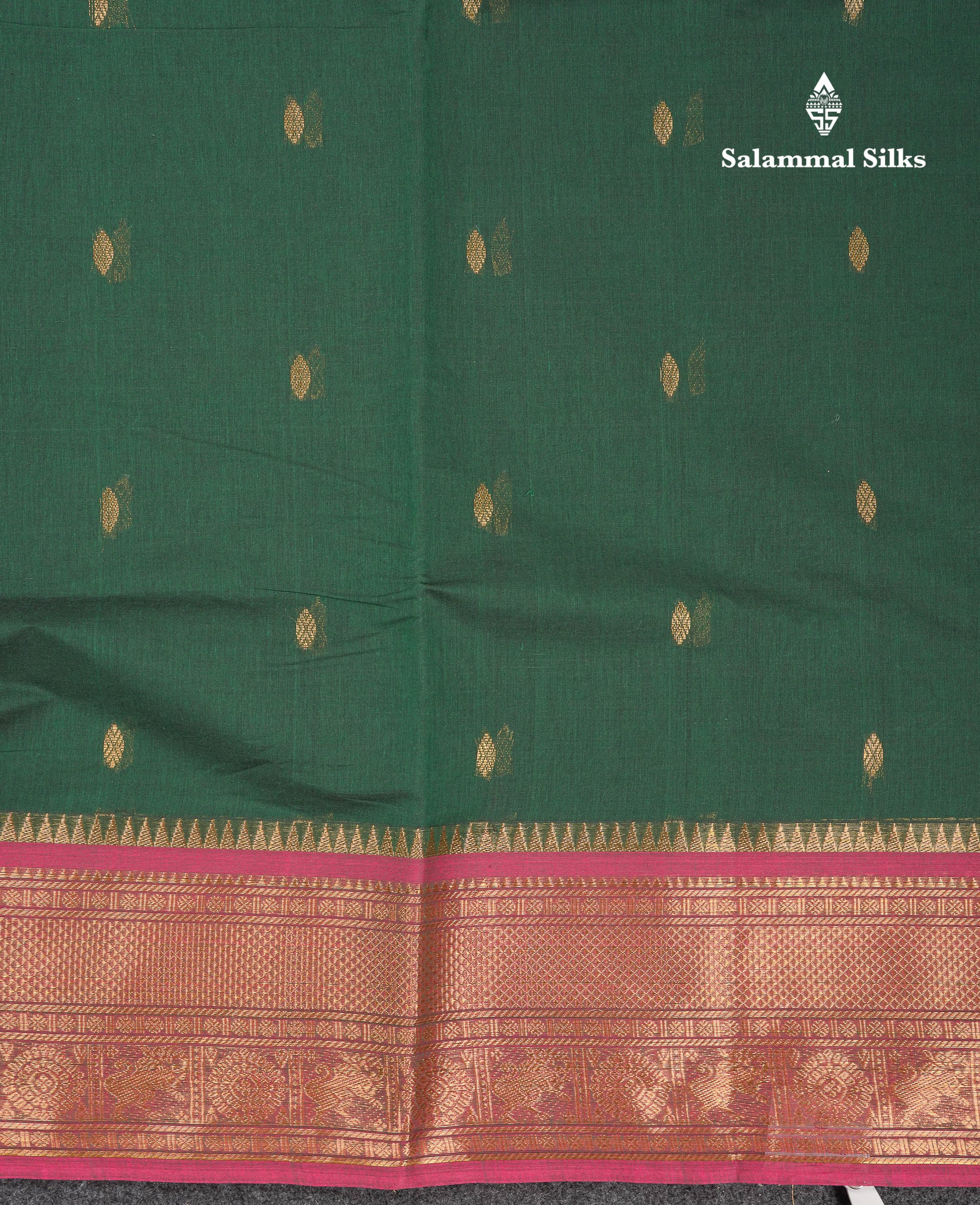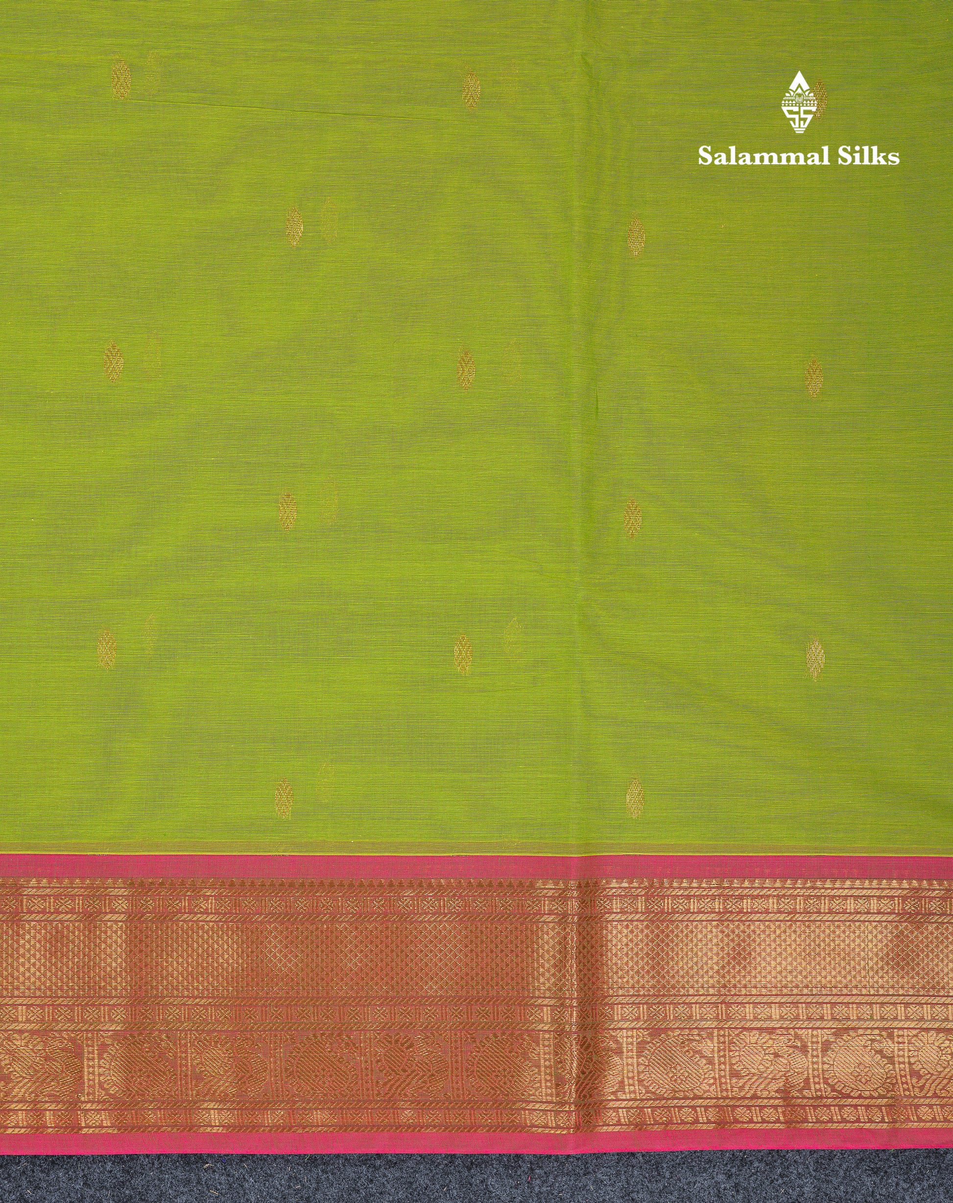 Beautiful Parrot Green Pure Cotton Saree With Contrast Pink Traditional Border
