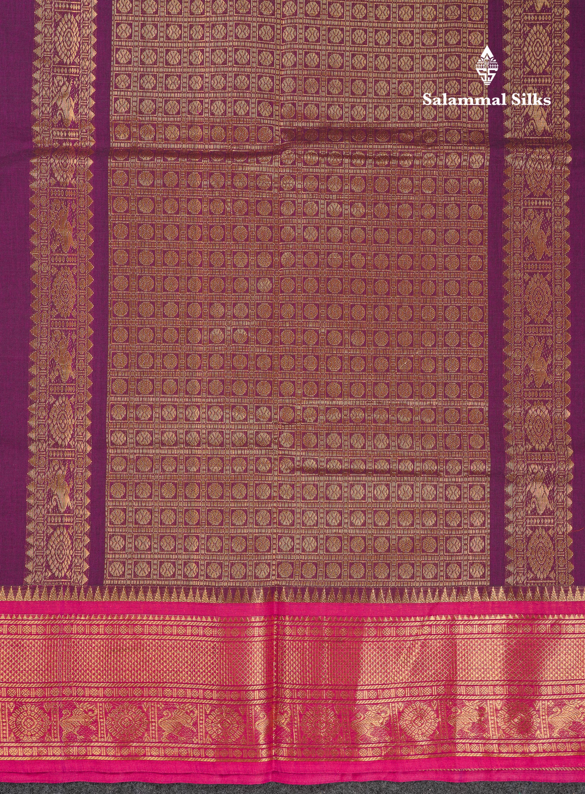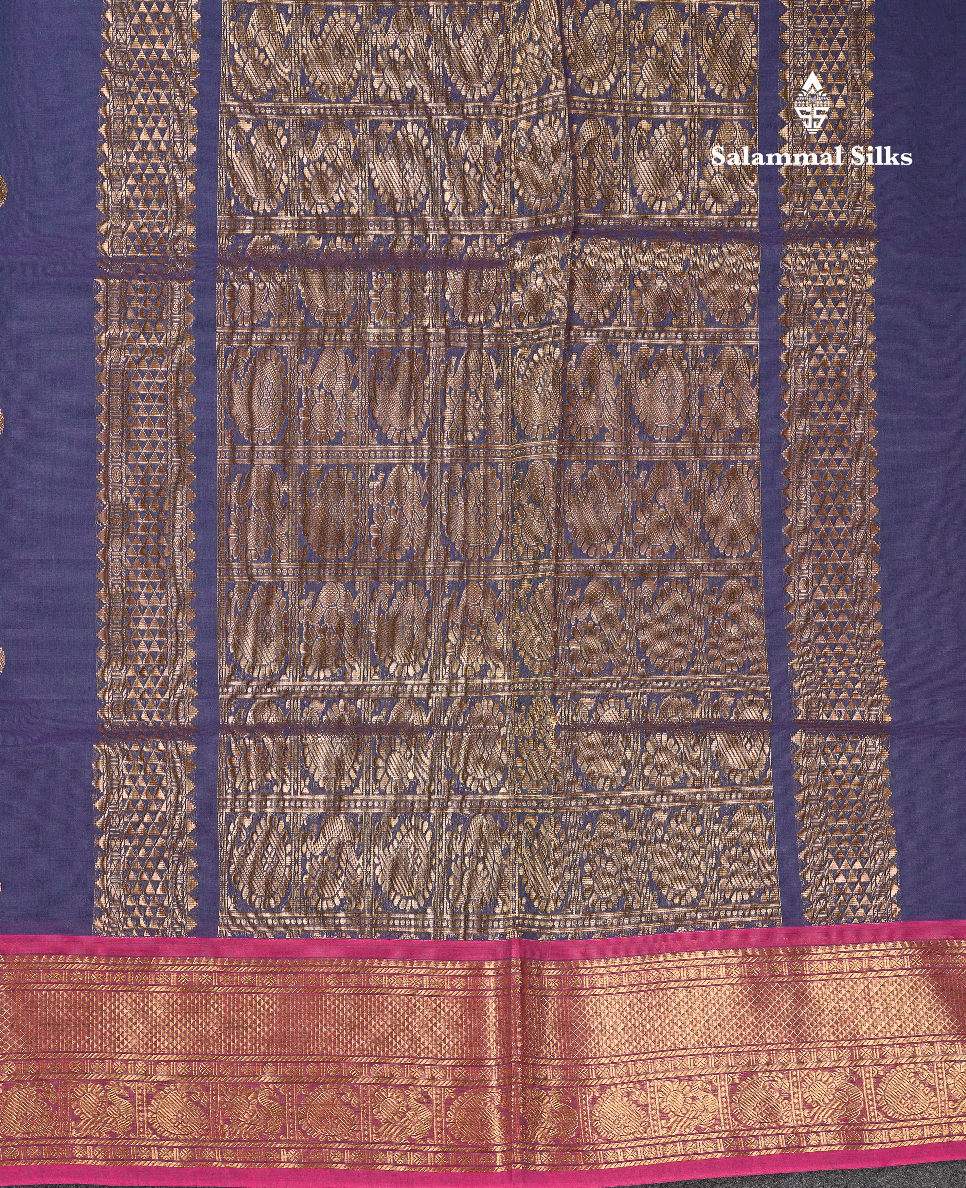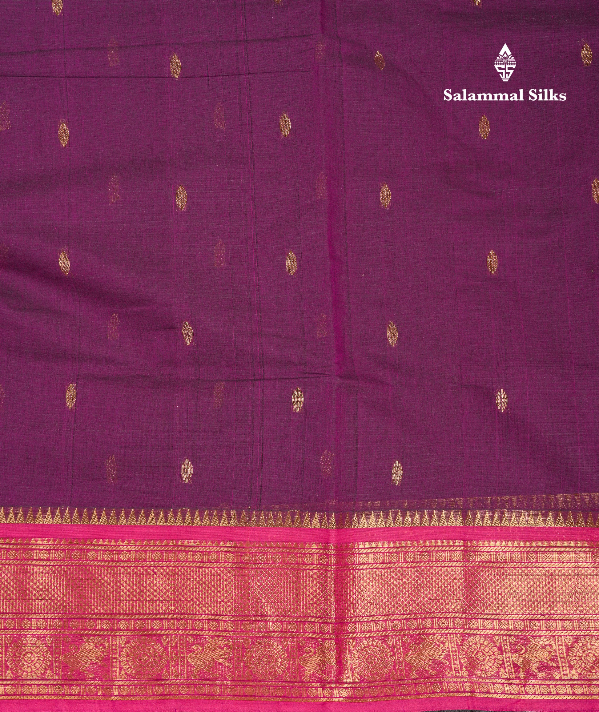 Salammal is known for its handloom sarees. In some sarees, there is cross-weaving between the body and the pallu, which is a sign of pure handloom sarees. This can be seen in Kanchipuram embossed sarees.